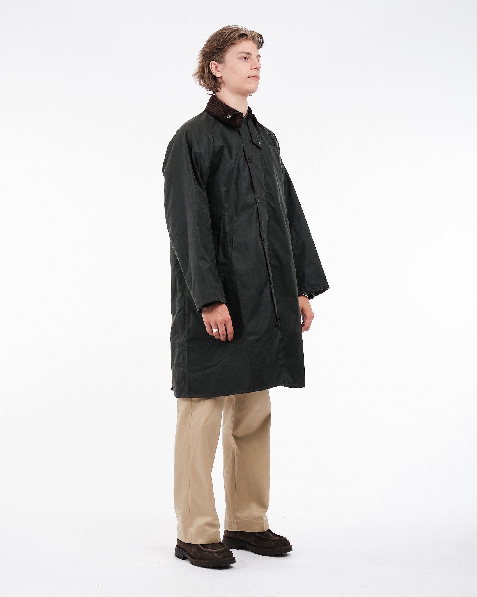 Esittelyssä BARBOUR Modified Exmoor Wax Coat Sage-värissä, erottuva kappale Barbour Heritage Select -kokoelmasta. Valmistettu 6oz vahatusta puuvillasta, tämä takki yhdistää kestävyyden ajattomaan eleganssiin. Aasian markkinoille suunnitellulla mitoituksella se antaa modernin päivityksen Barbourin klassiseen tyyliin. Huomionarvoisia ominaisuuksia ovat korduroykra, vetoketju ja nepparikiinnitys, kätevät lämmittelytaskut sekä neppareilla kiinnitettävät takahalkiot liikkuvuuden lisäämiseksi. Mukava puuvillainen tartan-vuori takaa lämmön ja mukavuuden, tehden siitä ihanteellisen valinnan niille, jotka arvostavat käsityötaitoa nykyaikaisella otteella.