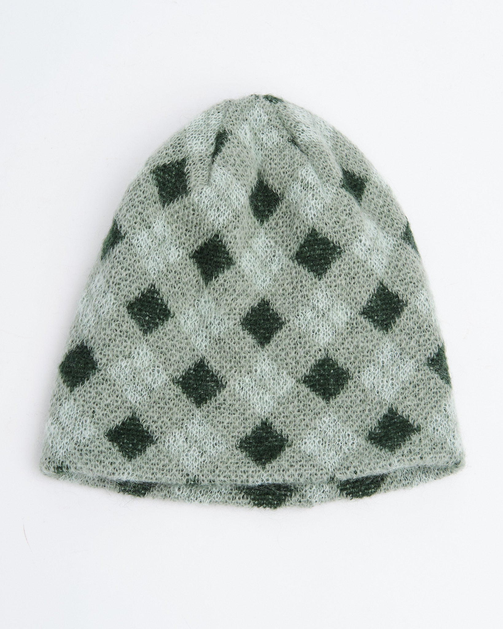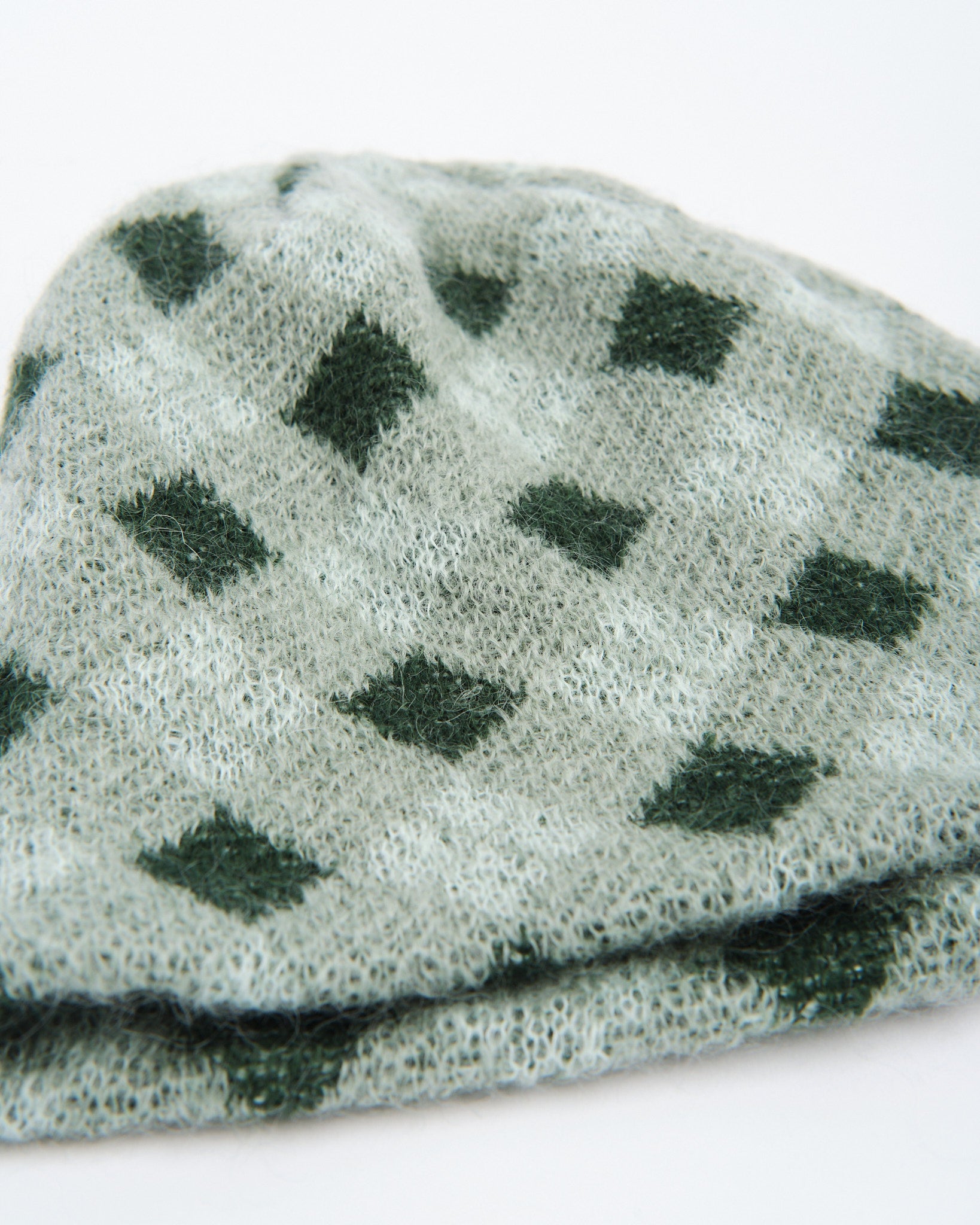 Mohair Skully vihreänä Found Featherilta yhdistää mukavan rakenteen puhtaaseen, kompaktiin muotoiluun. Valmistettu Japanissa ja kudottu pehmeästä jacquard-neuleesta, tämä yksipaneelinen pipo kietoo pääsi lämpöön ja mukavuuteen. Harjattu sisäpuoli, tiukka unisex-istuvuus ja hienovarainen kudottu etiketti antavat sille jokapäiväistä monikäyttöisyyttä, kun taas harkitut ominaisuudet, kuten QR-koodattu hoito-ohje, pitävät sen modernina. Sen pehmeän kosketuksen ja joustavan kokovalikoiman ansiosta Skully on tehty viimeistelemään ulkonäkösi vaivattomalla viileydellä — kausi toisensa jälkeen.