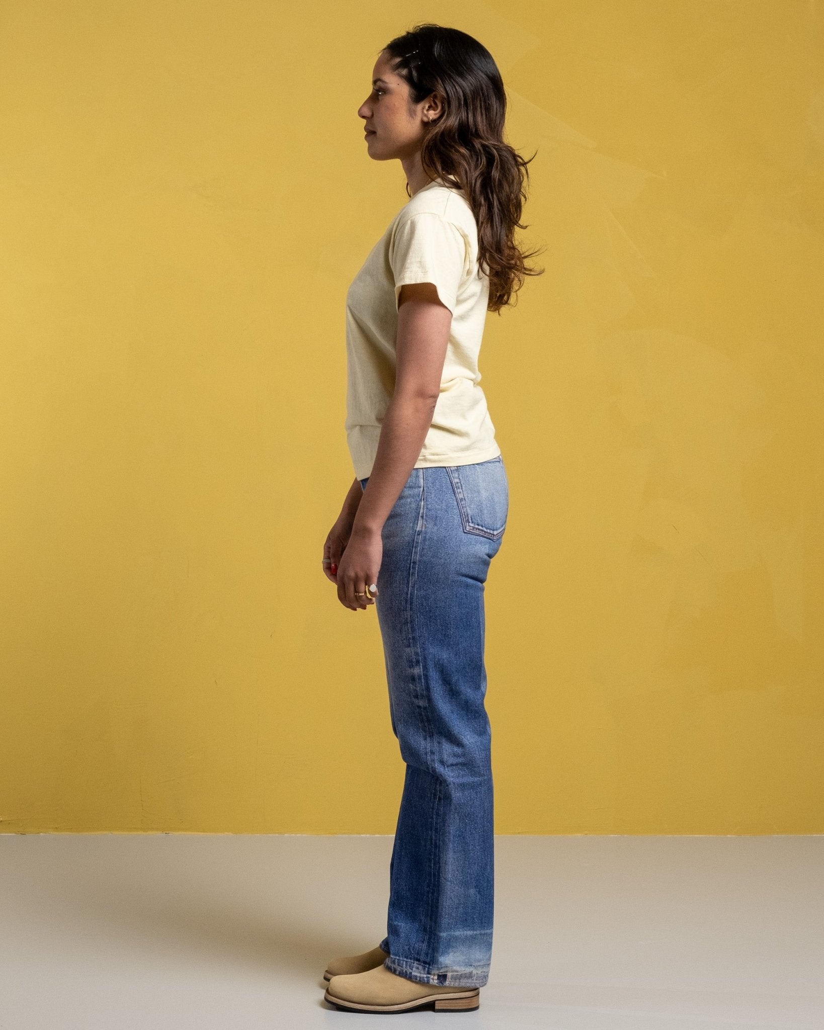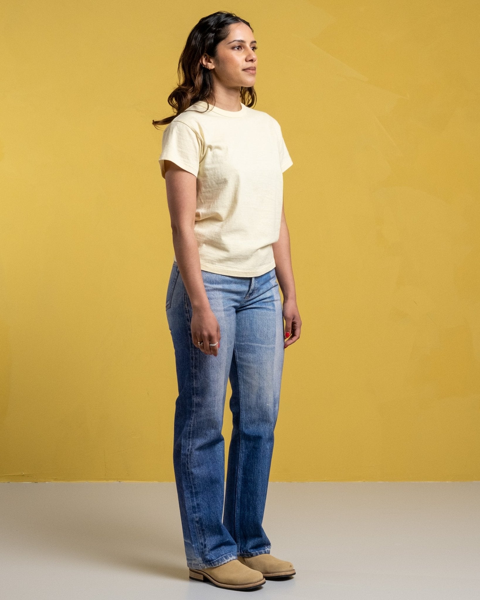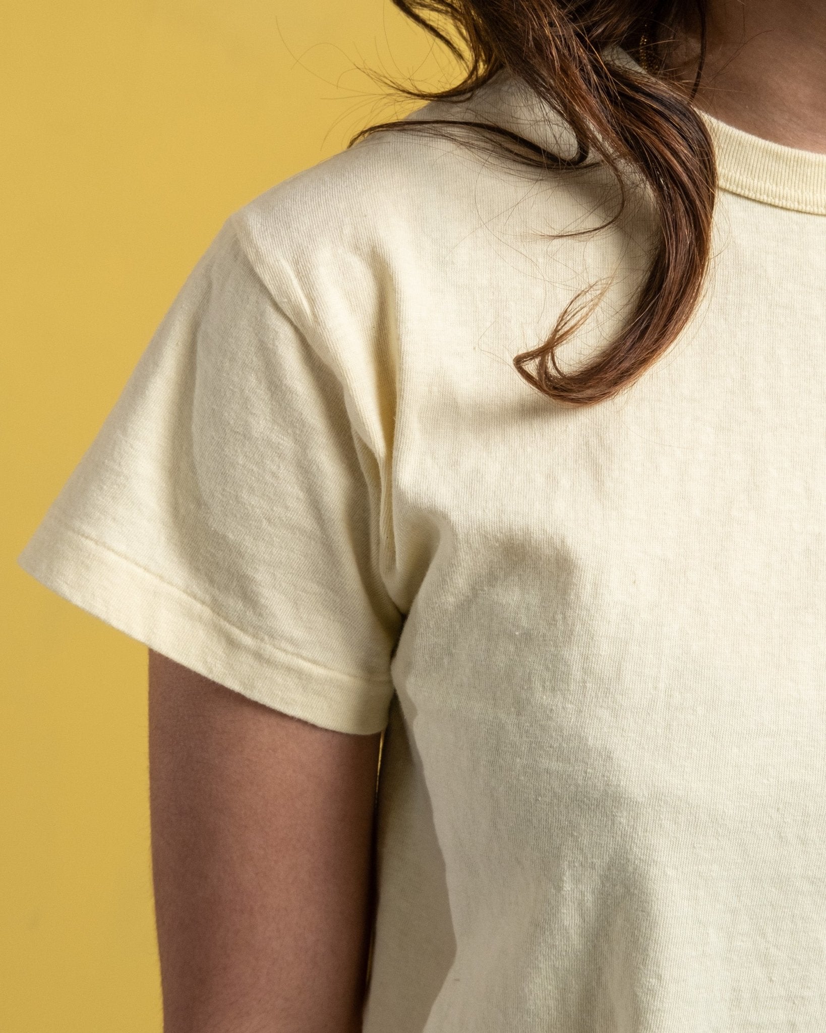 Na'maka'oh SS T-paita Pastellikeltainen Sunray Spiritiltä. Sunrayn T-paidat ovat perinteisellä istuvuudella, joka on inspiroitu 50-luvun tunteesta. Rentoutta ja säännöllistä istuvuutta. Kaulus, ribbineulos ja kankaat ovat myös perinteisiä. 260 g. Valmistettu Japanissa.