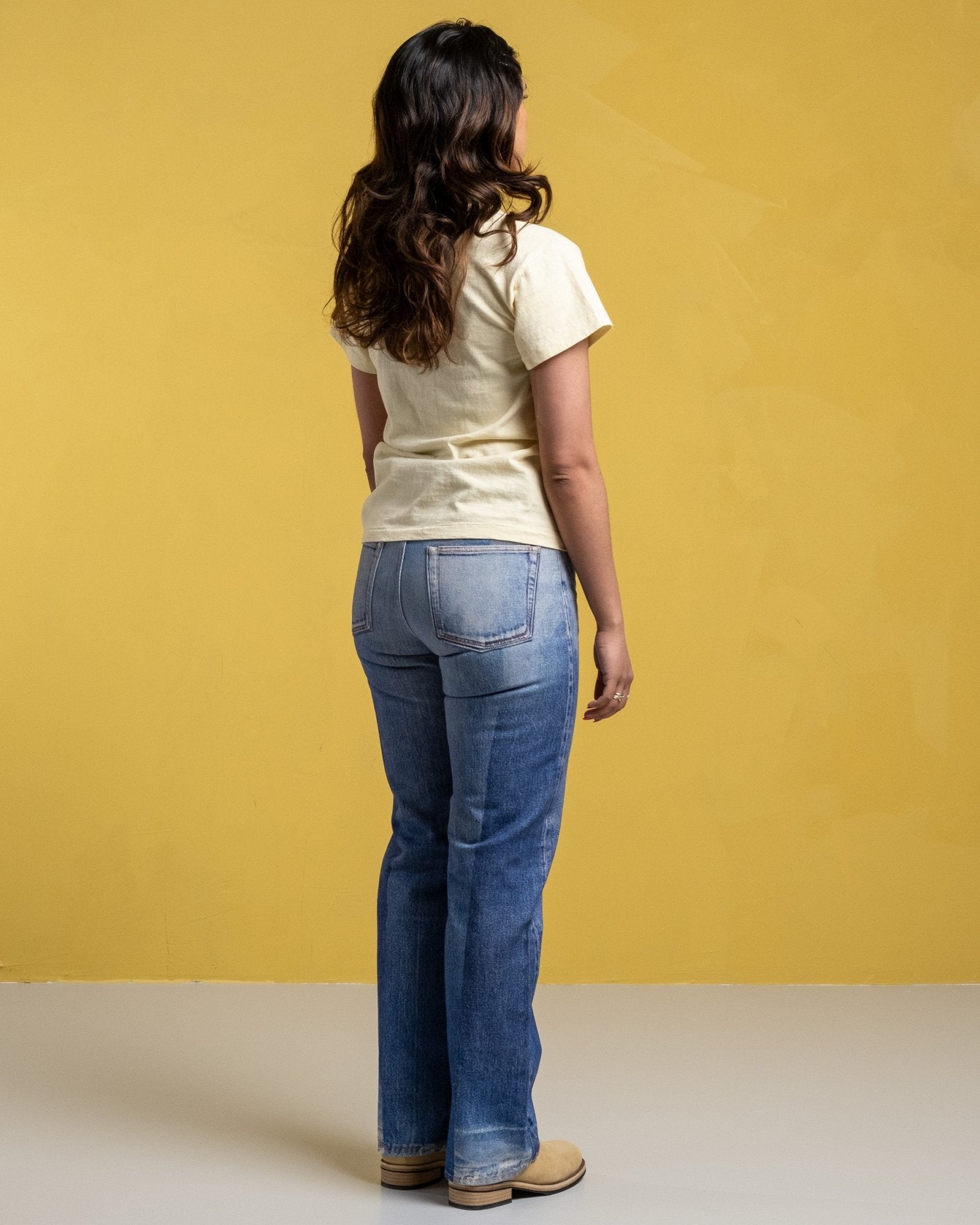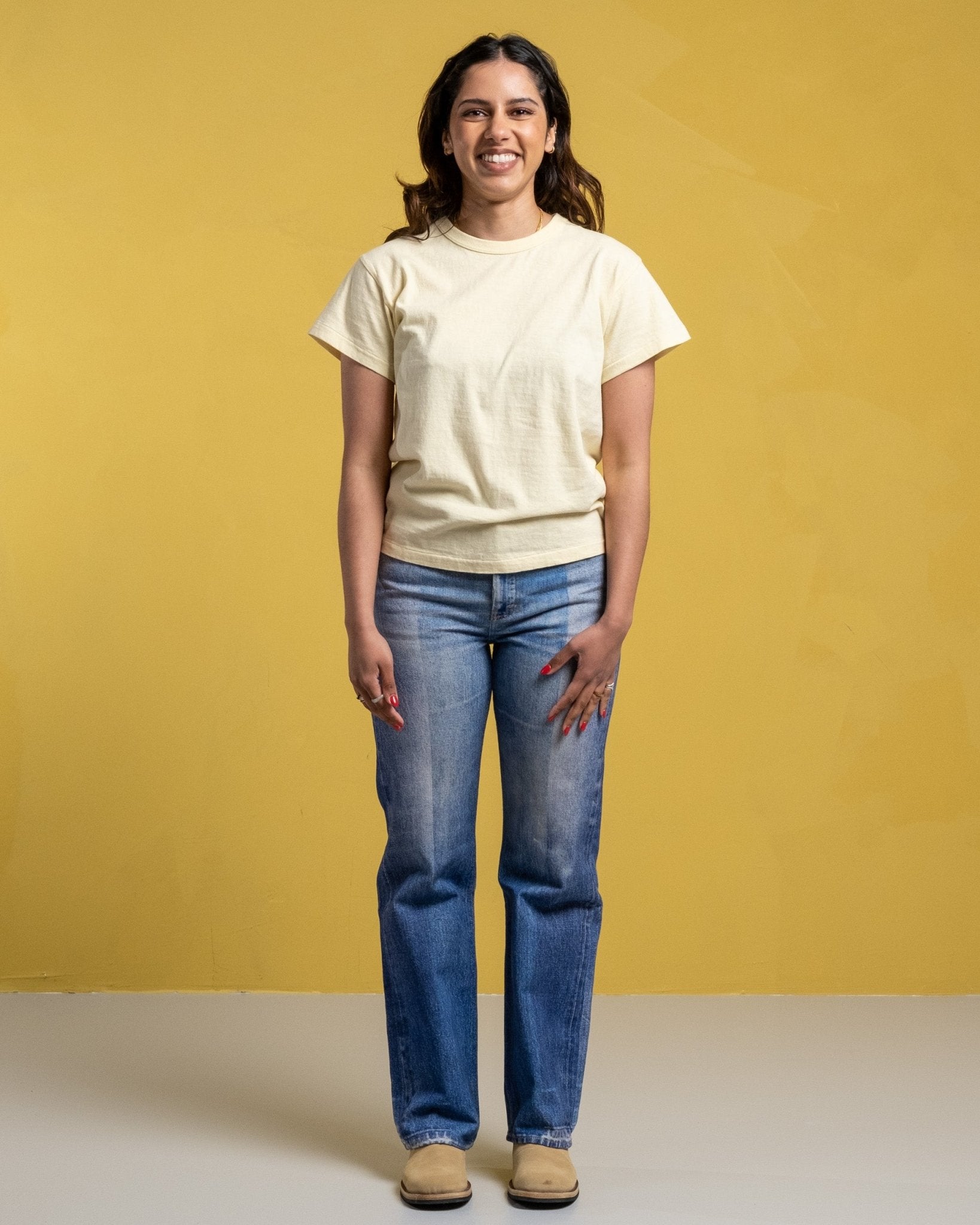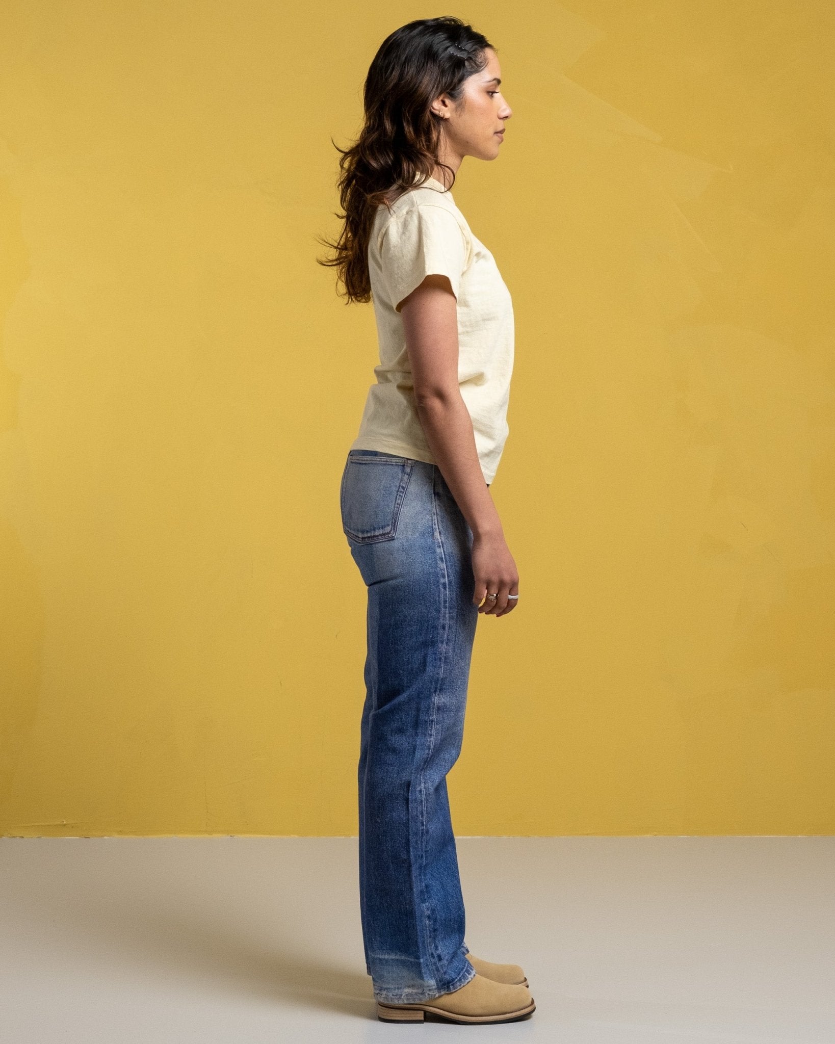 Na'maka'oh SS T-paita Pastellikeltainen Sunray Spiritiltä. Sunrayn T-paidat ovat perinteisellä istuvuudella, joka on inspiroitu 50-luvun tunteesta. Rentoutta ja säännöllistä istuvuutta. Kaulus, ribbineulos ja kankaat ovat myös perinteisiä. 260 g. Valmistettu Japanissa.