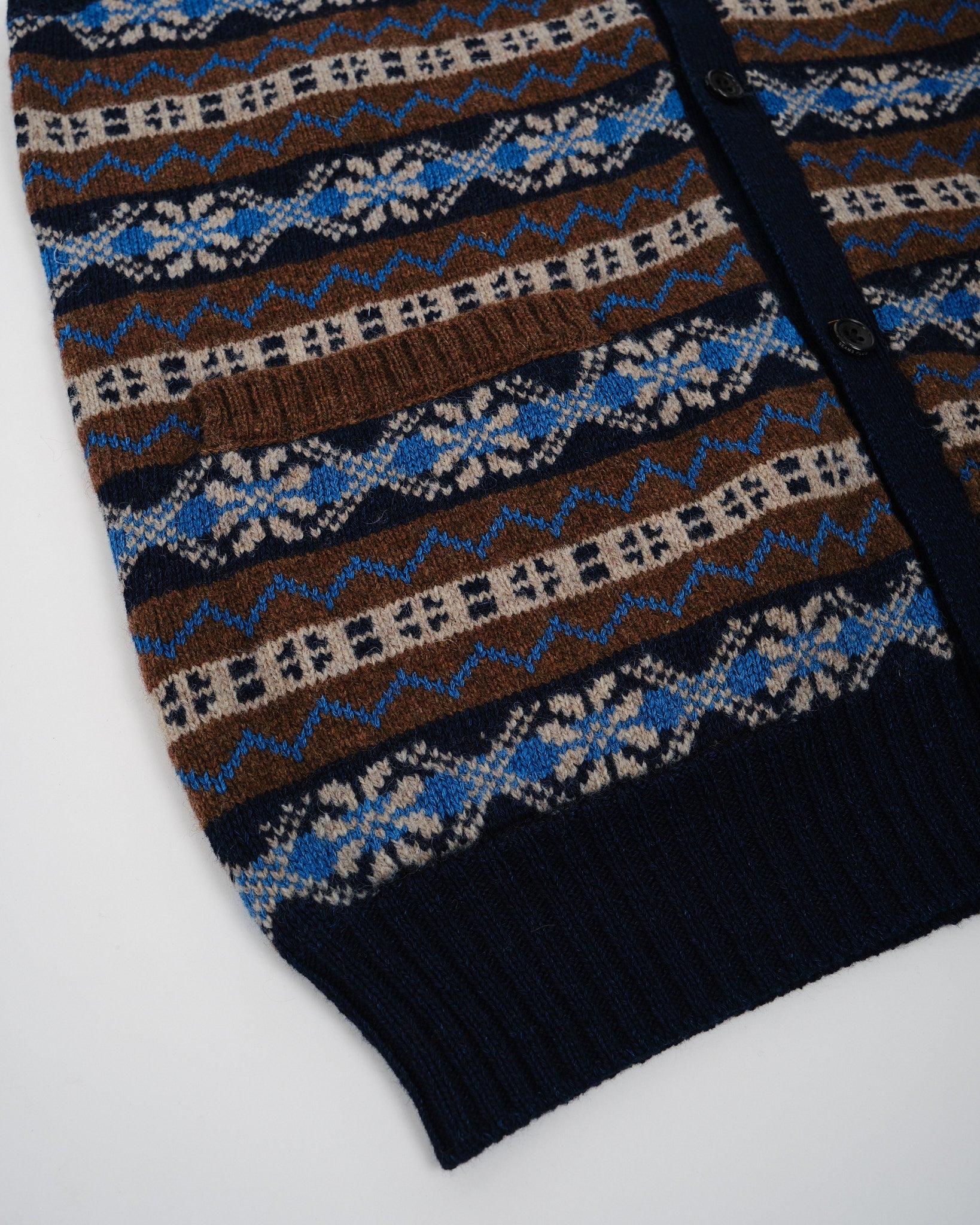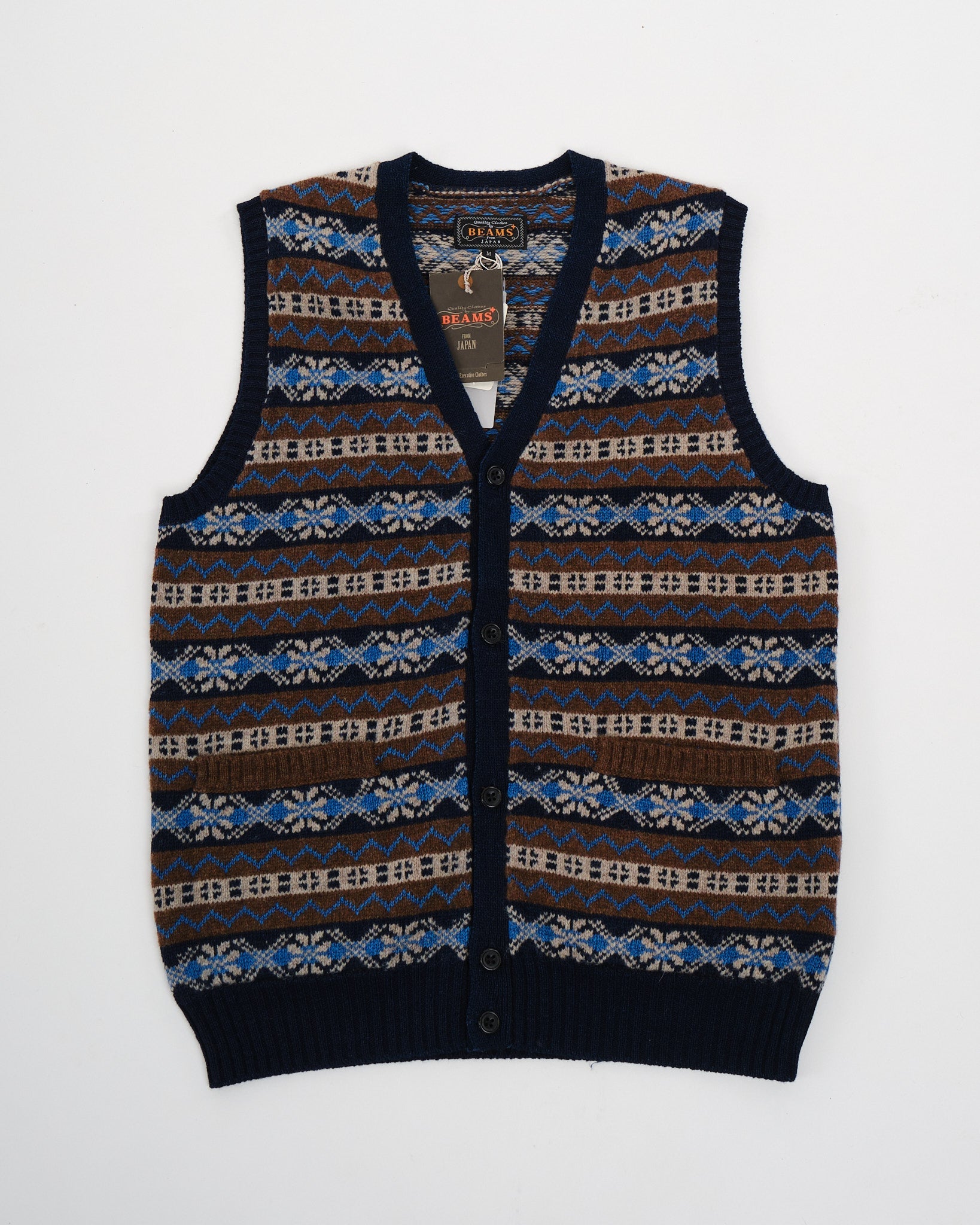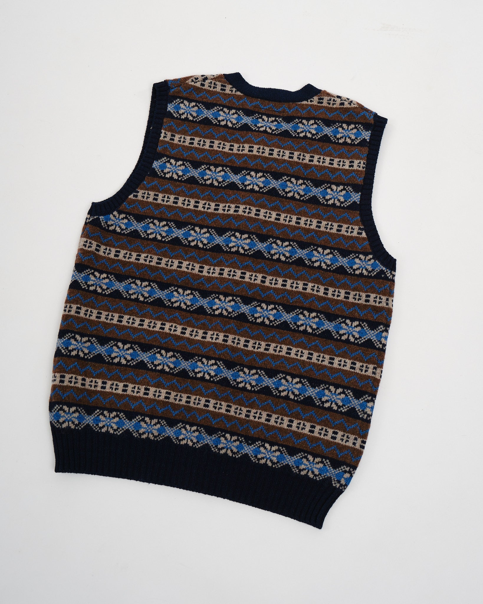 Button Knit Vest Indigo Fair Isle Brown