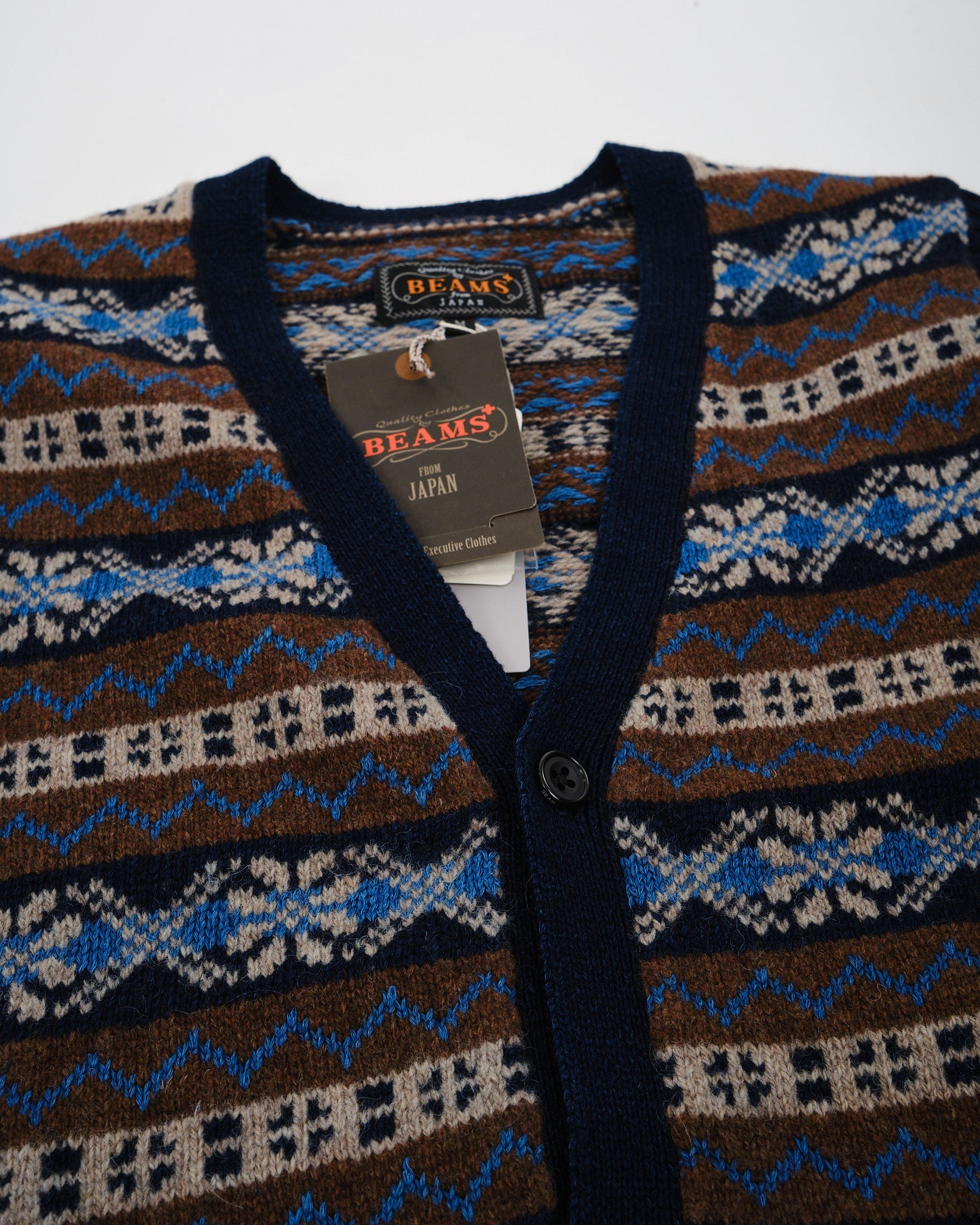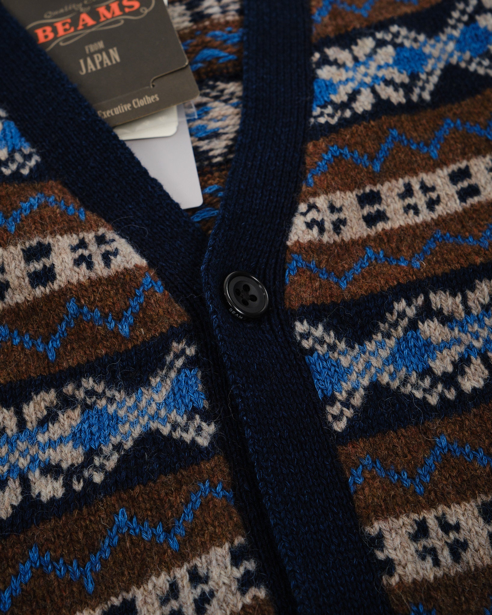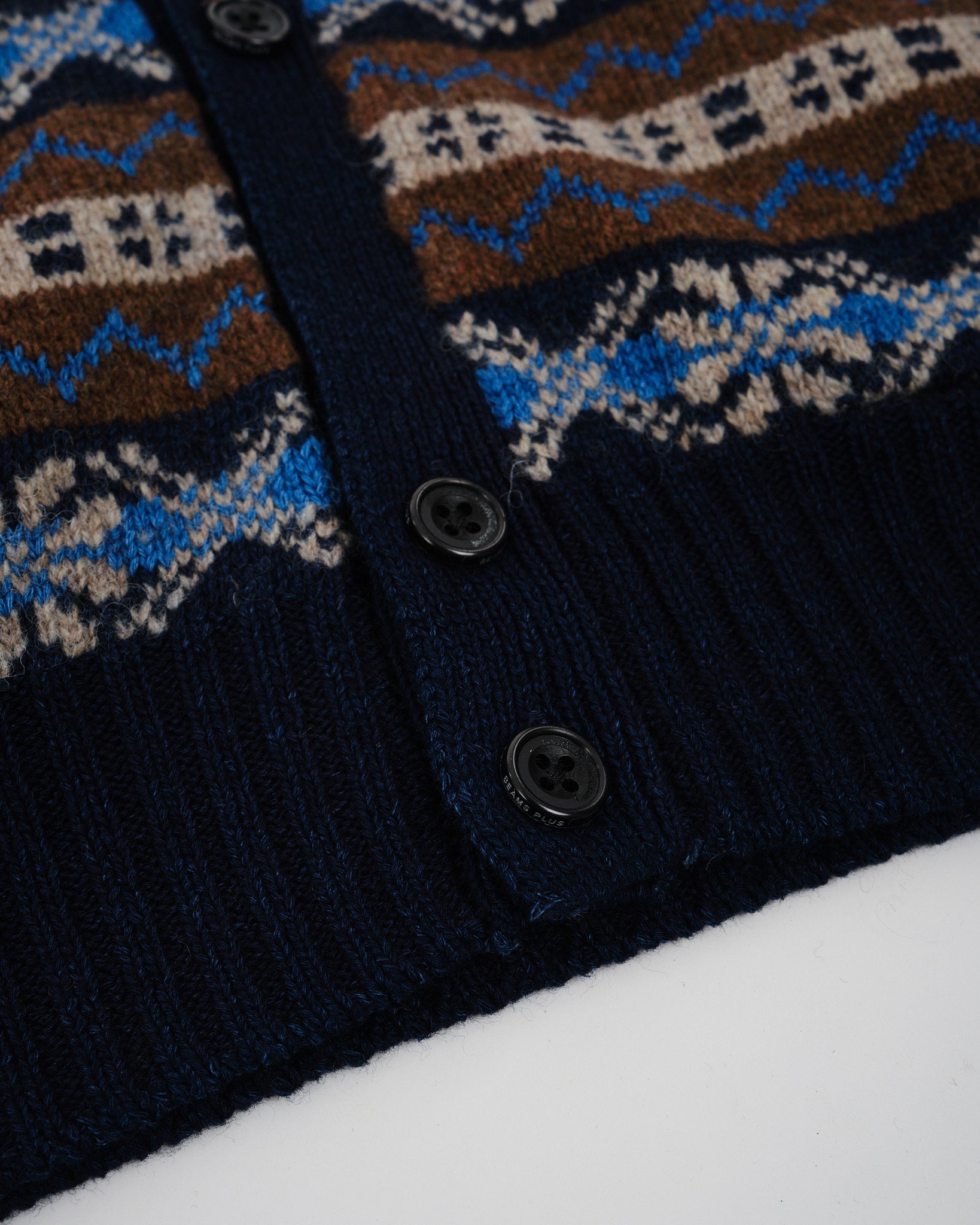 Button Knit Vest Indigo Fair Isle Brown