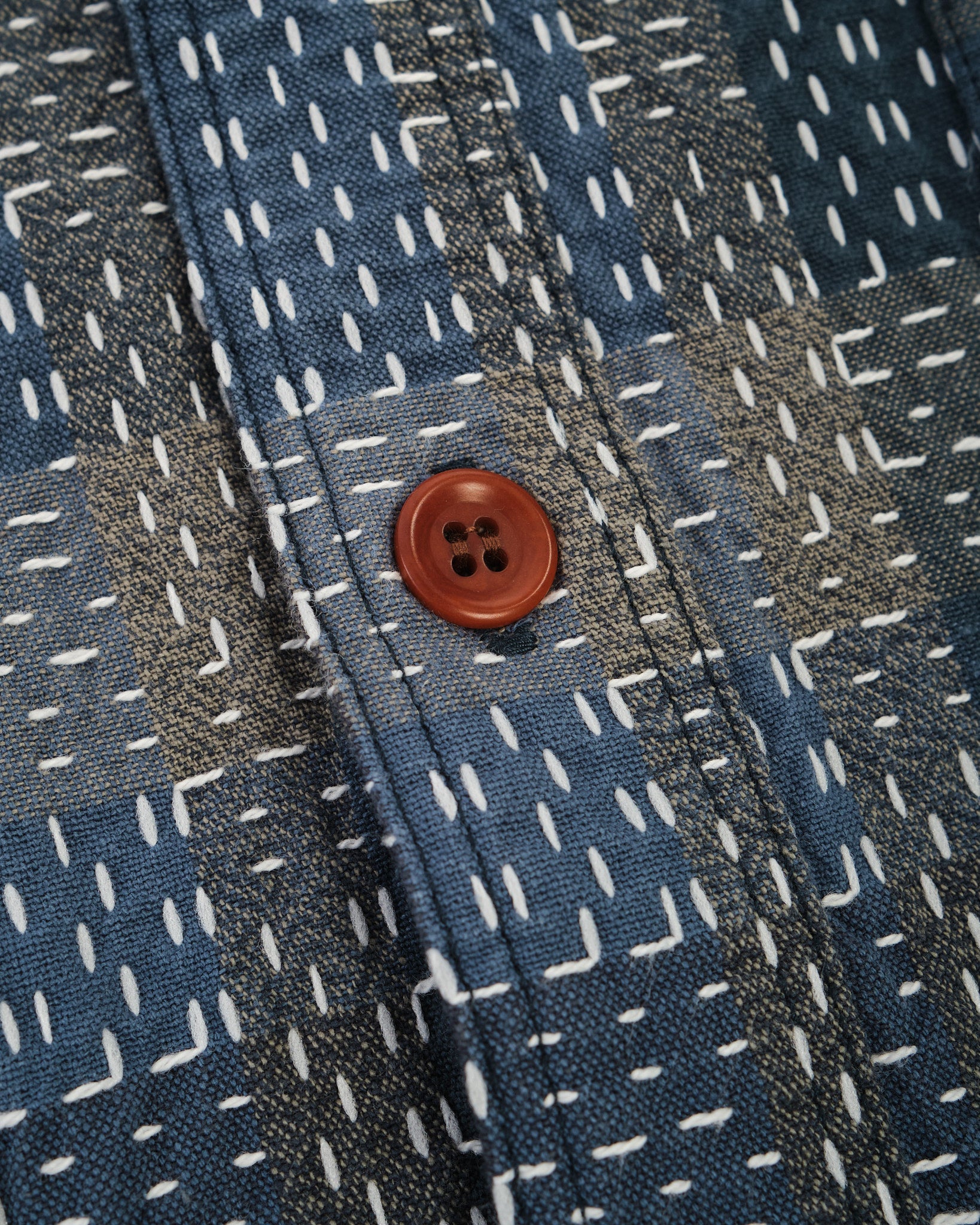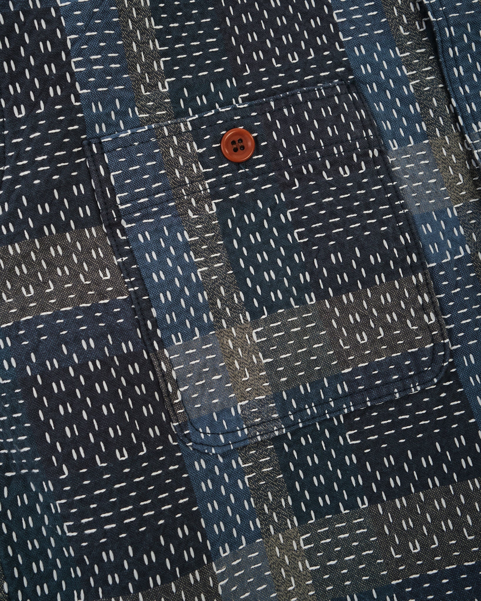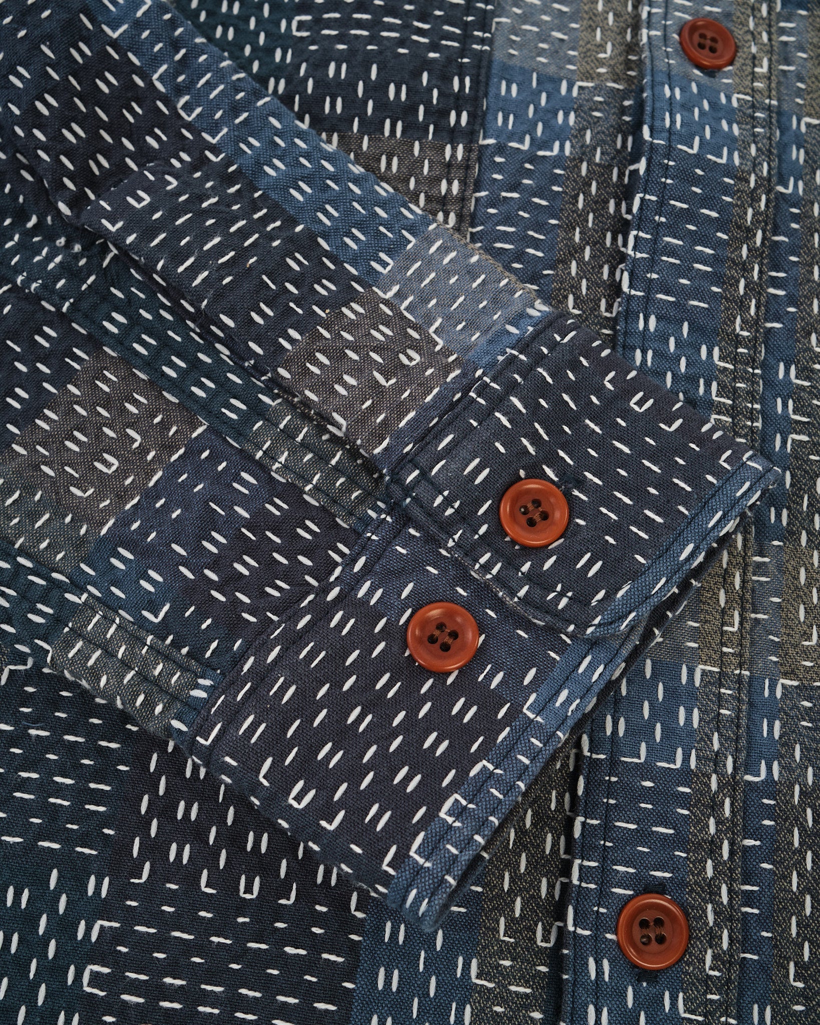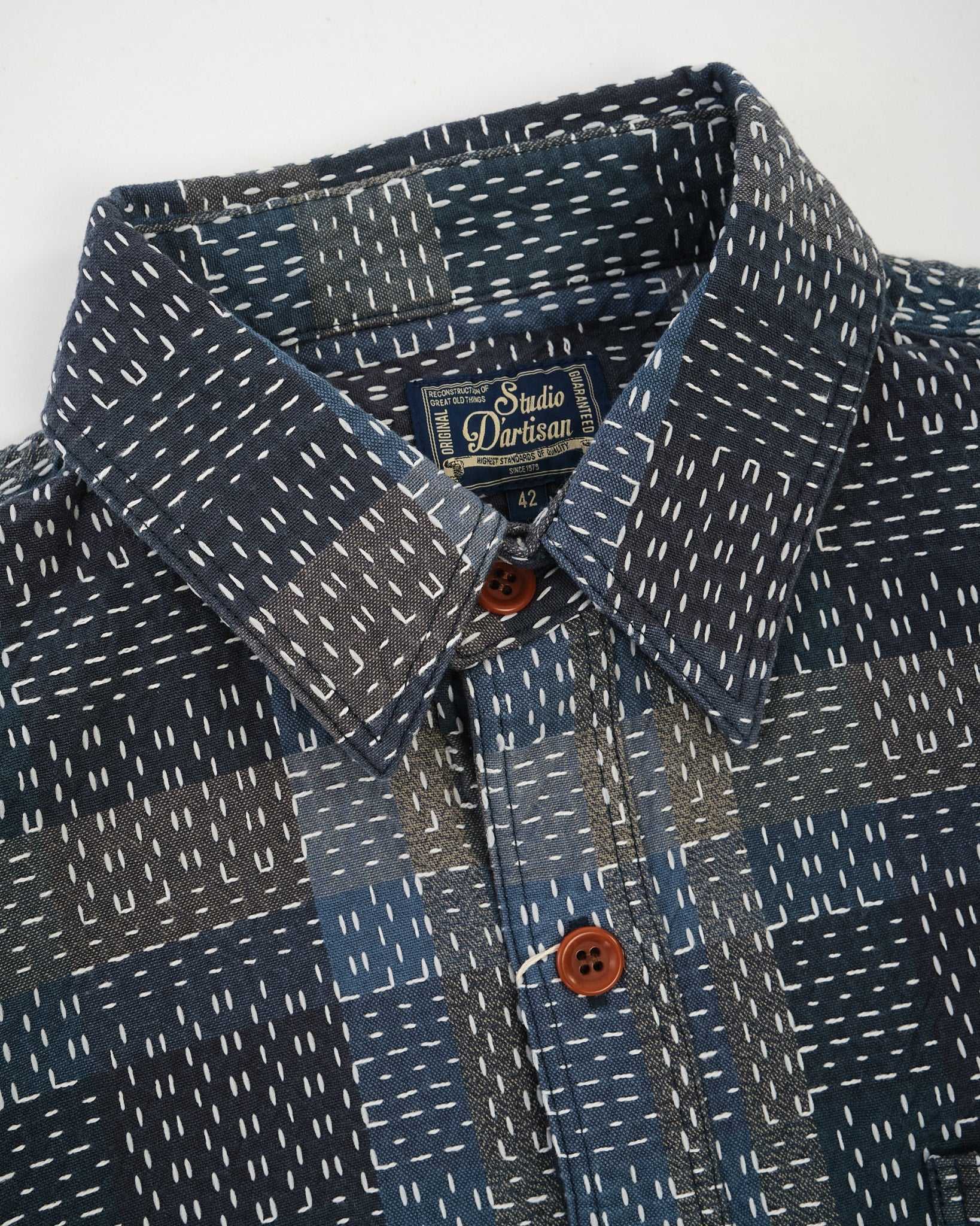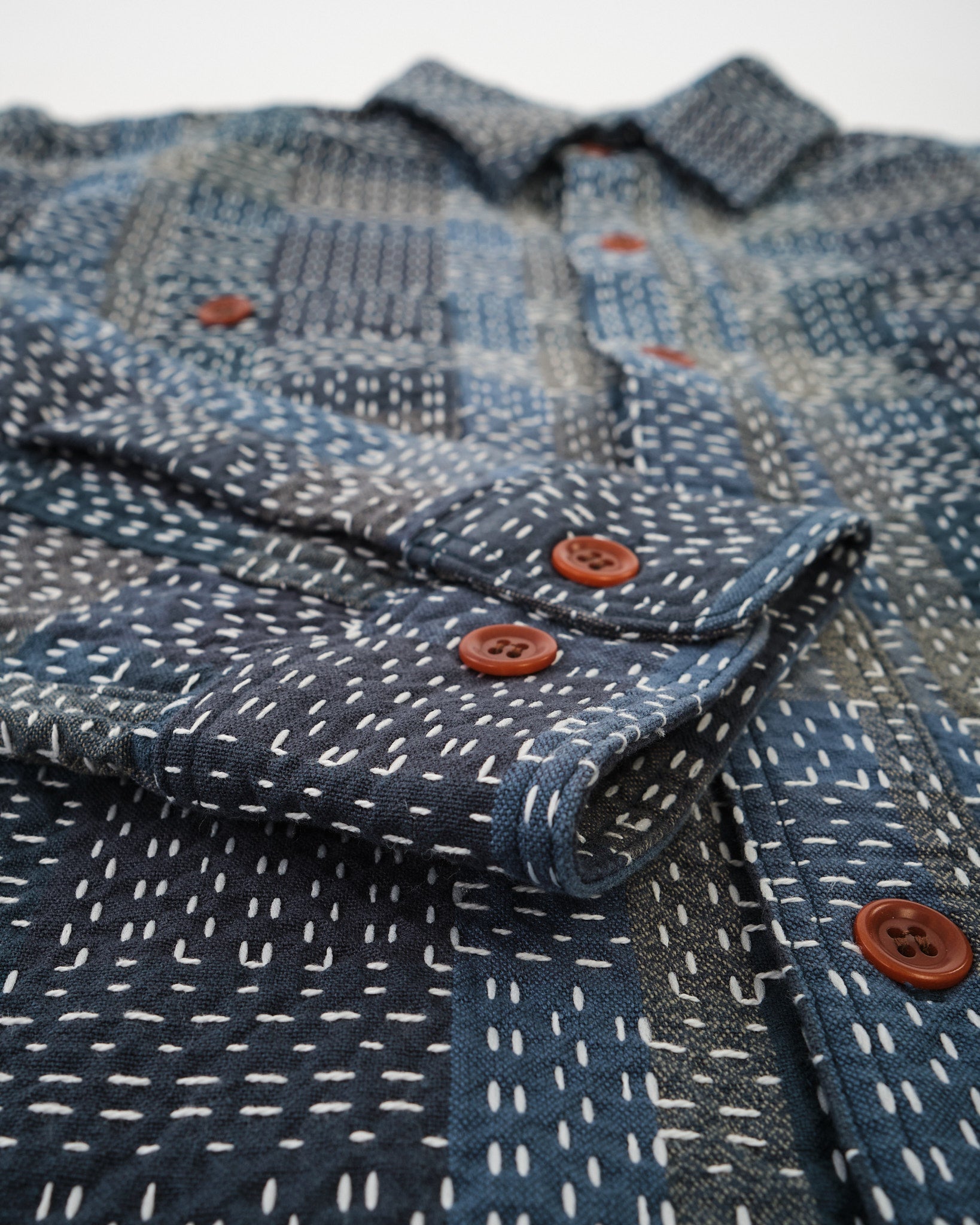 STUDIO D'ARTISAN Noragi Sashiko -paita (5651) on moderni tulkinta perinteisestä japanilaisesta työvaatteesta, joka ammentaa inspiraationsa Noragista, karuista vaatteista, joita työläiset käyttivät vuosisatoja sitten. Suunniteltu sashiko-ompelein, jotka kulkevat sekä pysty- että vaakasuunnassa, tämä paita esittelee ainutlaatuista käsityöestetiikkaa, joka kunnioittaa Japanin rikasta tekstiiliperintöä.