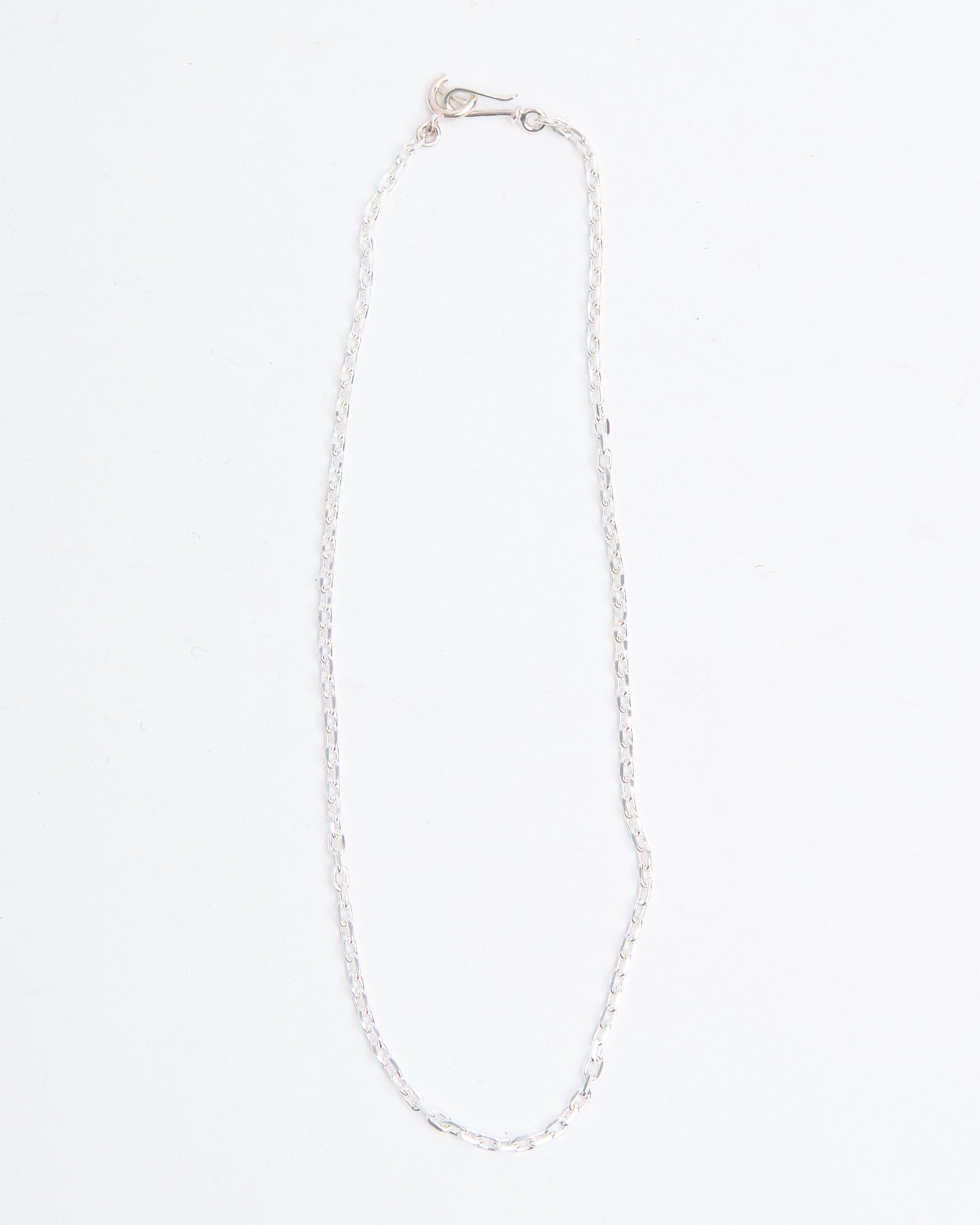 The Chain M (55cm) is a versatile silver chain from First Arrows, designed to complement pendants or be worn on its own. Handcrafted in Japan from Britannia Silver 950, it offers more brightness than standard 925 silver while being strengthened with First Arrows’ unique heat-treatment process for durability. The medium weight and 55cm length give it balance and comfort, making it a reliable everyday choice. Whether paired with a feather, medicine wheel, or other symbolic pendant, the Chain M adds a refined foundation to any necklace combination. Over time, the silver will age with a natural patina, giving the chain even more character.