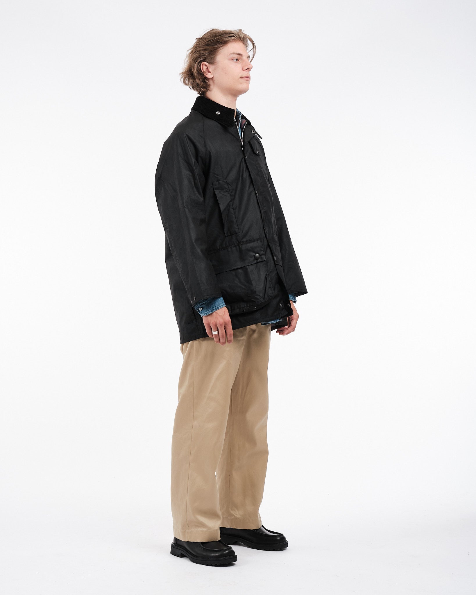 Tutustu BARBOUR OS Beaufort-vahatakkiin mustana, aikaa kestävän suosikin uudelleenversioon. Barboursin 6oz vahatusta puuvillasta valmistettu takki yhdistää kestävyyden ja tyylin aitoon brittiläiseen perintöön. Ylisuuri istuvuus, joka on räätälöity erityisesti markkinoille, antaa modernin vivahteen ikoniselle Beaufort-suunnittelulle. Mukana on ominaisuuksia, kuten kaksi käsienlämmittelytaskua, kaksi alempaa läppätaskua ja vetoketjulla varustetut takataskut kätevää säilytystä ja toiminnallisuutta varten. Sisäpuolen puuvillainen tartanvuori lisää mukavuutta ja lämpöä, kun taas kauluksen naru korostaa sen ulkonäköä. Ihanteellinen niille, jotka arvostavat charmikkuuden ja nykyaikaisen istuvuuden sekoitusta.