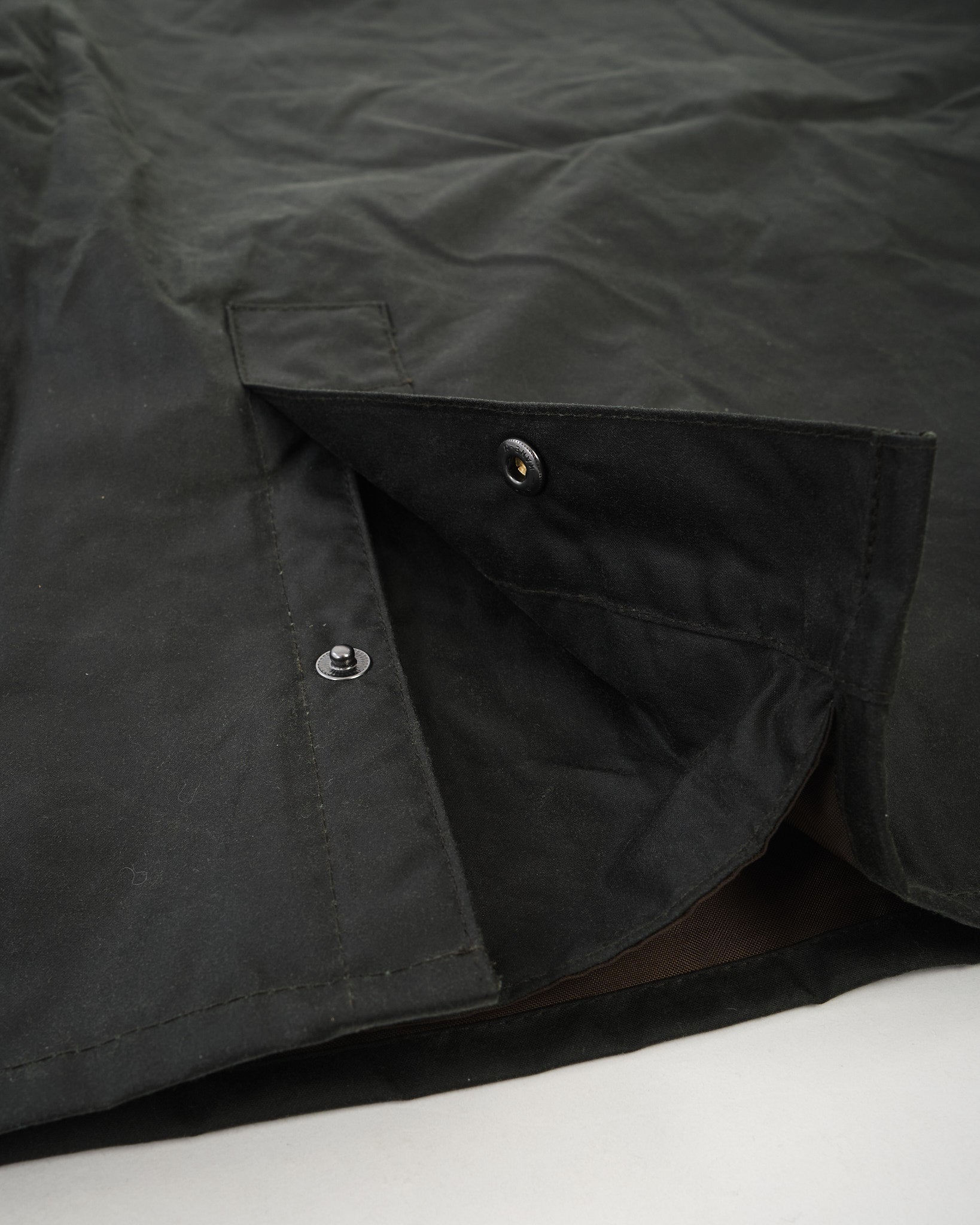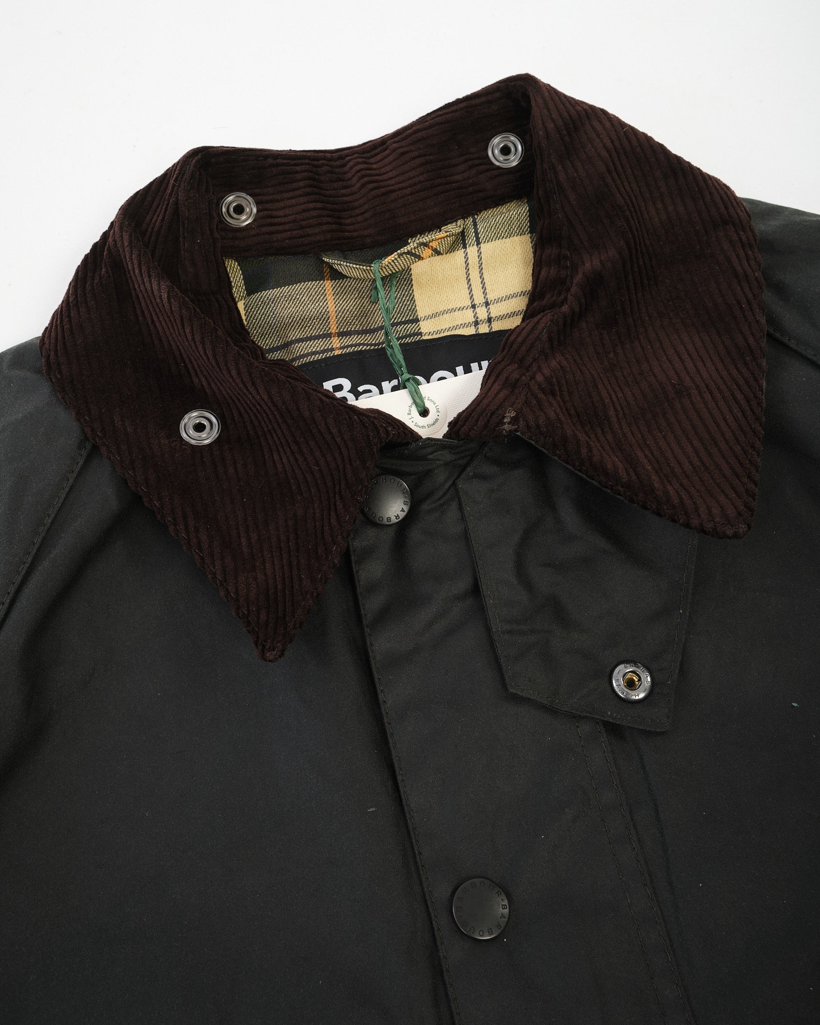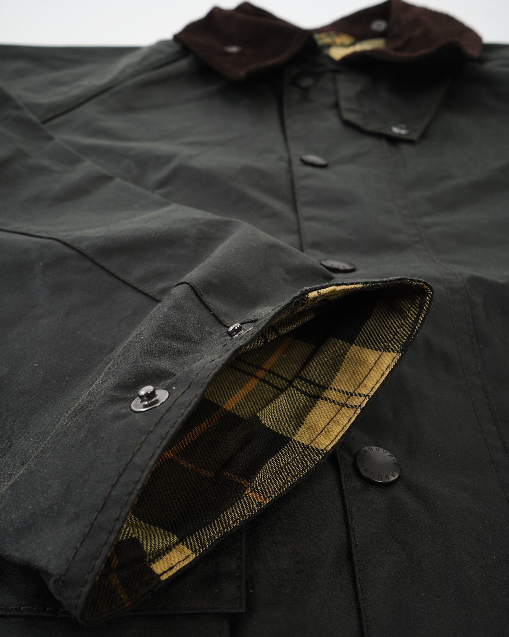OS Bedale Wax Jacket Sage-värissä on nykyaikainen, ylisuuri otos Barbourin legendaarisesta Bedale-siluetista, yhdistäen maaseudun perinnön rennon modernien mittasuhteiden kanssa. Valmistettu Barbourin tunnusomaisesta 6oz Sylkoil-vahatusta puuvillasta, se säilyttää alkuperäisen säänkestävyyden ja karun viehätyksen, kun taas liioiteltu leikkaus lisää katutyyliin sopivaa helppoutta. Yksityiskohdat, kuten korduroykaulus, kurkkuremmi, suuret etutaskut ja kaksisuuntainen vetoketju myrskyläpällä, kaikki viittaavat klassiseen Bedale-DNA:han. Viimeistelty Barbourin ikonisella tartan-vuorilla ja valmistettu UK:ssa, tämä on erottuva vahattu takki, joka yhdistää toiminnallisuuden, perinnön ja rohkean ylisuuren siluetin.