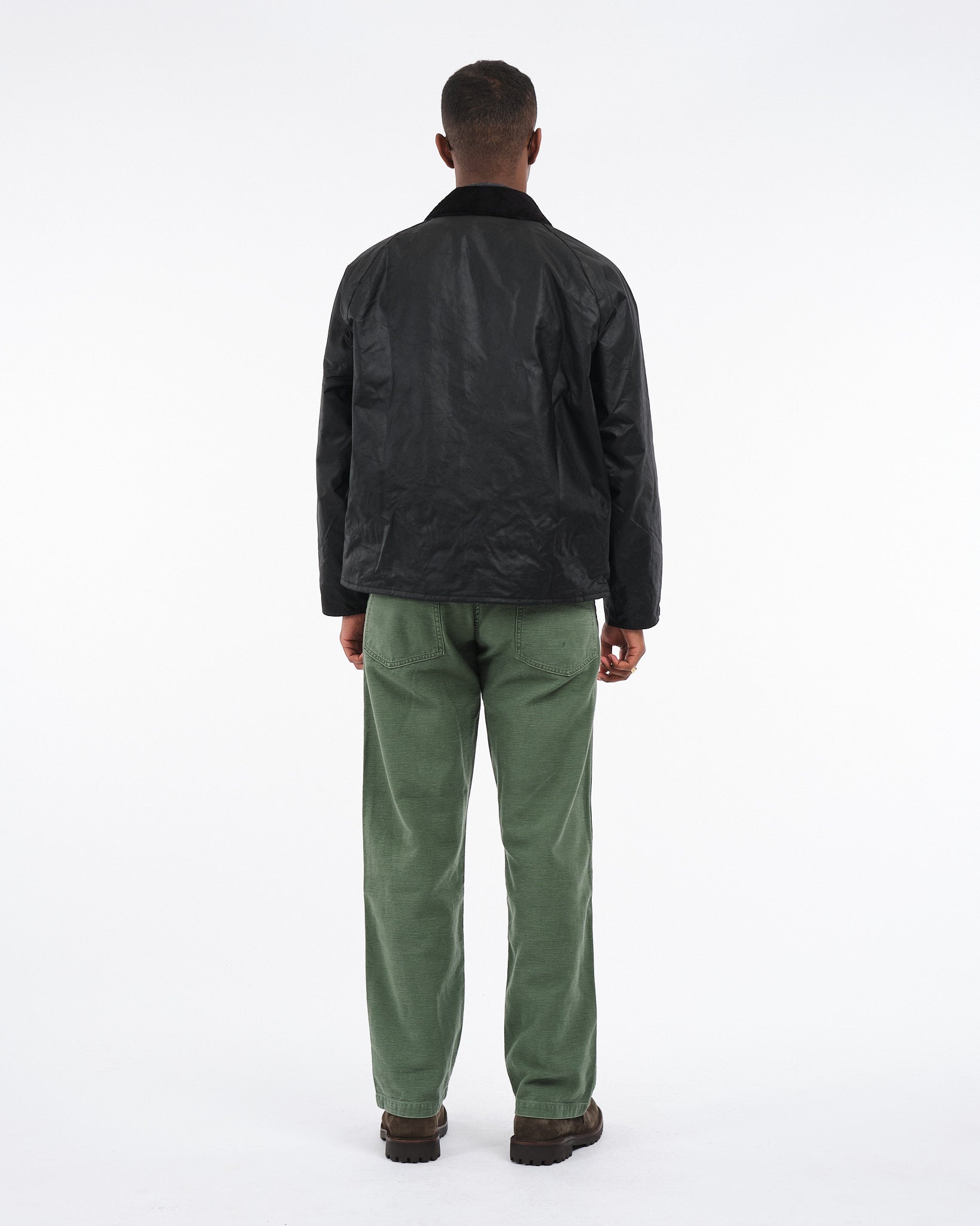 Tutustu BARBOURin historiaan ja käsityötaitoon OS Transport Wax Jacketin, mustan vahatakki, kautta. Tämä takki kunnioittaa Barbourin 130 vuoden perintöä esitellen 6oz vahatun puuvillan ulkopinnan. Se sisältää elementtejä kuten narukauluksen, renkaanvetimet ja metallinepparit yhdistäen klassisen suunnittelun nykyaikaiseen ylisuureen istuvuuteen, joka on räätälöity Aasian markkinoille. Sisäpuolelta löydät tartan-vuorauksen ja sisäisen myrskyläpän, lisämukavuuden ja lämmön takaamiseksi. Varustettu joustavilla tuulimanseteilla ja kahdella alataskulla, tämä takki yhdistää käytännöllisyyden ripaukseen brittiläistä viehätysvoimaa. Täydellinen niille, jotka arvostavat perintökappaleita twistillä.