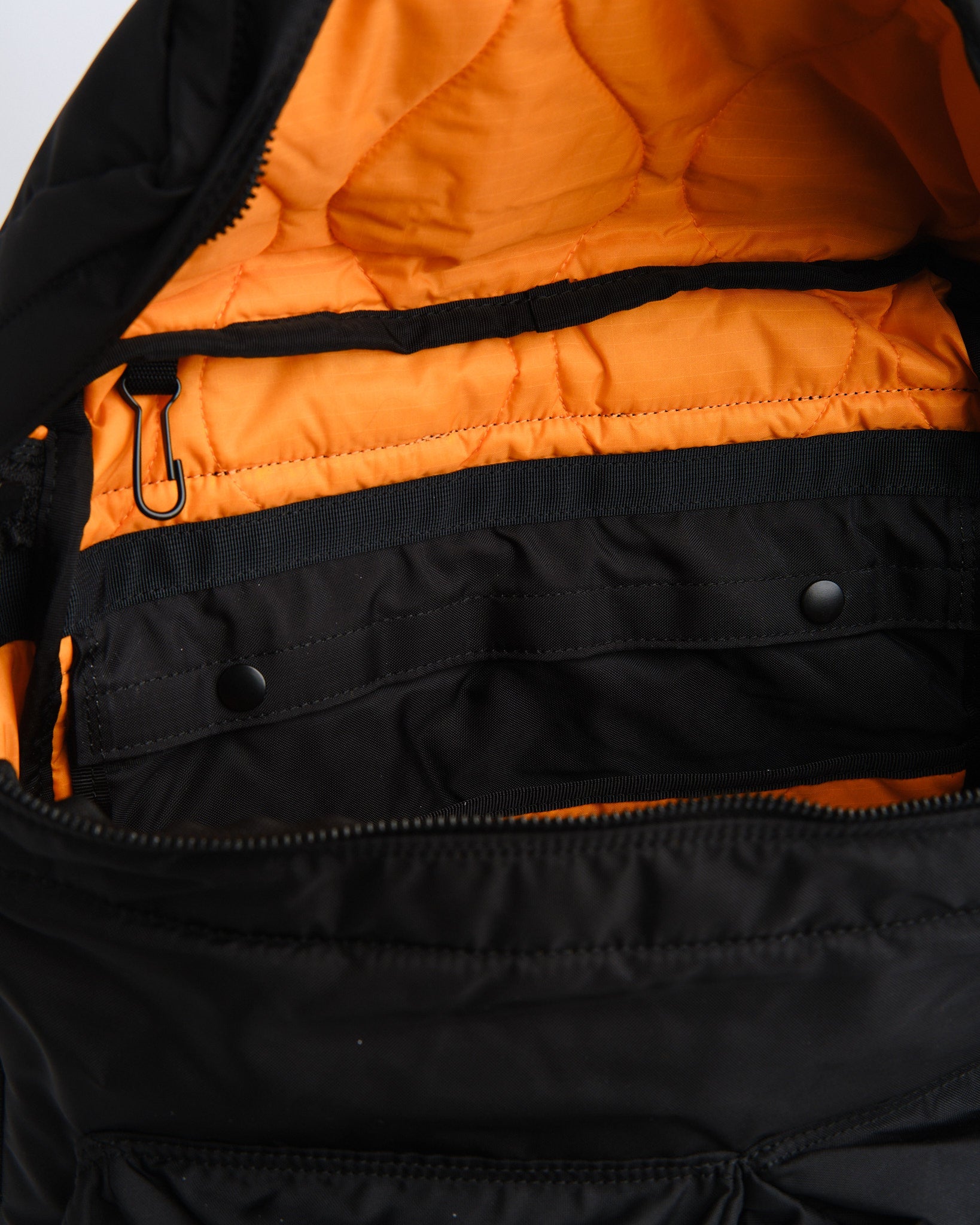 Tutustu PORTER YOSHIDA PORTER FORCE DAYPACKiin värissä Musta, joka on modernin tyylin ja sotilaallisen tarkkuuden fuusio. Japanissa suunniteltu ja valmistettu tämä päiväreppu ammentaa inspiraationsa sotilasvarusteiden värimuunnelmista. Se on valmistettu Nylon Ox -kankaasta, jossa on akryylipinnoite, kun taas sen sisusta on vuorattu pistävän hätäoranssin sävyisellä tikatulla nylonia repäisemättömällä kankaalla. Tämä yhdistelmä takaa paitsi pitkäikäisyyden, myös lisää ainutlaatuista kosketusta sen esteettiseen vetovoimaan. Päiväreppu kehuskelee kokoisella pääosastolla, joka mukavasti mahtuu B4-kokoiset esineet sekä useilla ulkoisilla vetoketjutaskuilla, tarranauhataskulla ja sisäisillä järjestelytaskuilla. Yksi näistä voidaan irrottaa lisämukavuuden vuoksi. Ulkomitoiltaan W 295mm x H 410mm x D 130mm ja painaen 735g se soveltuu täydellisesti jokapäiväiseen käyttöön, tinkimättä tyylissä tai toiminnallisuudessa. Lisäksi sen tilava 19L tilavuus takaa tilaa kaikkien olennaisten tavaroidesi säilyttämiseen.