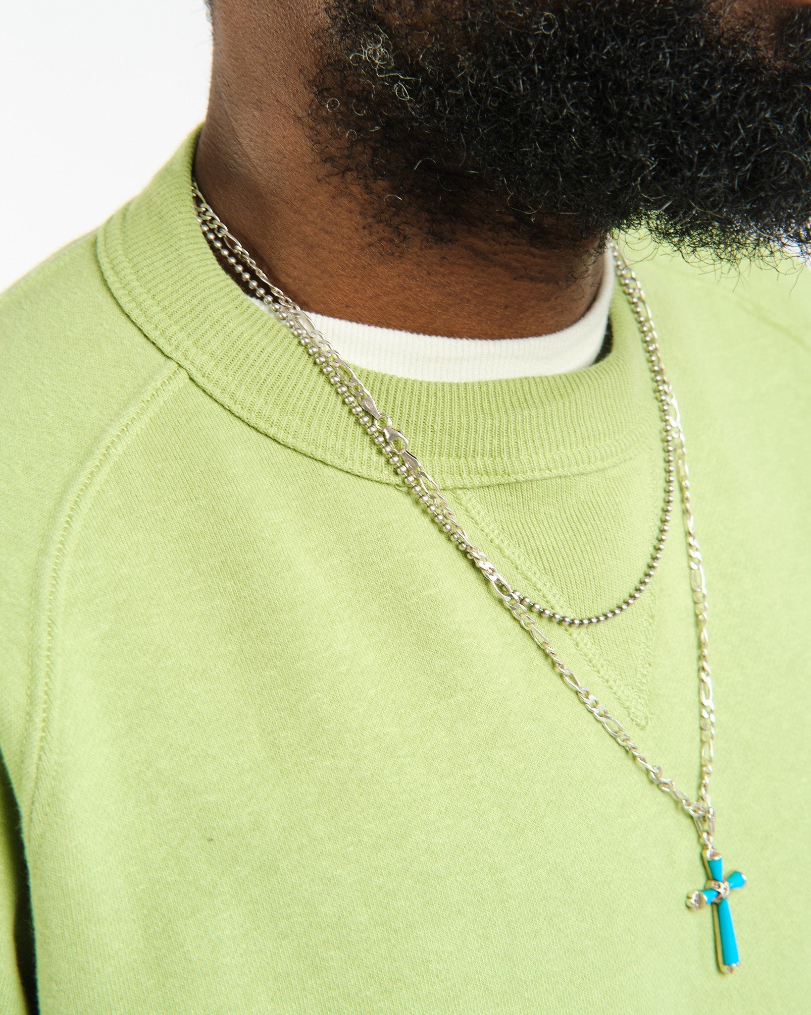 Puamana Crew Neck Sweat Hambledon Grey Sunray Sportswearilta on klassikko tekeillä. 50-luvun inspiroima perinteinen istuvuus on rento, laatikkomaisempi ja hieman lyhyempi kuin moderni istuvuus. Kaulus, ribbineulos ja kankaat ovat kaikki perinteiseen tyyliin. Valmistettu Japanissa, se kehuskelee 420g japanilaisella terry fleece -kankaalla ylivoimaisen mukavuuden takaamiseksi. Tämä uusi malli, jossa on raglanhihat ja kaksinkertainen 'V'-kaulus, on jo suosikki Meadow'ssa. Sen valmistus antiikkisilla pyöröneulekoneilla takaa saumattoman, kestävän vaatteen, joka ei menetä muotoaan.