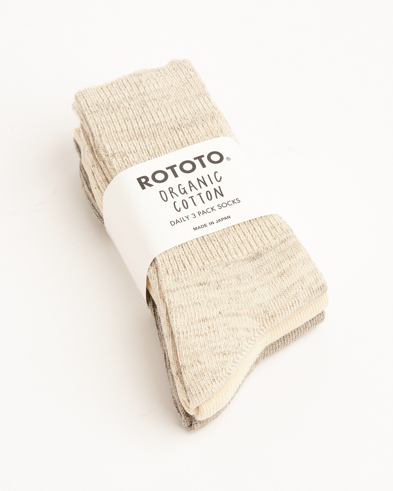 Nosta sukkapeliäsi ROTOTO Organic Daily 3 Pack Crew Socks -sukkapaketilla värissä Ecru/Gray. Tämä monipuolinen trio on peräisin Japanista ja se on valmistettu 93% luomupuuvillasta, tarjoten voittamatonta pehmeyttä ja mukavuutta. Paketti sisältää kolme erilaista suunnittelua: paksu rib-neulos, nukkapohja ja täysin vuorattu nukkakangas, varmistaen että olet valmis joka tunnelmaan ja tilaisuuteen. Ribatut varret ja vahvistukset varpaissa ja kantapäässä tekevät näistä sukista sekä muodikkaita että käytännöllisiä.