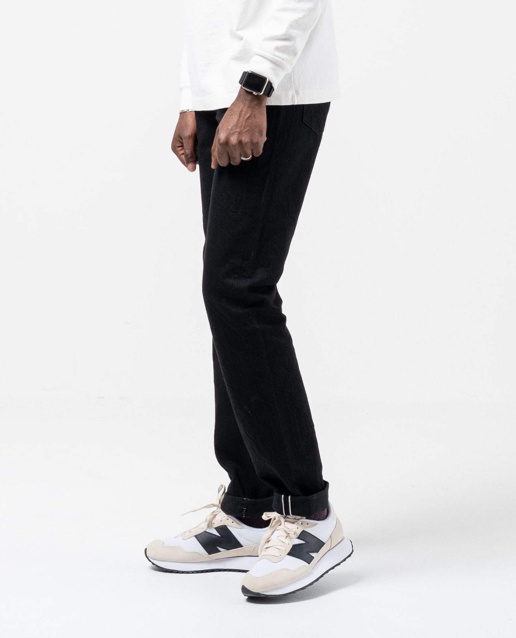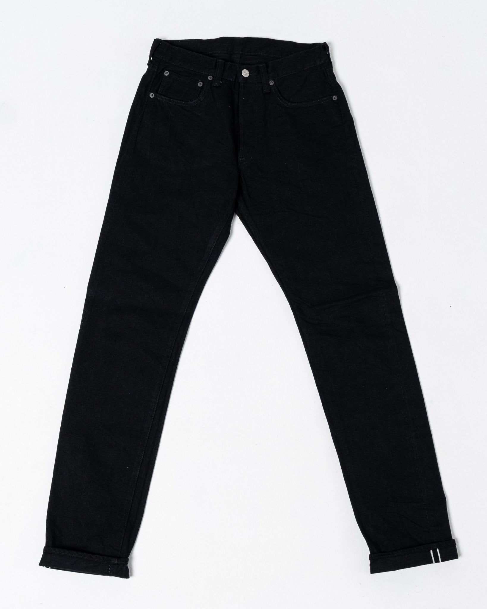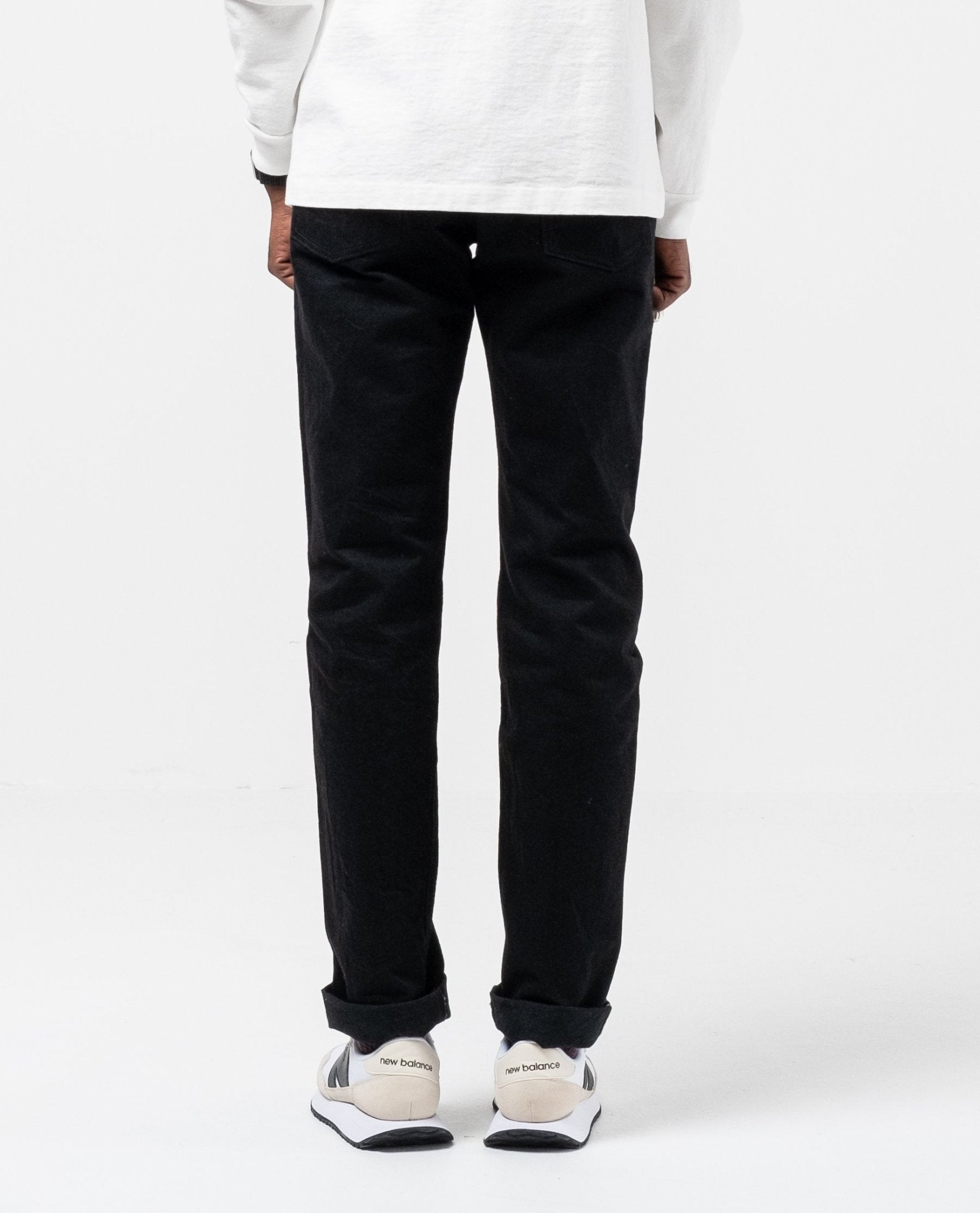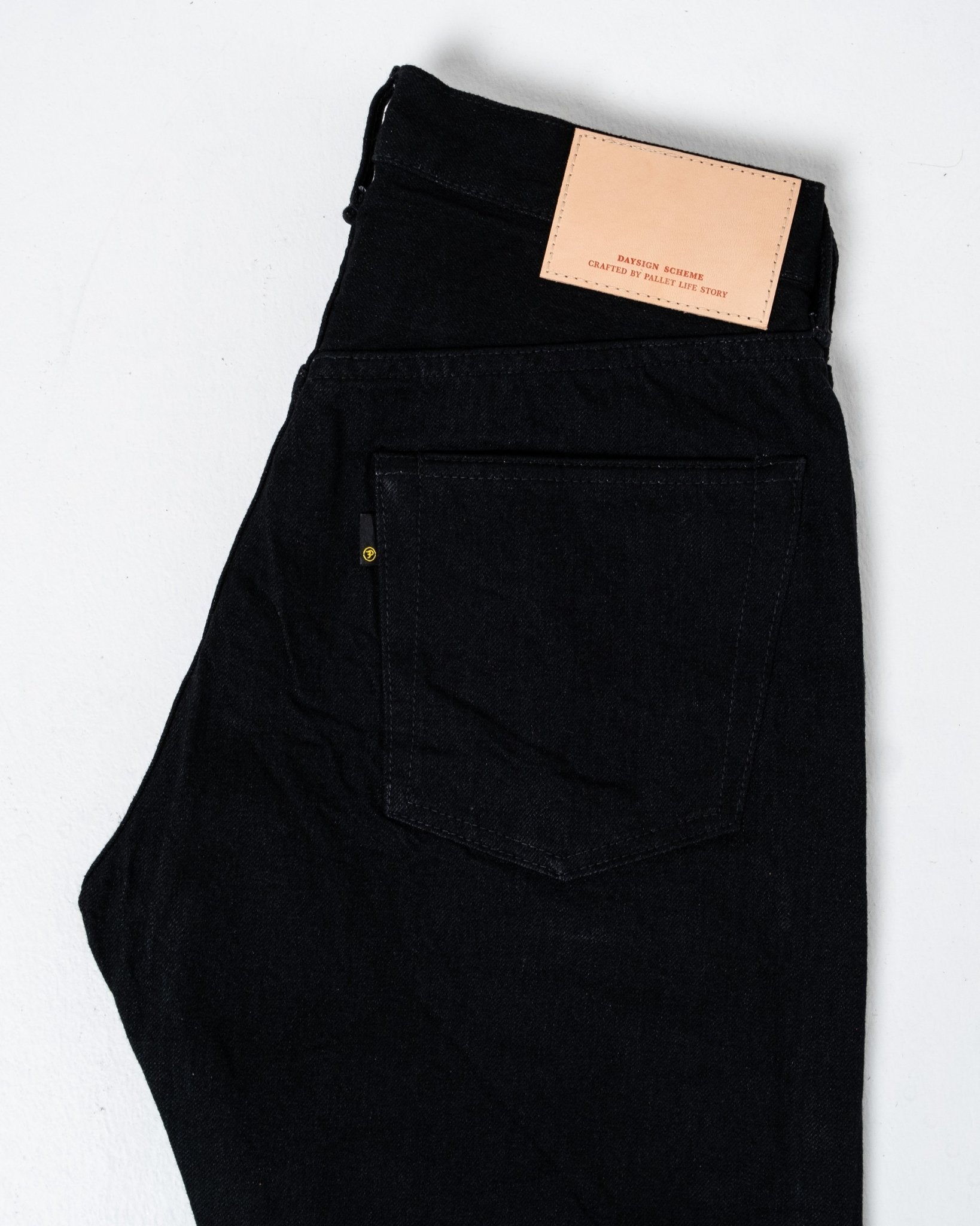 Raw 5 Pocket Black Denim Narrow Pallet Life Storyltä. Klassiset farkut, jotka on valmistettu pestystä 15 oz käsittelemättömästä denimiistä. Kyseessä on kapea malli, jossa on hieman korkeampi vyötärö ja kevyt kapenevuus polvesta alaspäin. Värjätty, kudottu, leikattu ja ommeltu Kojimassa, Japanissa.