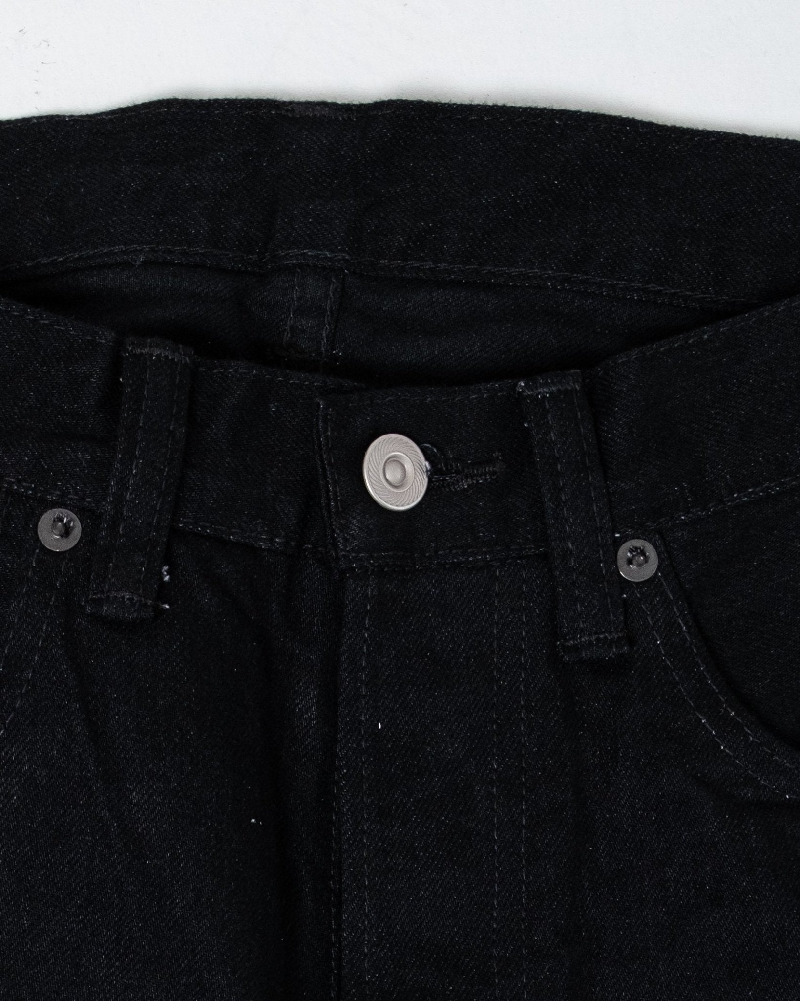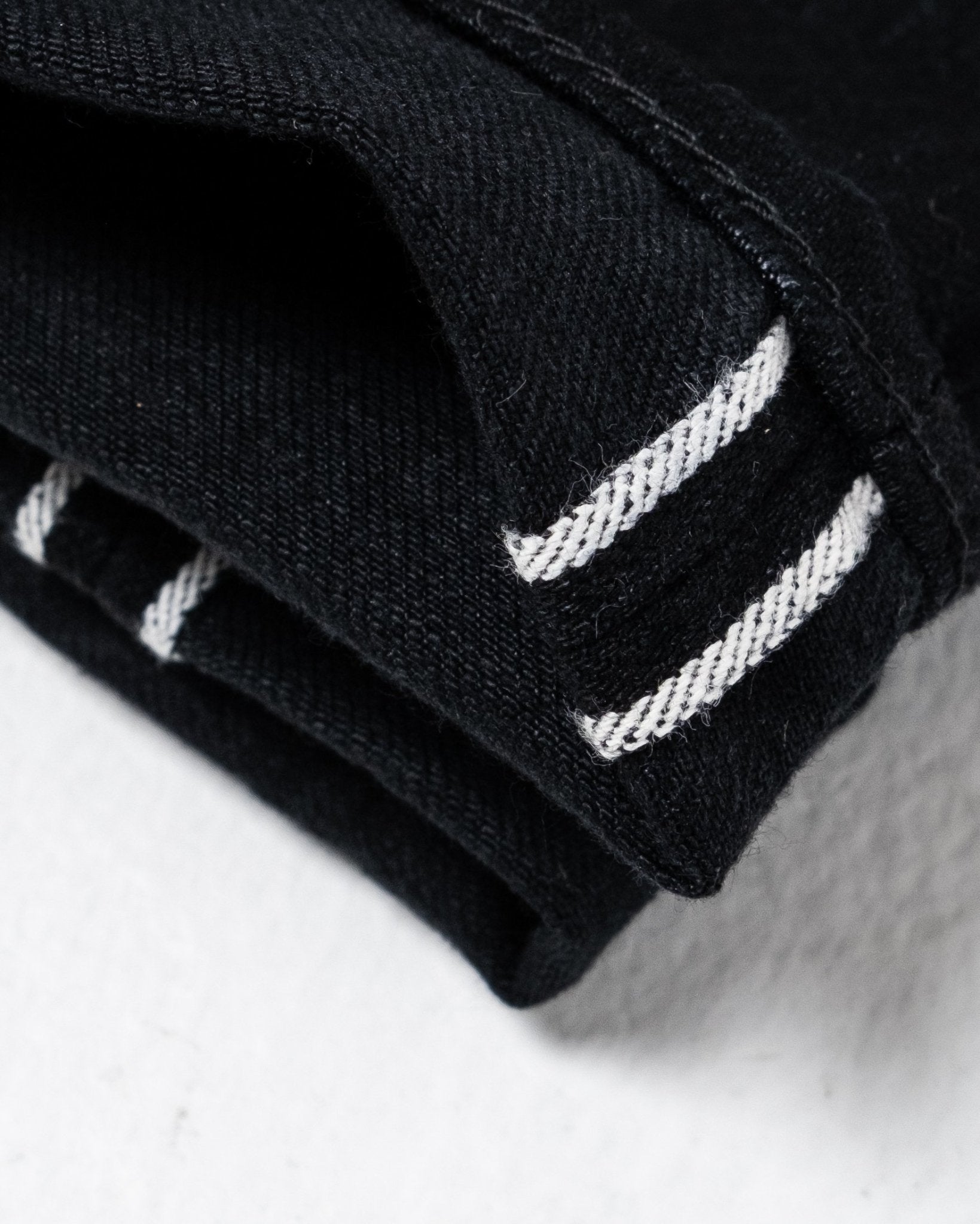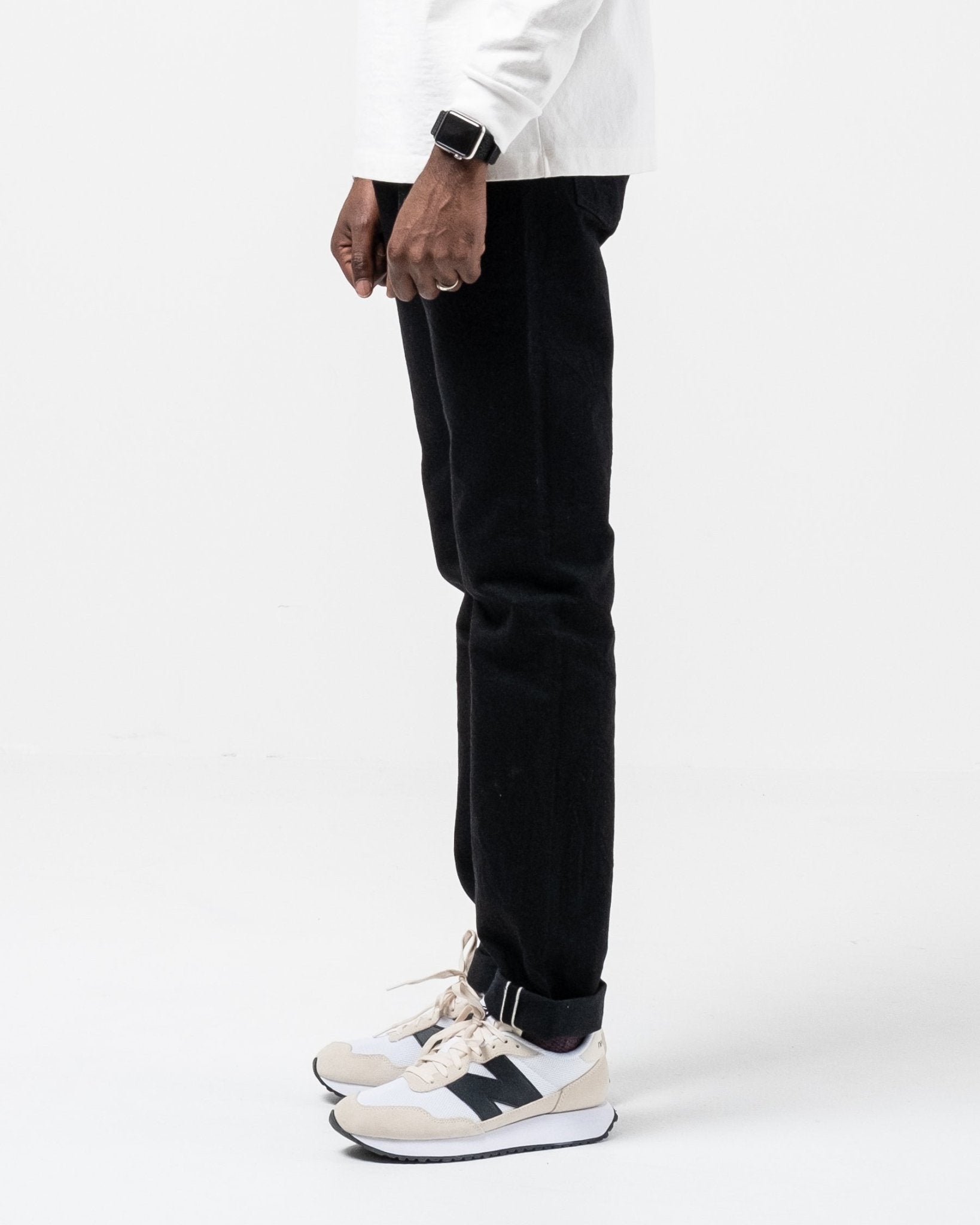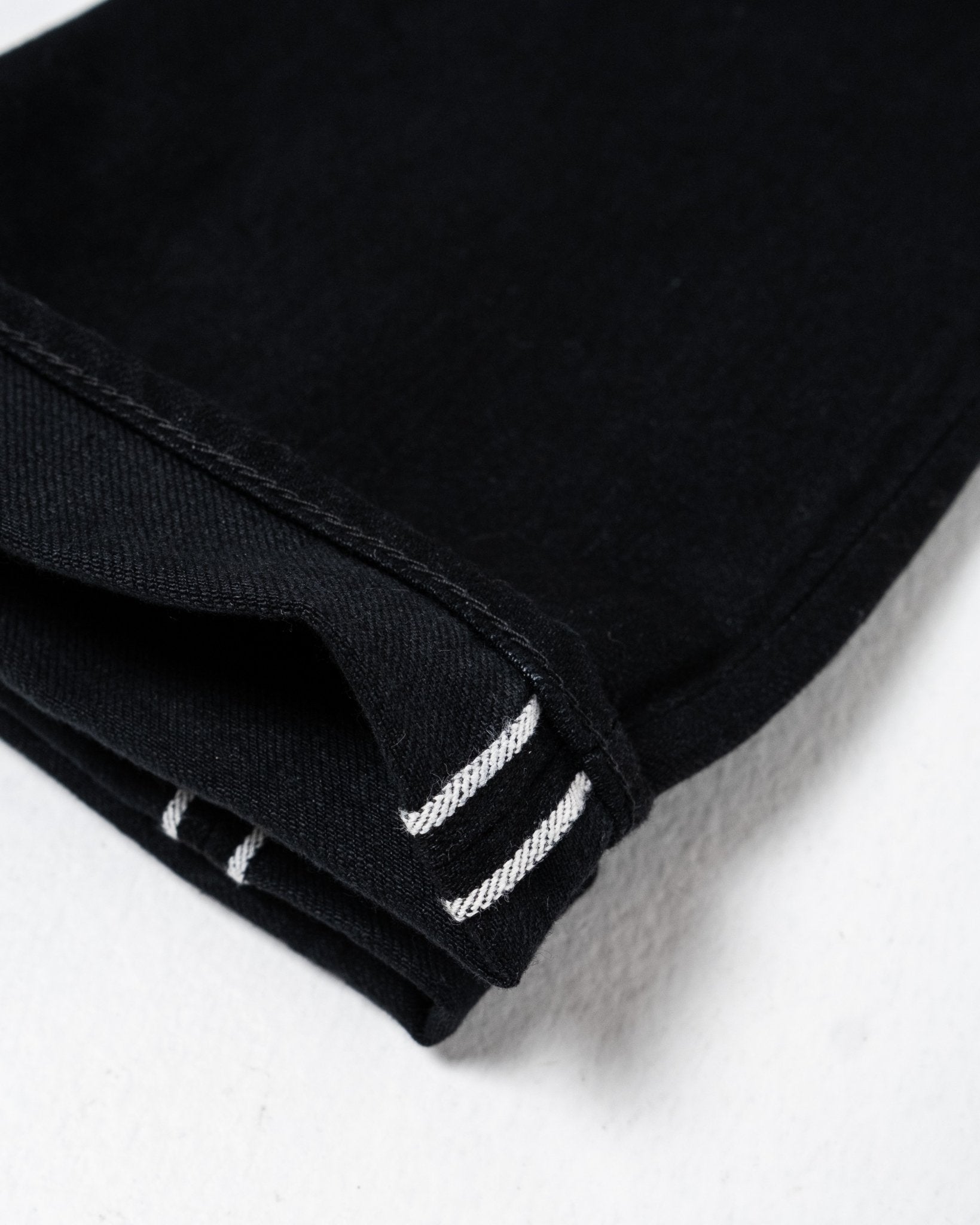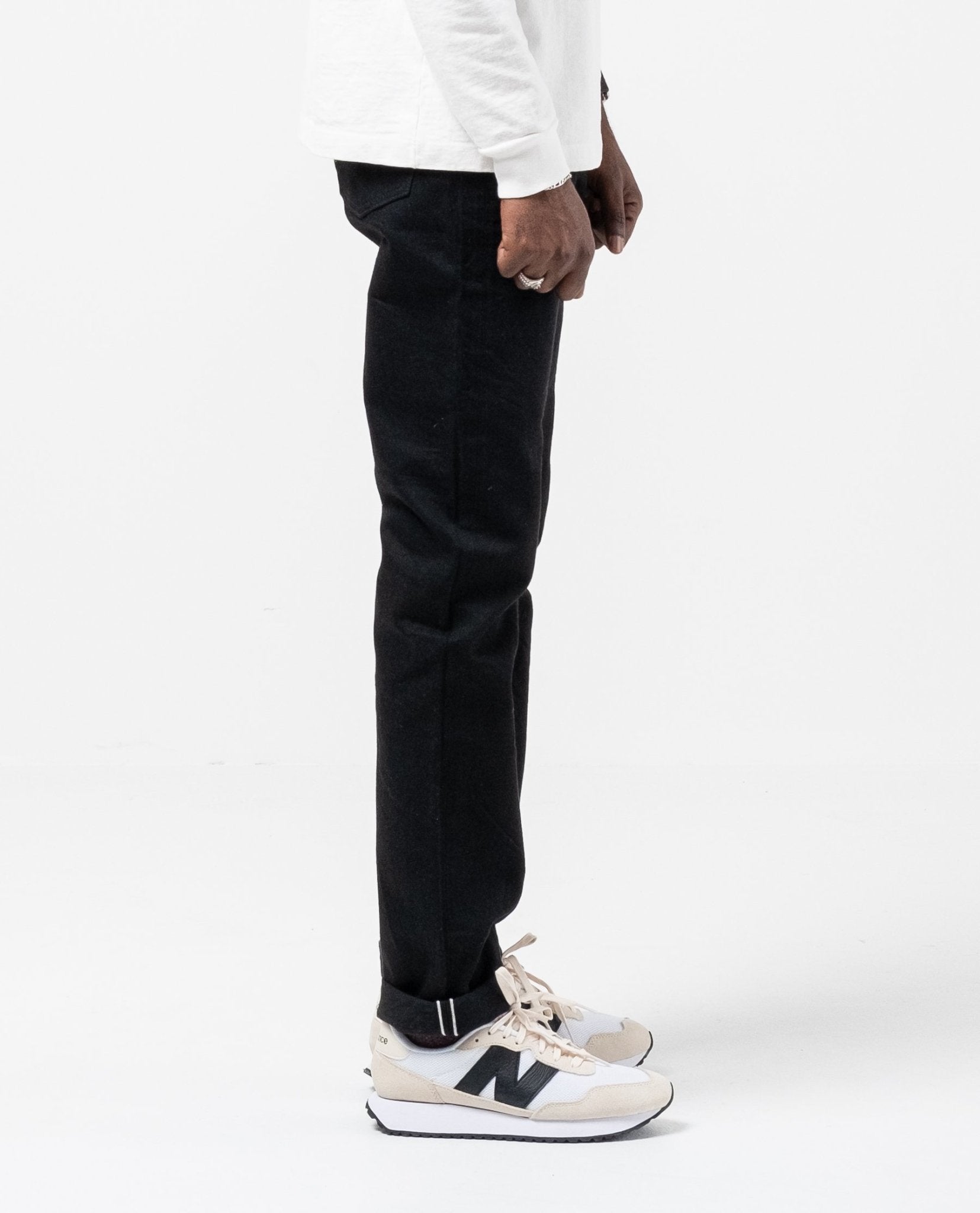 Raw 5 Pocket Black Denim Narrow Pallet Life Storyltä. Klassiset farkut, jotka on valmistettu pestystä 15 oz käsittelemättömästä denimiistä. Kyseessä on kapea malli, jossa on hieman korkeampi vyötärö ja kevyt kapenevuus polvesta alaspäin. Värjätty, kudottu, leikattu ja ommeltu Kojimassa, Japanissa.