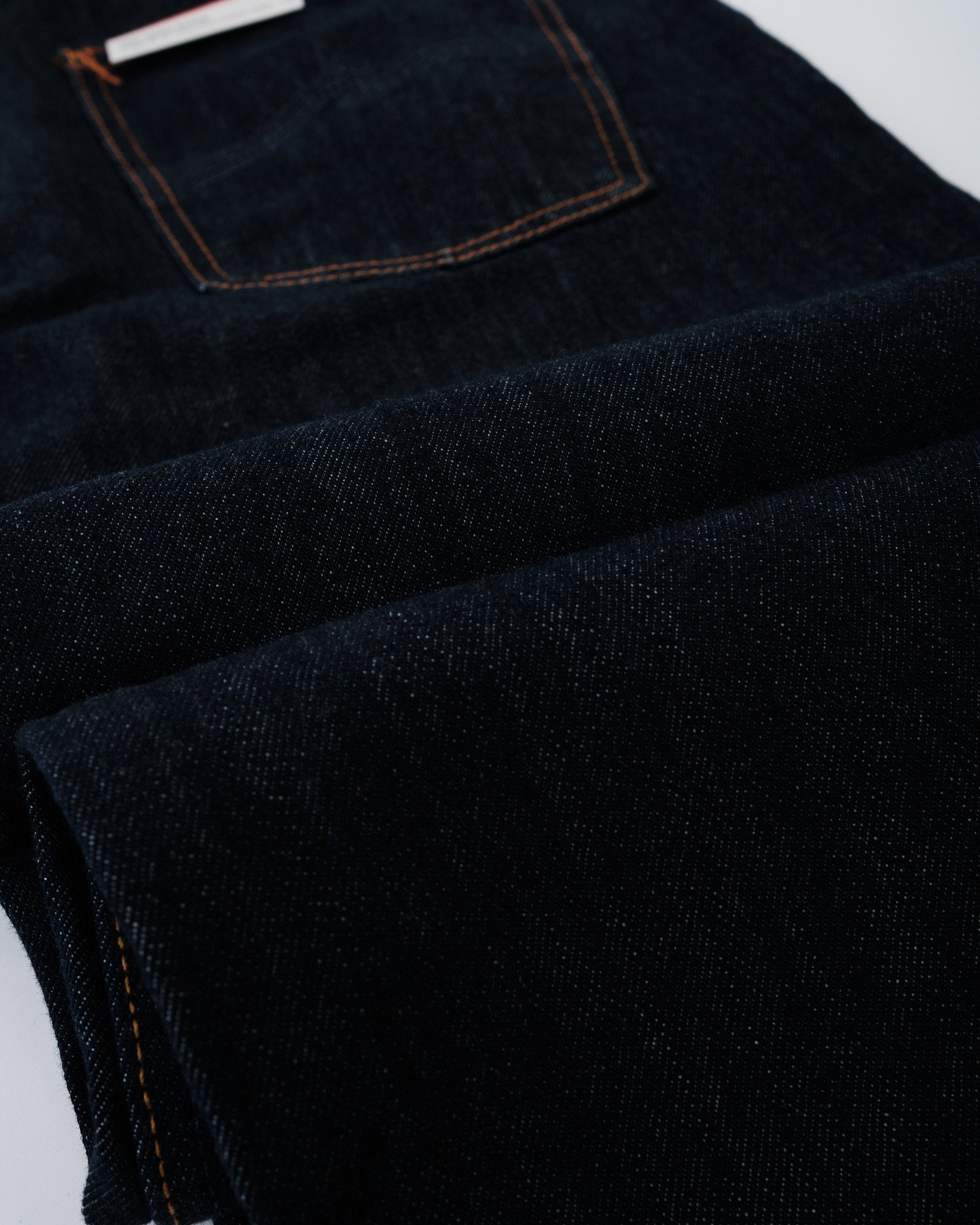 Innoittamana kuivan denimin yksittäisen kotipesun luonnollisesta kauneudesta, tässä parissa on syvän sininen pesu, joka vaihtuu tummansinisestä rikkaaseen, punertavaan siniseen. Valmistettu vintage-tyylisestä syvästä indigosinisestä denimistä, jossa on keskikokoinen slub-tekstuuri, pesu korostaa kankaan tekstuuria, muuttaen sen sileästä kauniisti epäsäännölliseksi.