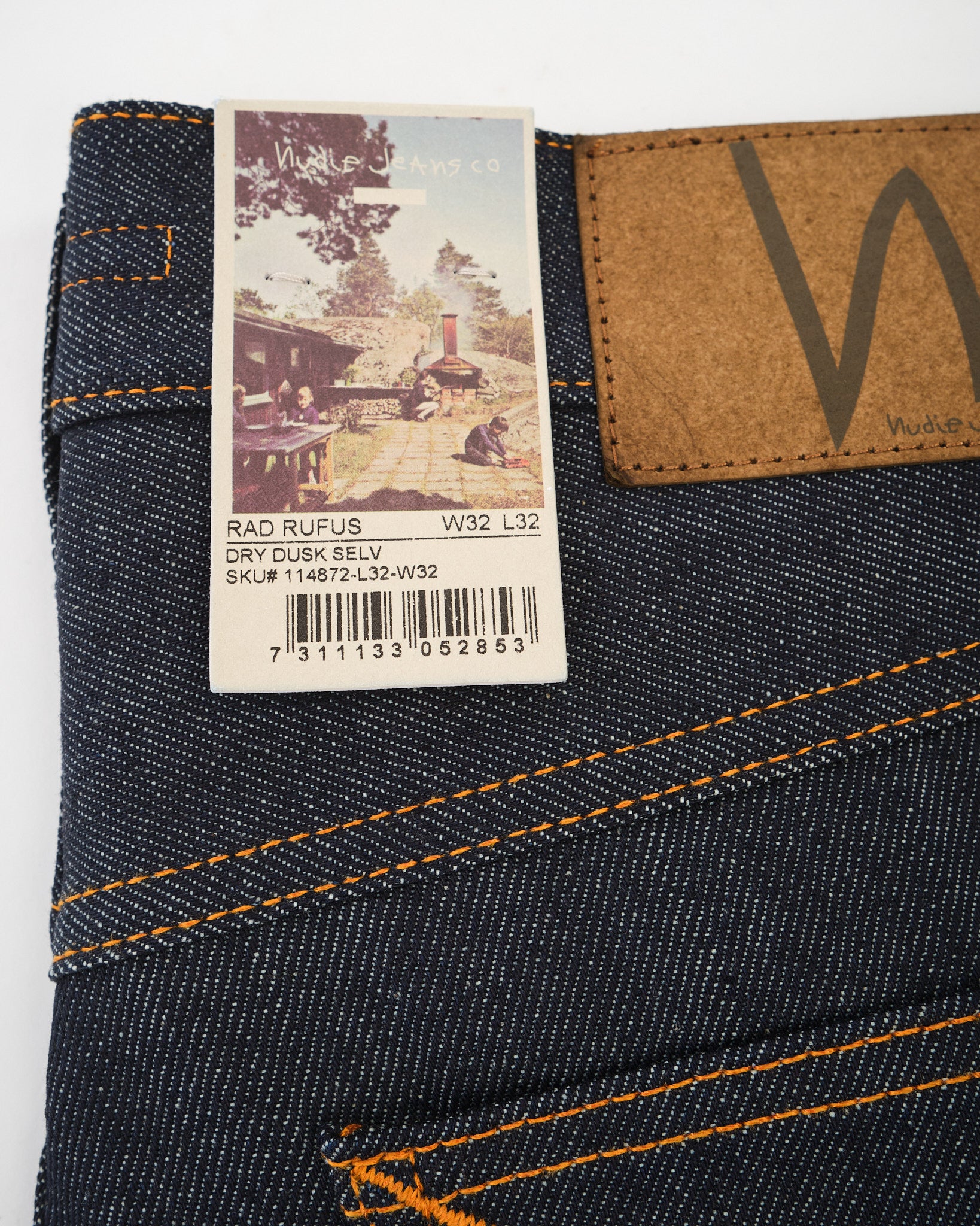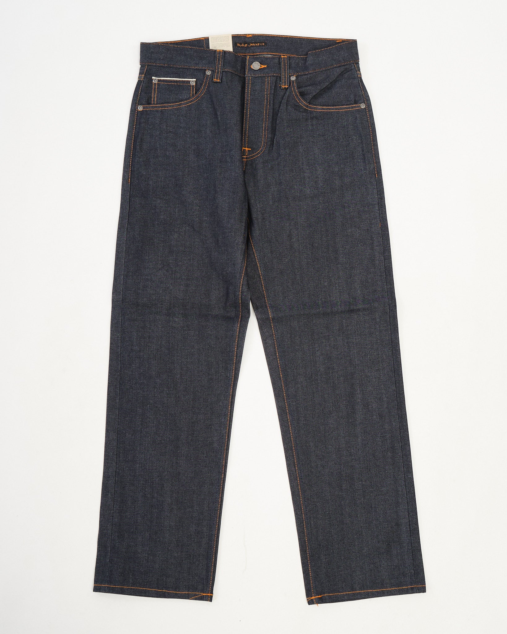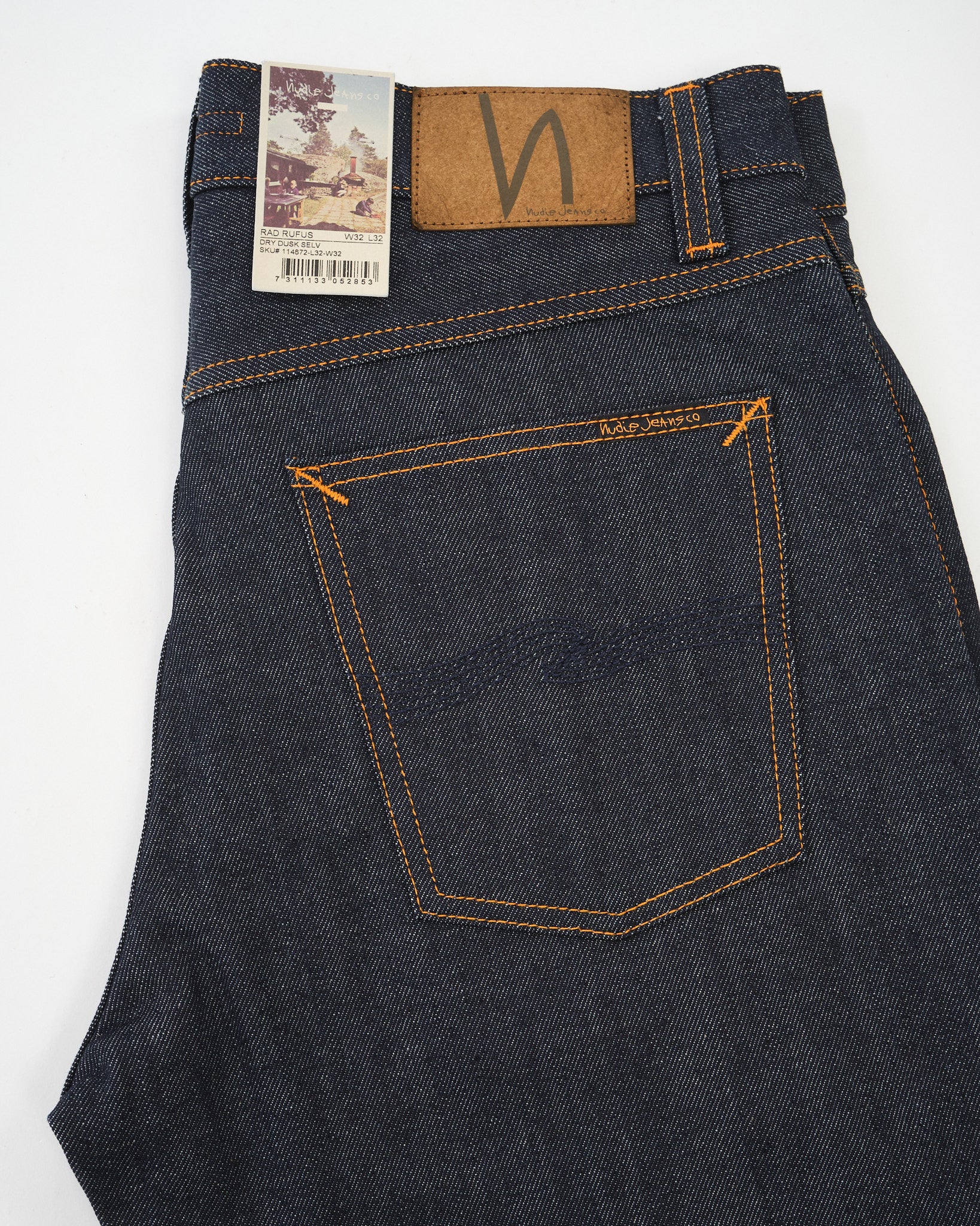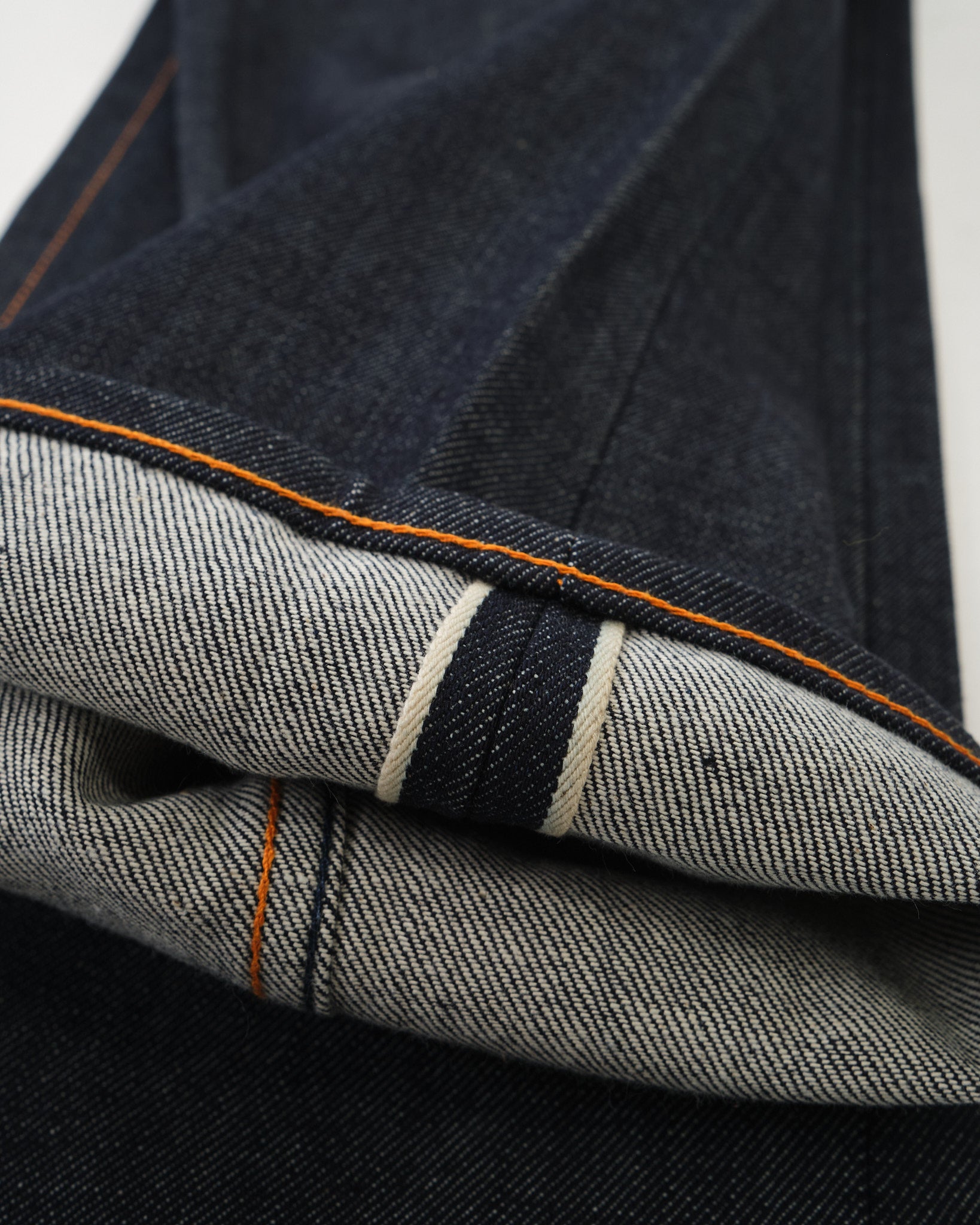 Suunniteltu pitkäaikaiseen käyttöön, kankaan selkeät pystysuorat twill-viivat parantavat sen ikääntymisprosessia, varmistaen uniikin haalistumismatkan ajan myötä. Allekirjoitus oranssi kontrastitikkaus erottuu denimistä, kun taas laivastonsininen takataskun kirjonta tulee näkyvämmäksi käytön myötä.
