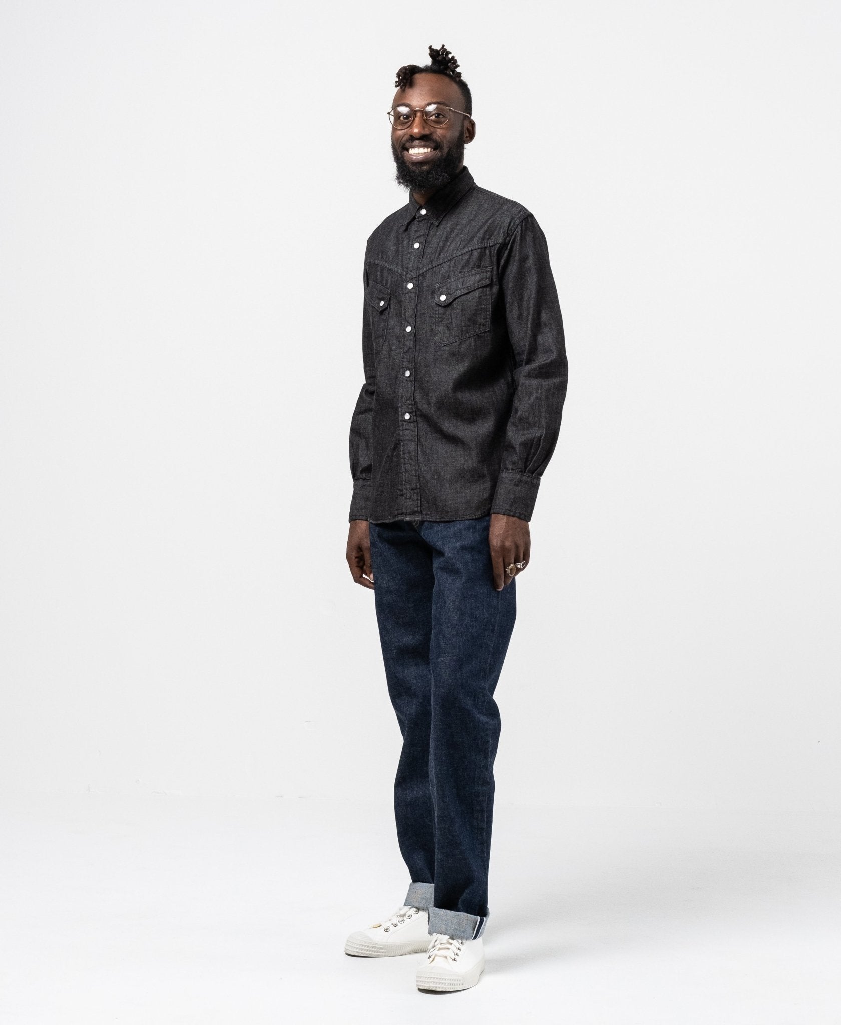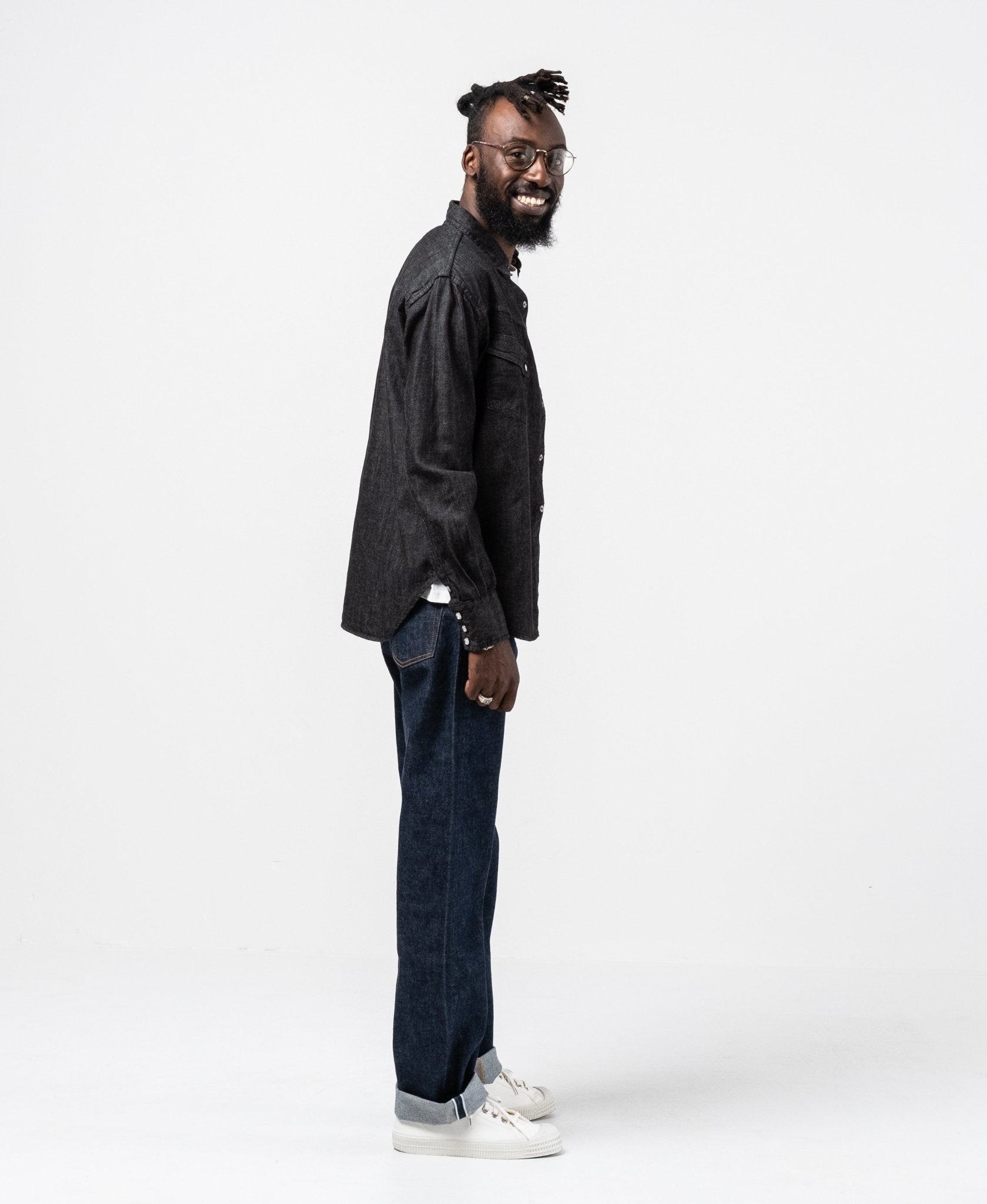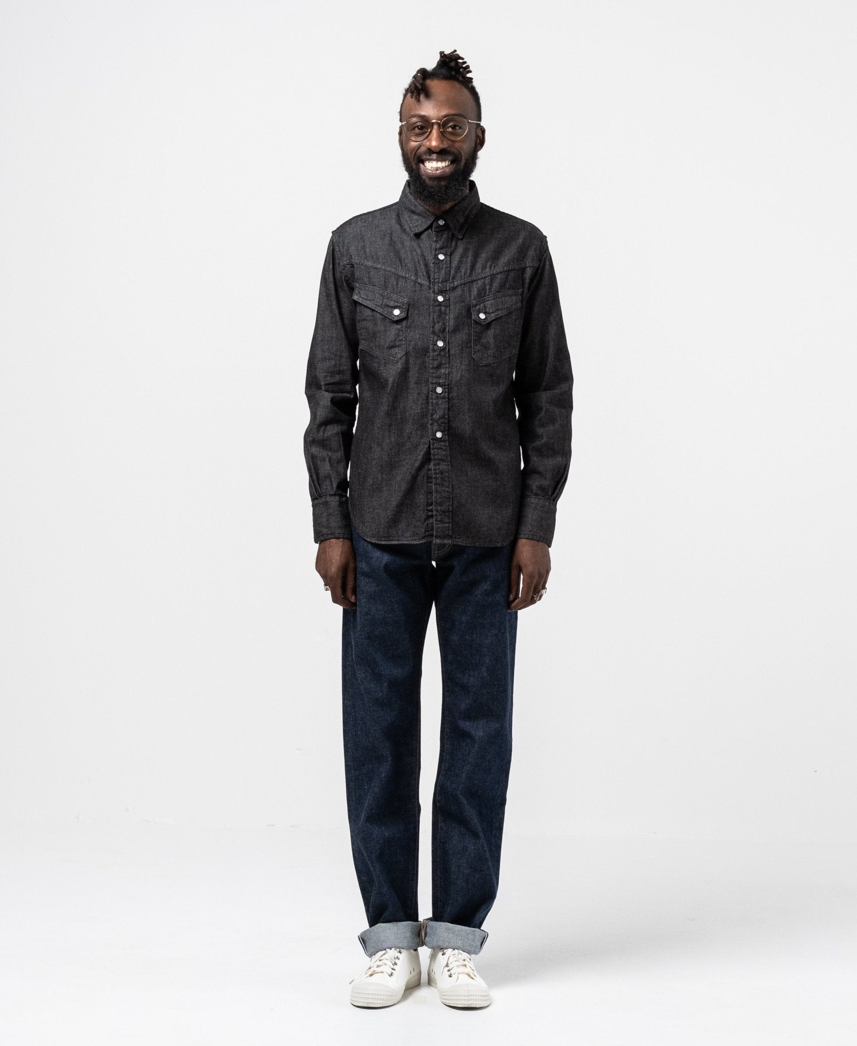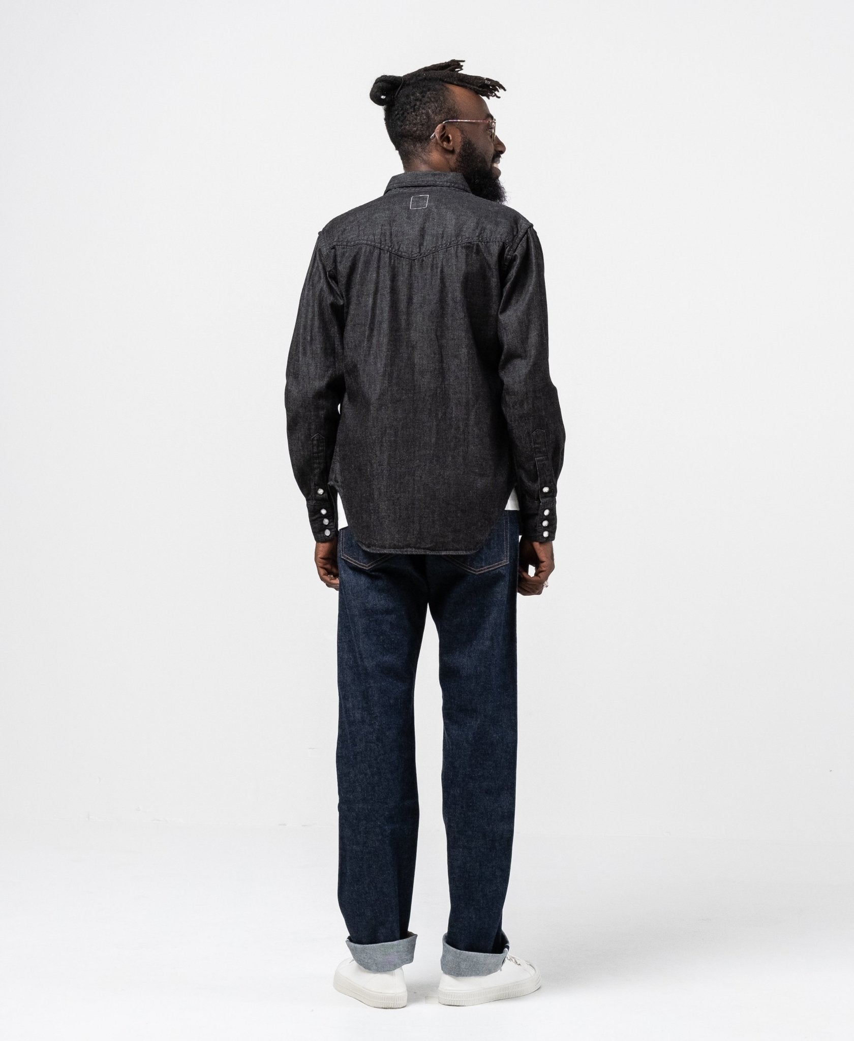 Ranchman-paita mustaa denimiä TCB:ltä. Tämä paita on saanut inspiraationsa 1940-luvun western-paidoista. Yksityiskohdat ovat hyvin lähellä alkuperäistä, mikä tekee siluetista hieman siistimmän kuin vintage-versiossa, ja siksi helppo yhdistää mihin tahansa tyyliin. Denim on valmistettu 8,5 unssista kalifornialaista puuvillaa, joka on kudottu hitaasti vanhalla kangaspuulla. Se on hieman kevyempi denim, jossa on joitakin epätasaisuuksia kankaassa. Valmistettu Japanissa.