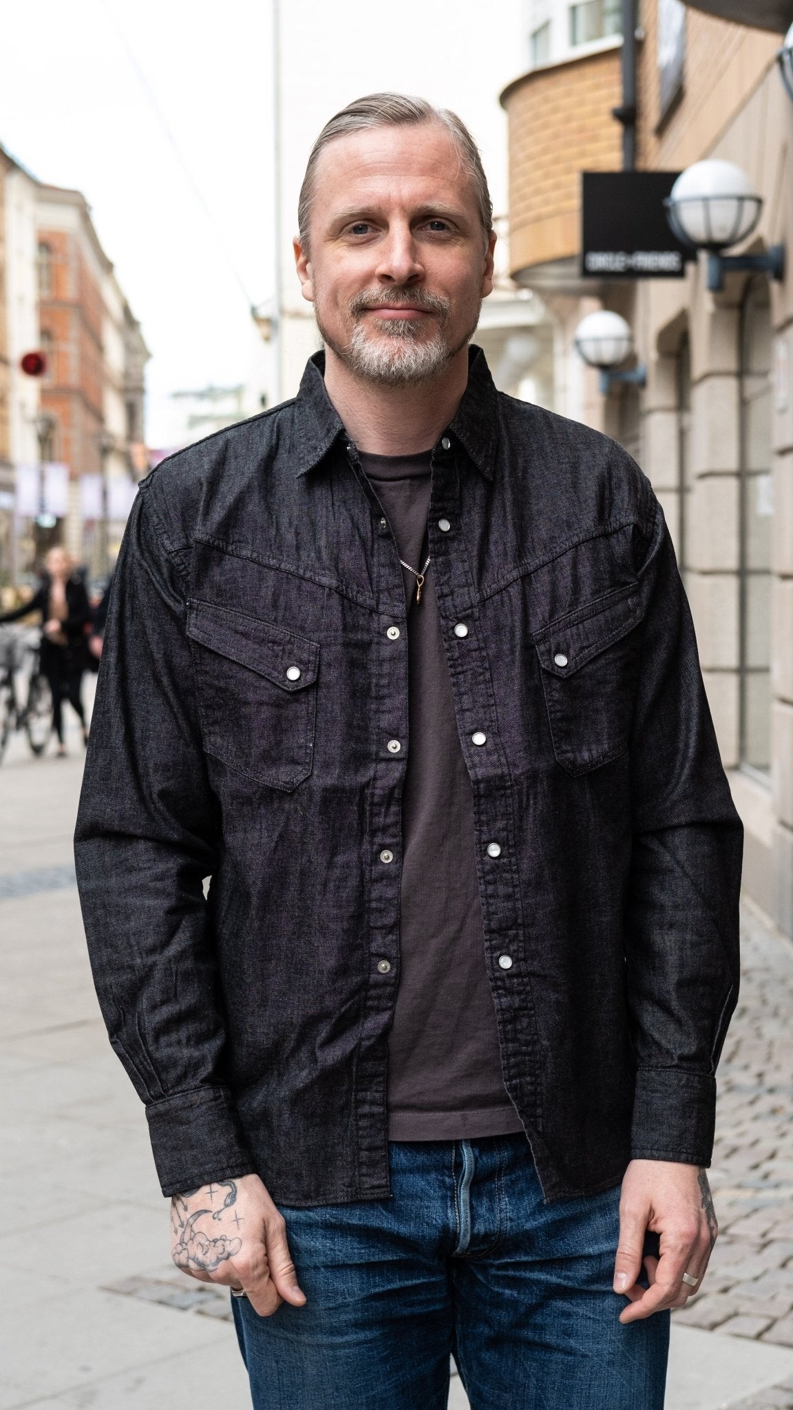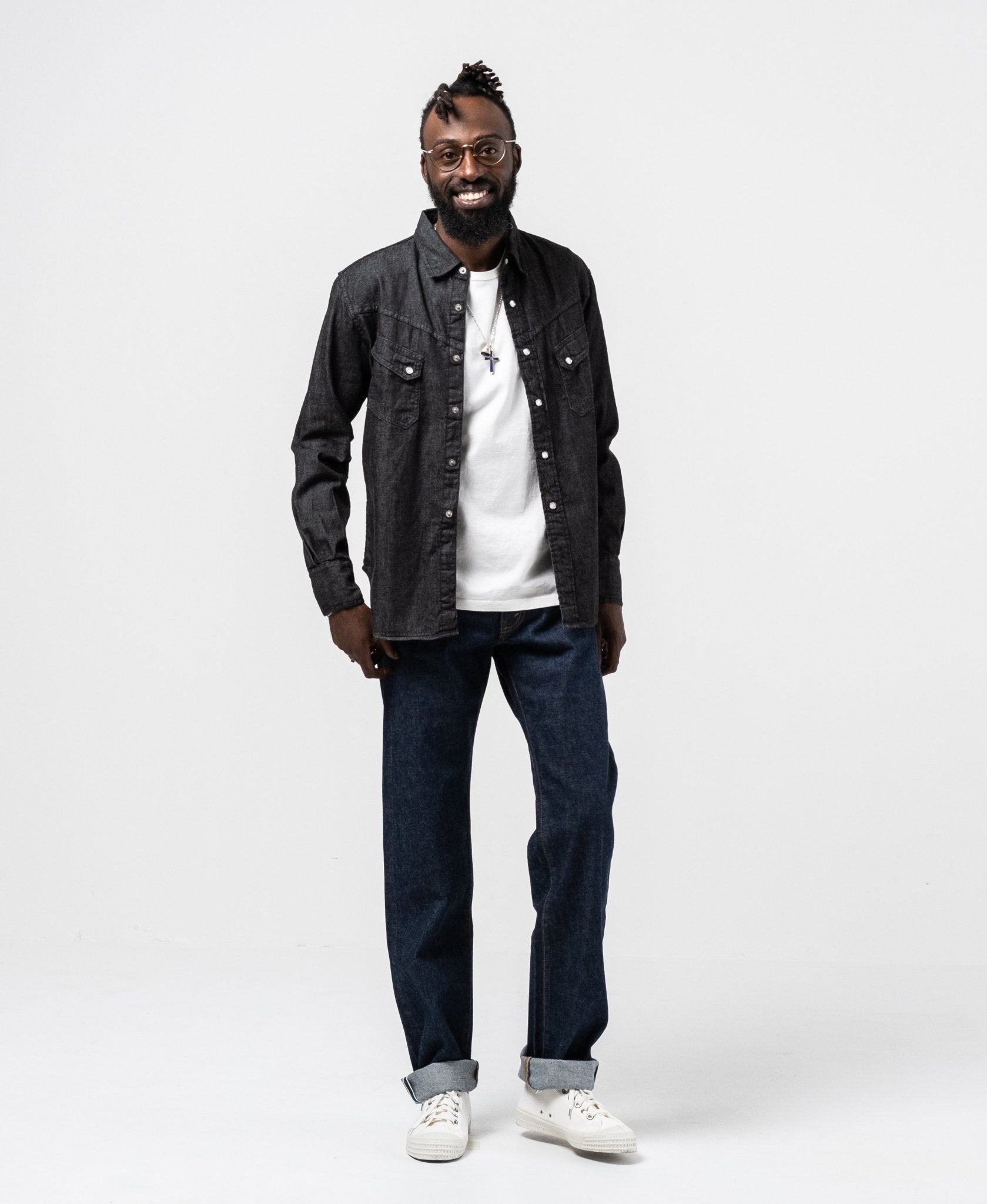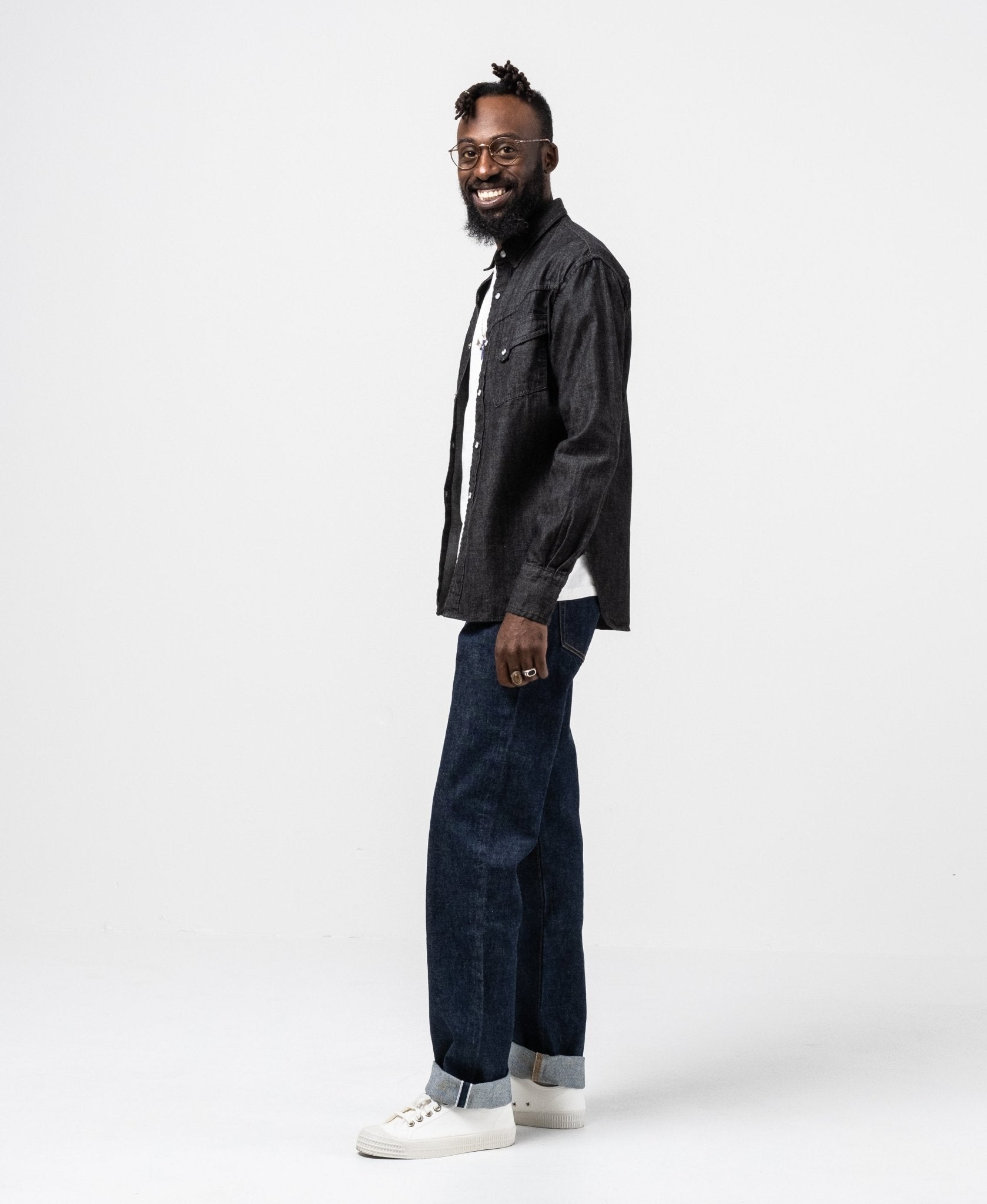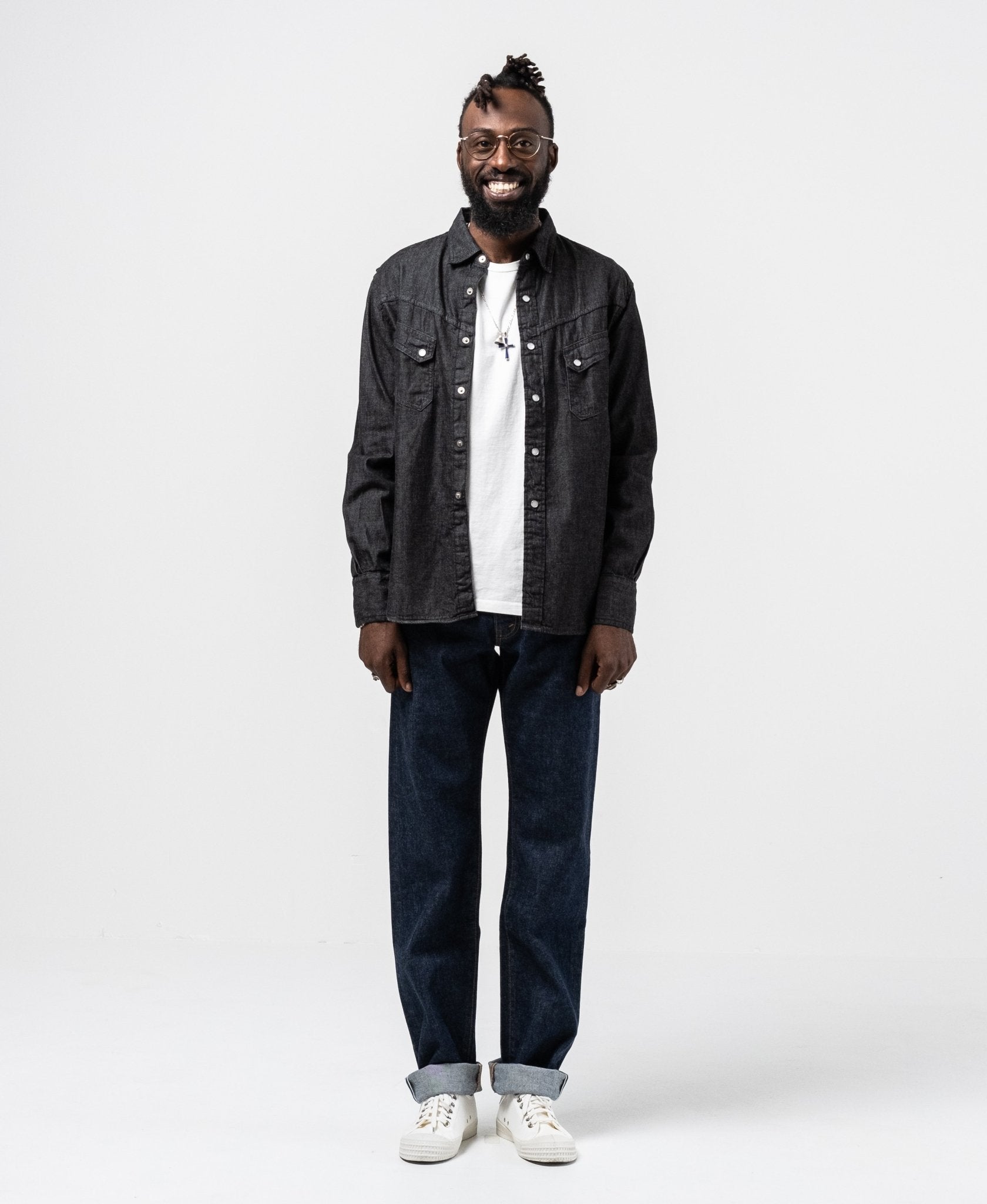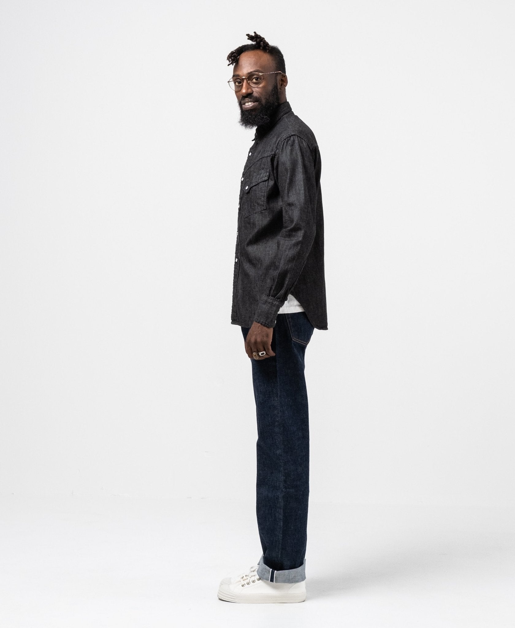 Ranchman-paita mustaa denimiä TCB:ltä. Tämä paita on saanut inspiraationsa 1940-luvun western-paidoista. Yksityiskohdat ovat hyvin lähellä alkuperäistä, mikä tekee siluetista hieman siistimmän kuin vintage-versiossa, ja siksi helppo yhdistää mihin tahansa tyyliin. Denim on valmistettu 8,5 unssista kalifornialaista puuvillaa, joka on kudottu hitaasti vanhalla kangaspuulla. Se on hieman kevyempi denim, jossa on joitakin epätasaisuuksia kankaassa. Valmistettu Japanissa.