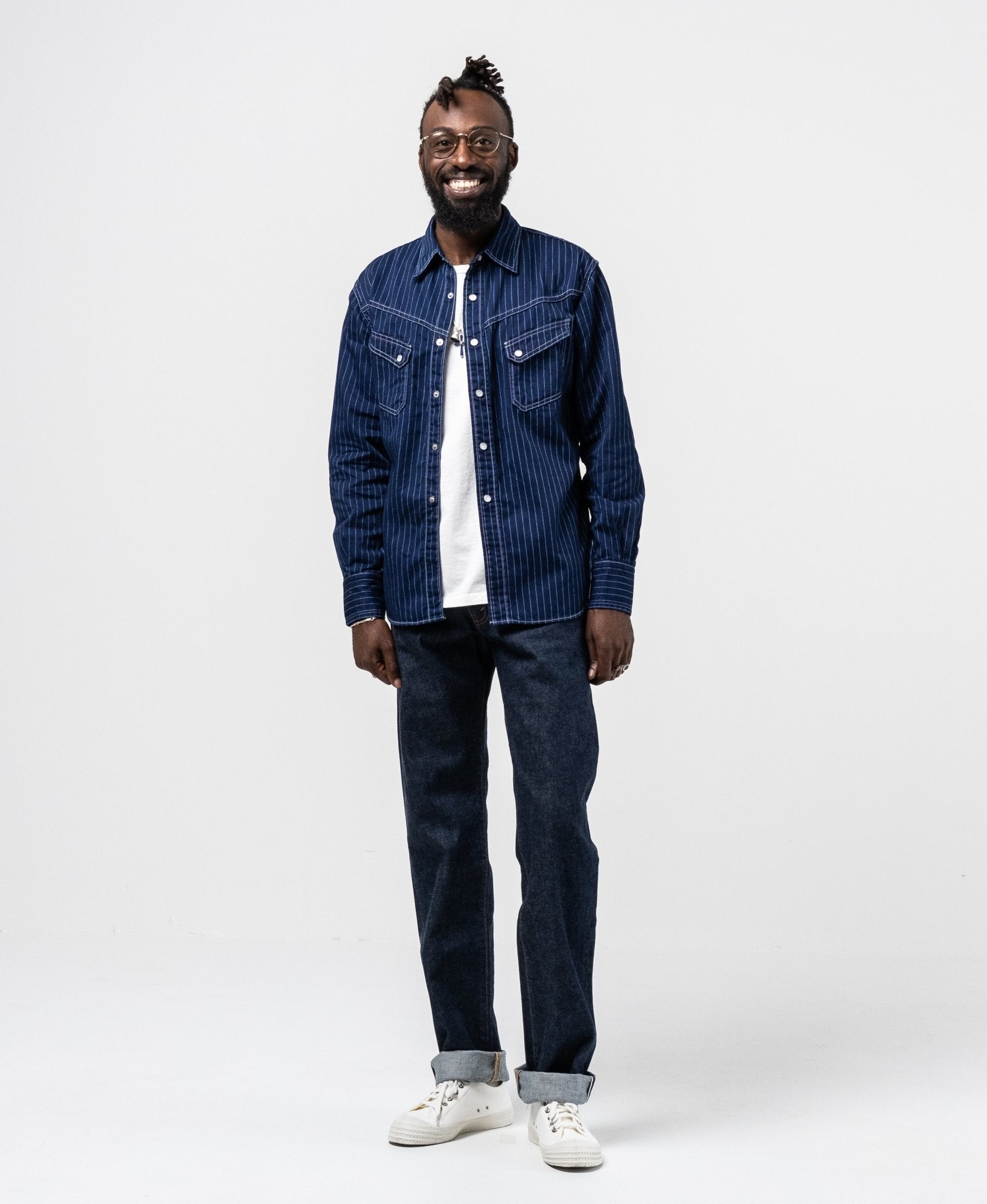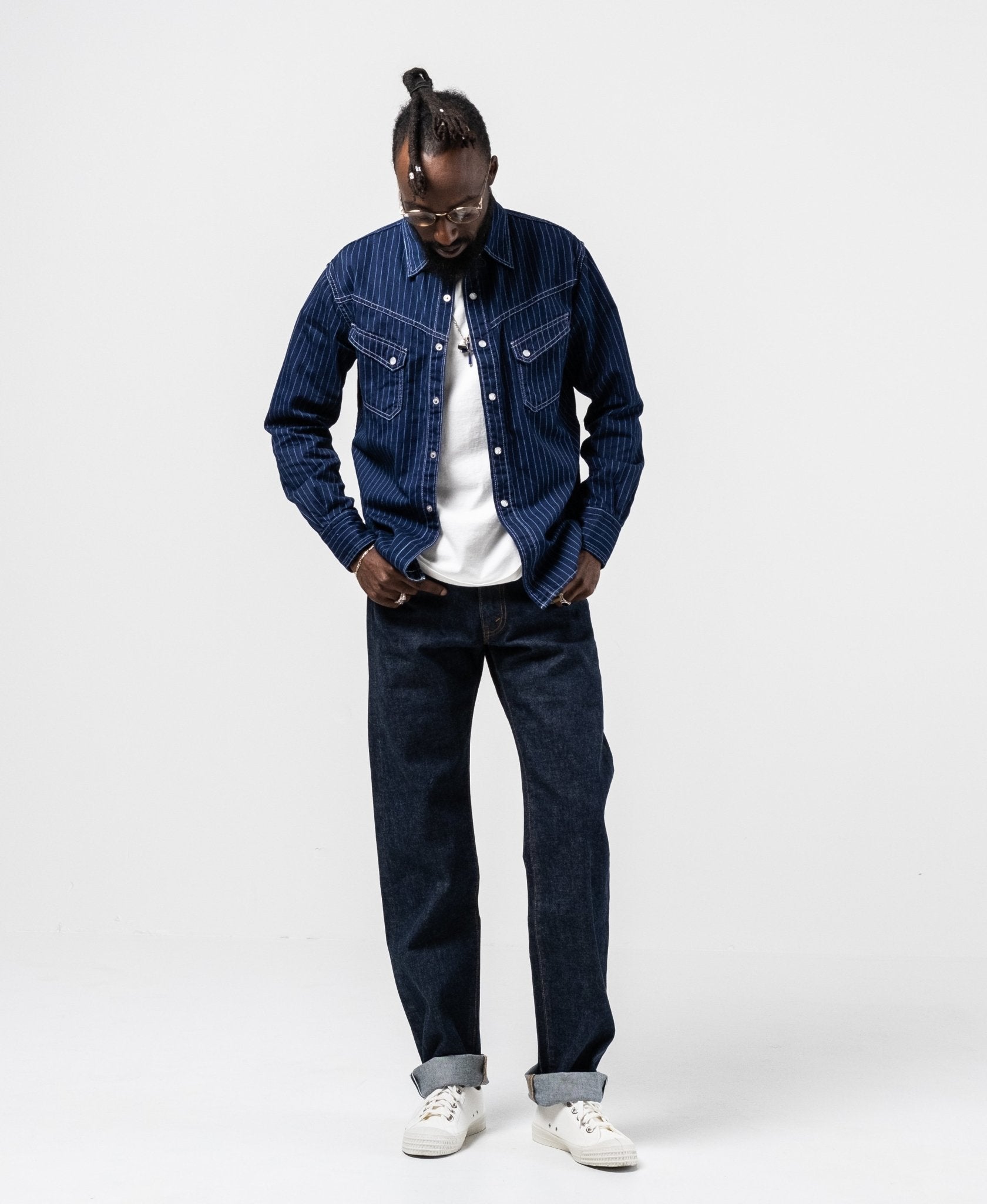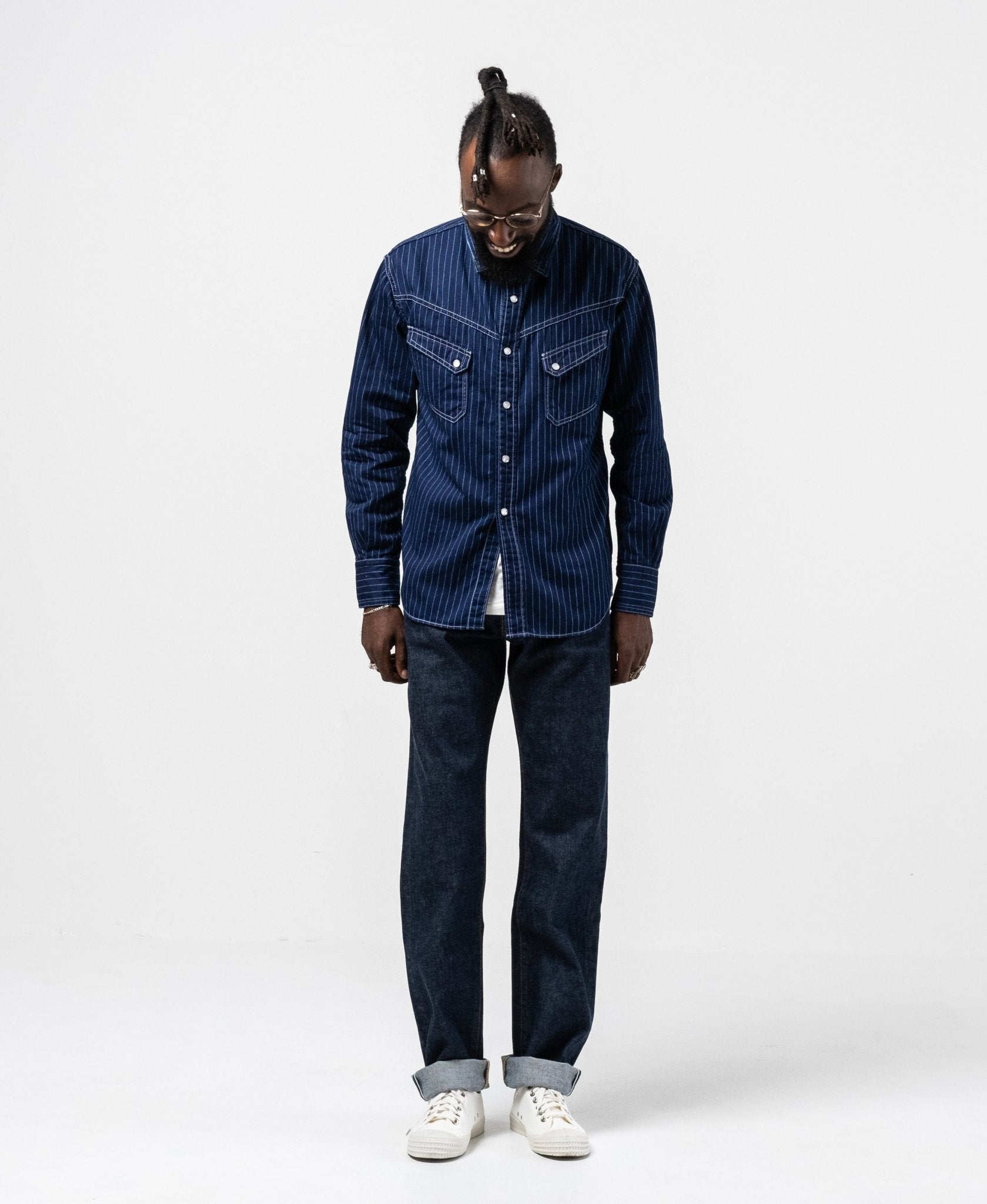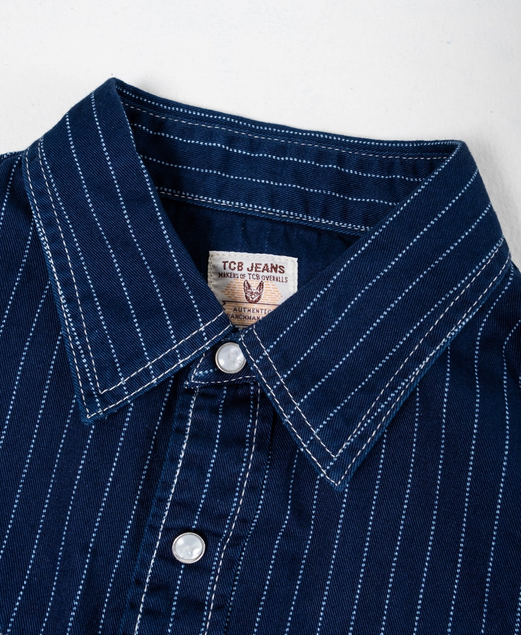 Ranchman Shirt Blue Wabash TCB:ltä. Tämä paita on saanut inspiraationsa 1940-luvun lännenpaidoista. Yksityiskohdat ovat hyvin lähellä alkuperäistä, mikä tekee siluetista hieman siistimmän kuin vintage-versiossa, ja siksi helppo yhdistää mihin tahansa tyyliin. Denimi on valmistettu 8,5 unssista kalifornialaista puuvillaa, joka on kudottu hitaasti vanhalla kangaspuilla. Se on hieman kevyempi denim, jossa on joitakin epätasaisuuksia kankaassa. Valmistettu Japanissa.