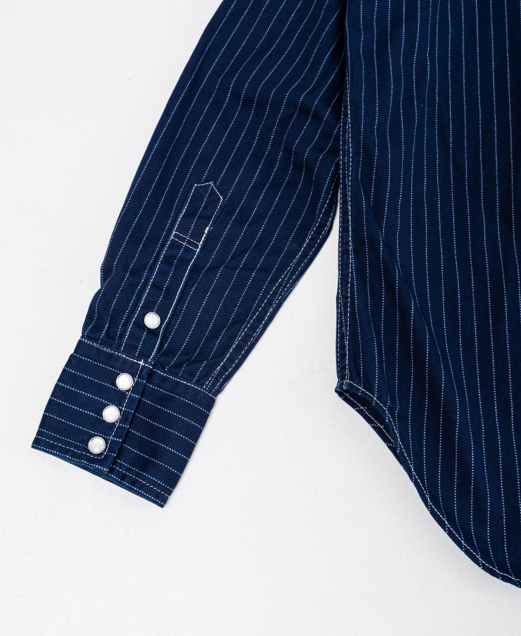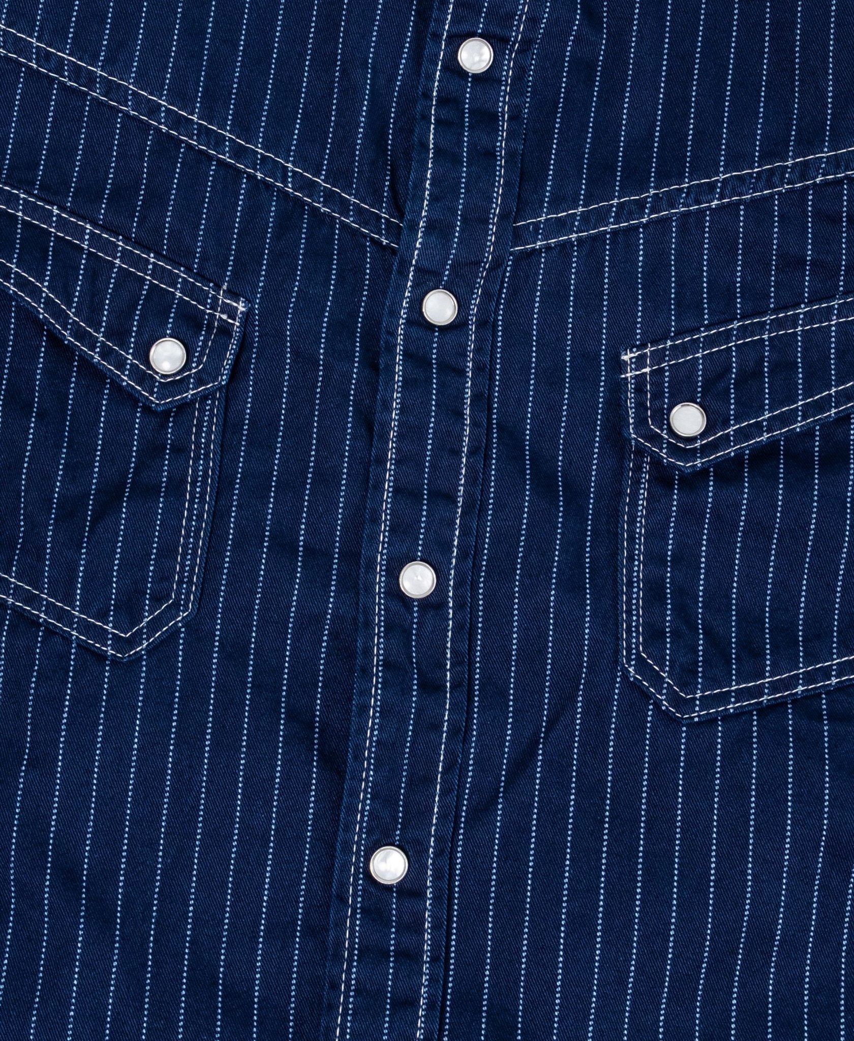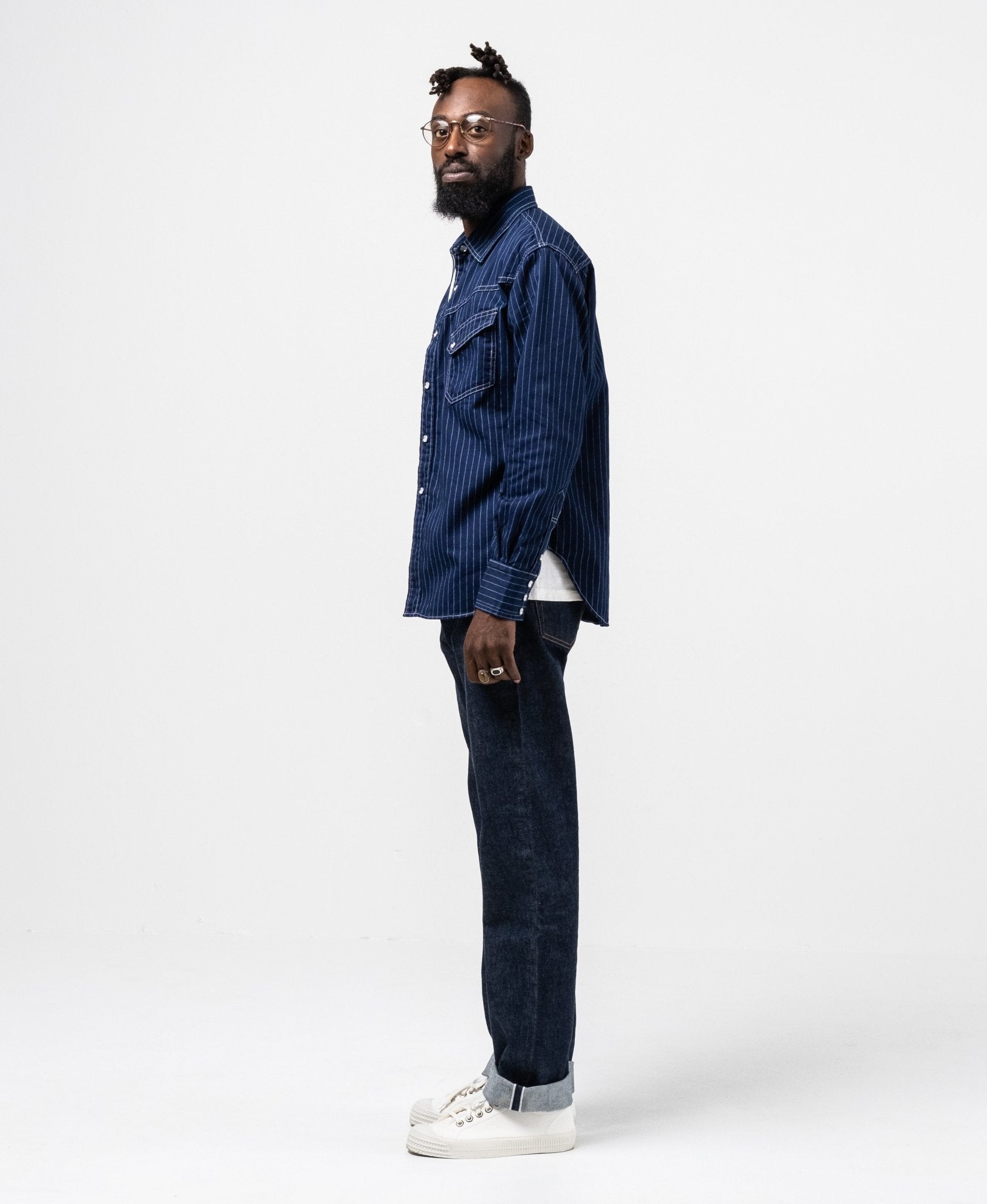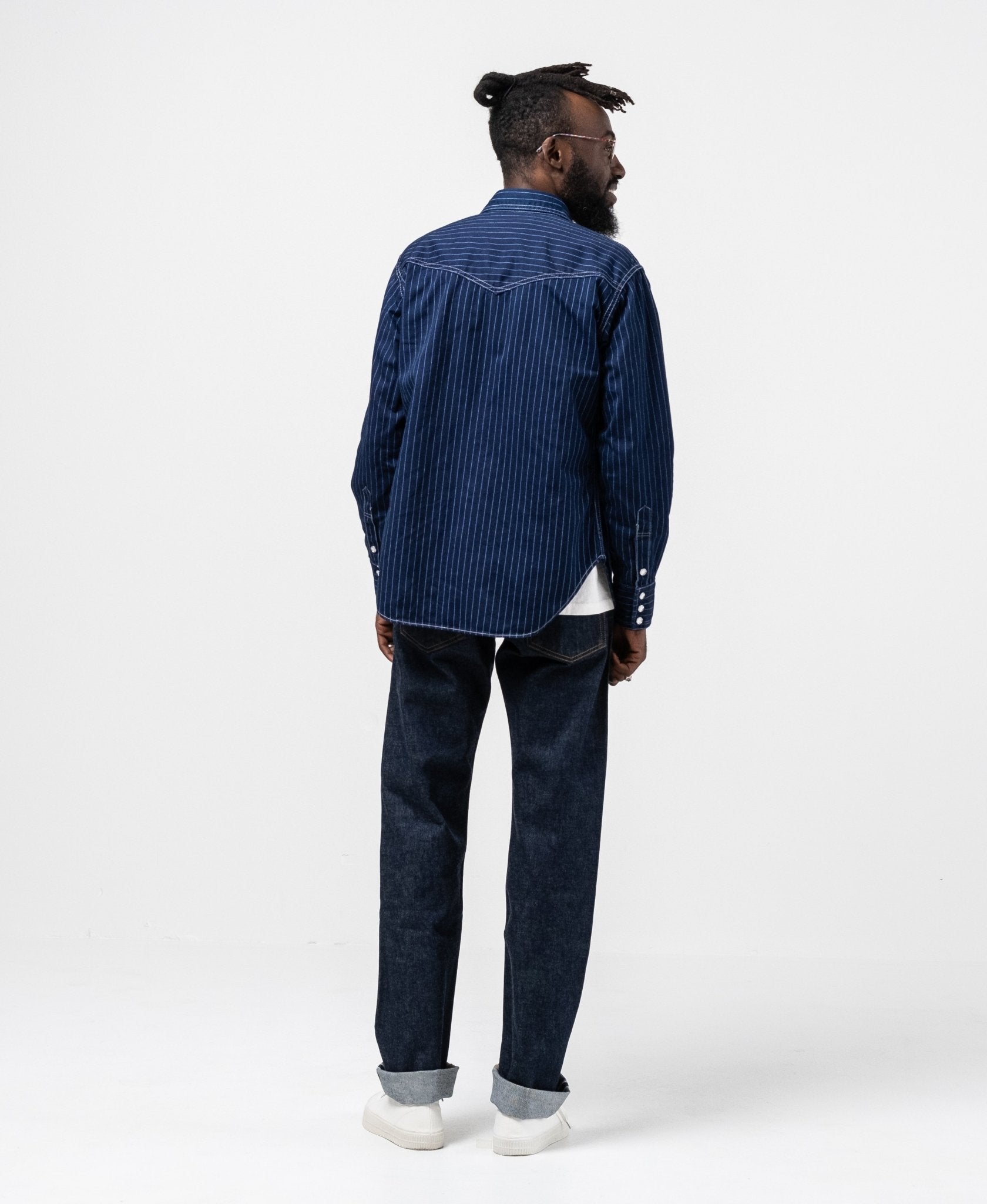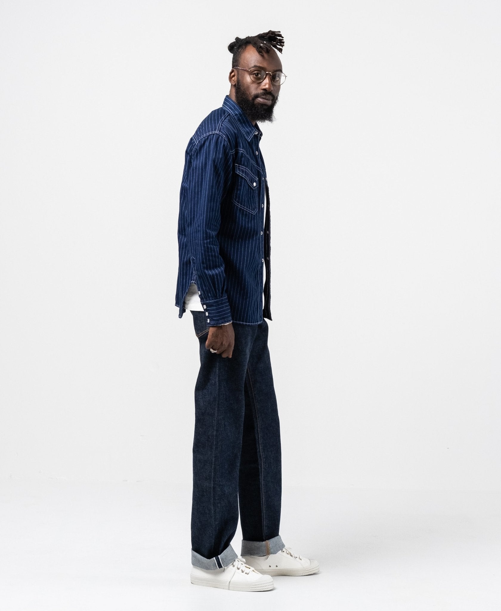 Ranchman Shirt Blue Wabash TCB:ltä. Tämä paita on saanut inspiraationsa 1940-luvun lännenpaidoista. Yksityiskohdat ovat hyvin lähellä alkuperäistä, mikä tekee siluetista hieman siistimmän kuin vintage-versiossa, ja siksi helppo yhdistää mihin tahansa tyyliin. Denimi on valmistettu 8,5 unssista kalifornialaista puuvillaa, joka on kudottu hitaasti vanhalla kangaspuilla. Se on hieman kevyempi denim, jossa on joitakin epätasaisuuksia kankaassa. Valmistettu Japanissa.