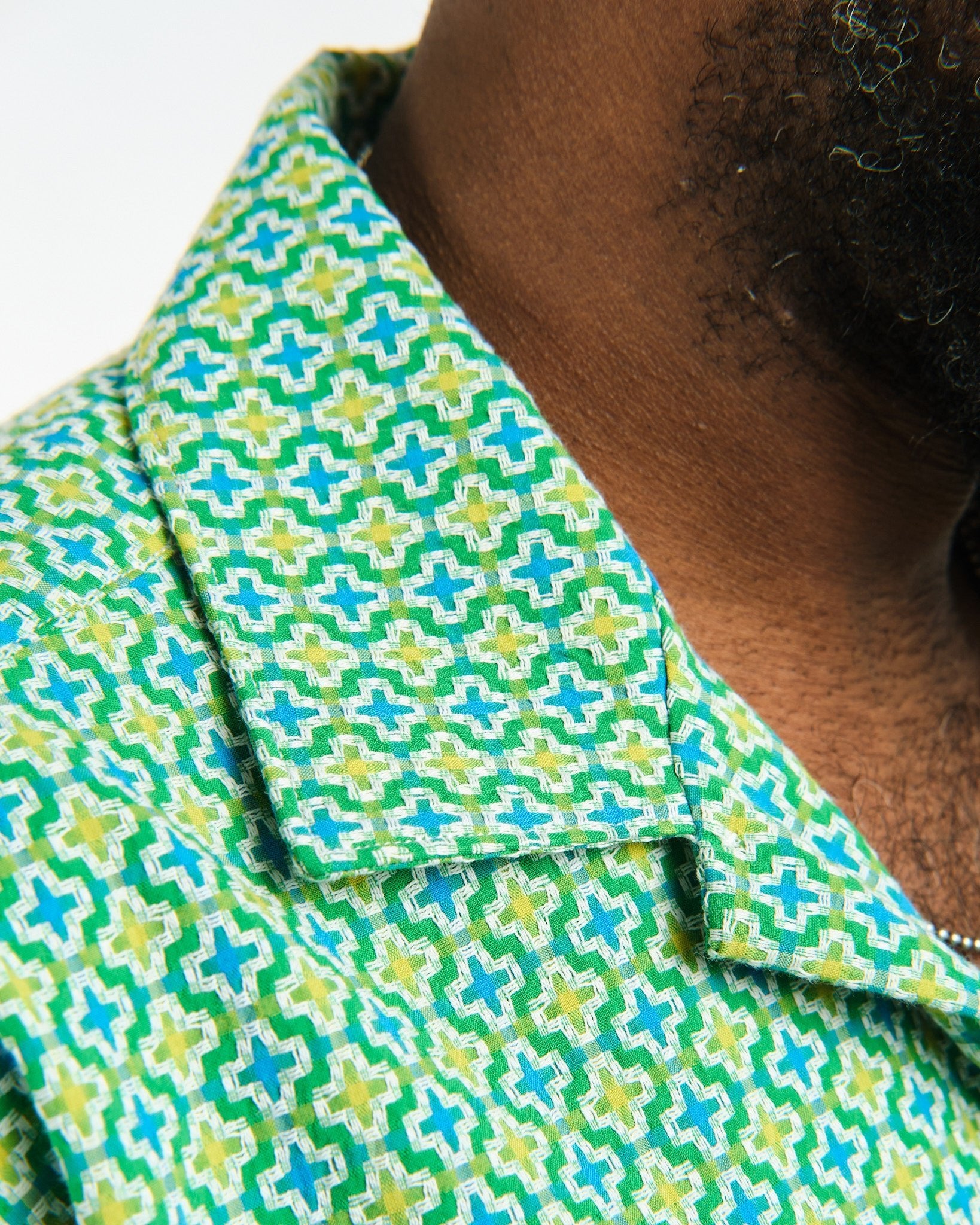 Kohota rentoa tyyliäsi vaivattoman viileällä ja vintage-henkisellä Beach Shirt Green Summer Ready Jacquardilla Gitman Vintagelta. 100% puuvillasta valmistettu ja Yhdysvalloissa tehty mukava ja monikäyttöinen paita on täydellinen rentoihin tilaisuuksiin ja jokapäiväiseen käyttöön, tehden siitä ihanteellisen lisän kesävaatekaappiisi.