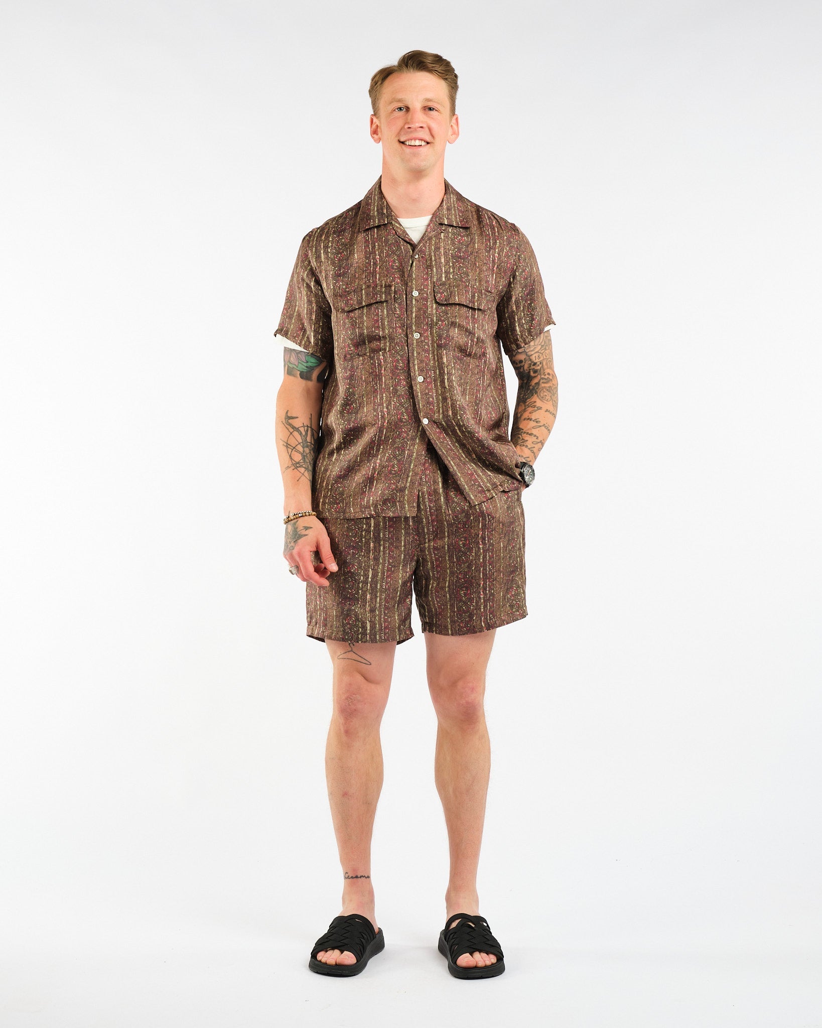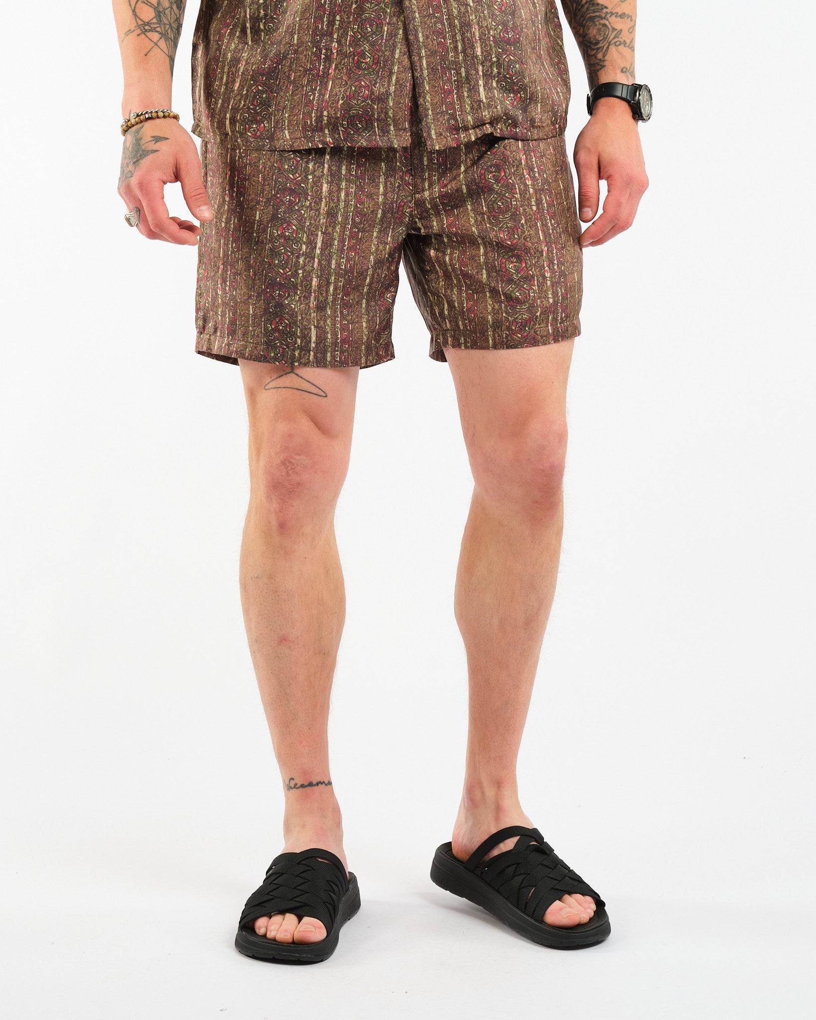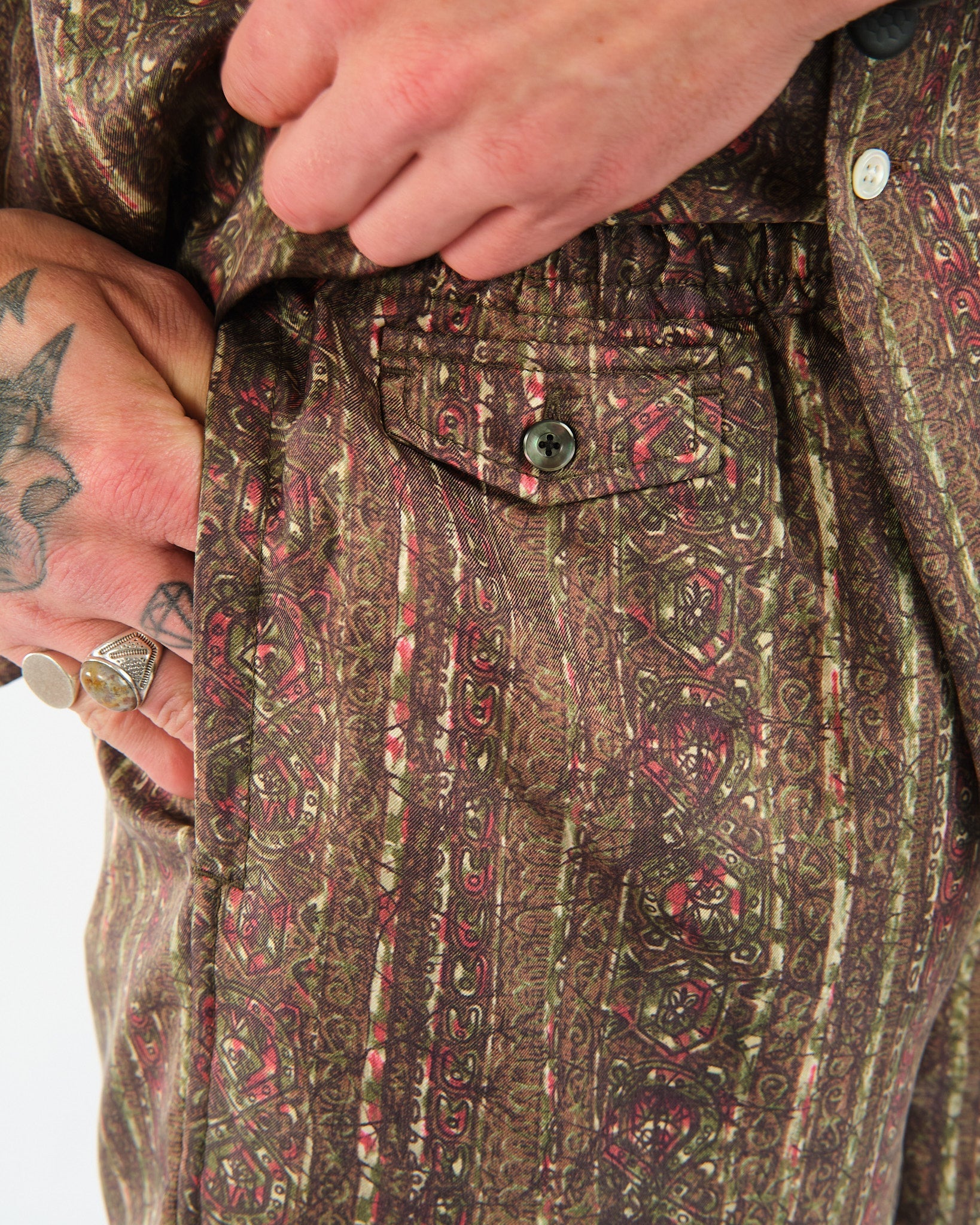 Astu vaivattomaan tyyliin Beams Plus -merkin Beach Shortseilla Silk Batik Print Olive -kuosissa. Vintage-esineistä inspiroituneina nämä shortsit ovat todiste Tokiossa sijaitsevan merkin sitoutumisesta vaatteiden valmistukseen, jotka säilyttävät viileän, rennon vetovoimansa vuosien ajan. Japanissa valmistetut 100% silkkihousut tarjoavat ylellistä mukavuutta ja ainutlaatuisen estetiikan. Niissä on joustava vyötärö mukavaa istuvuutta varten, napillinen kolikkotasku, eteen viistot taskut ja takana napilliset läppä- ja avotaskut käytännöllisyyden vuoksi.