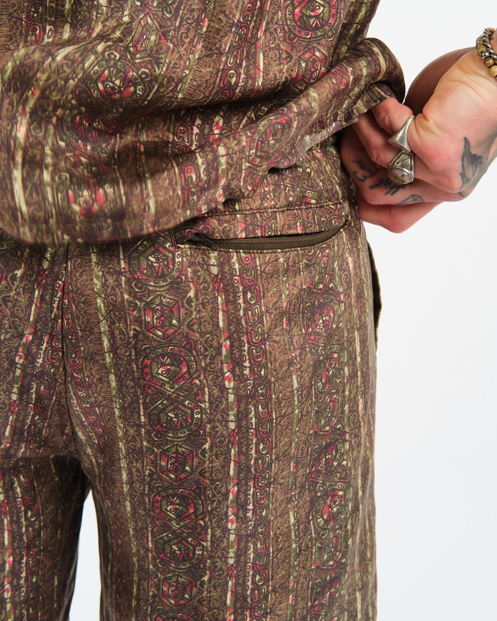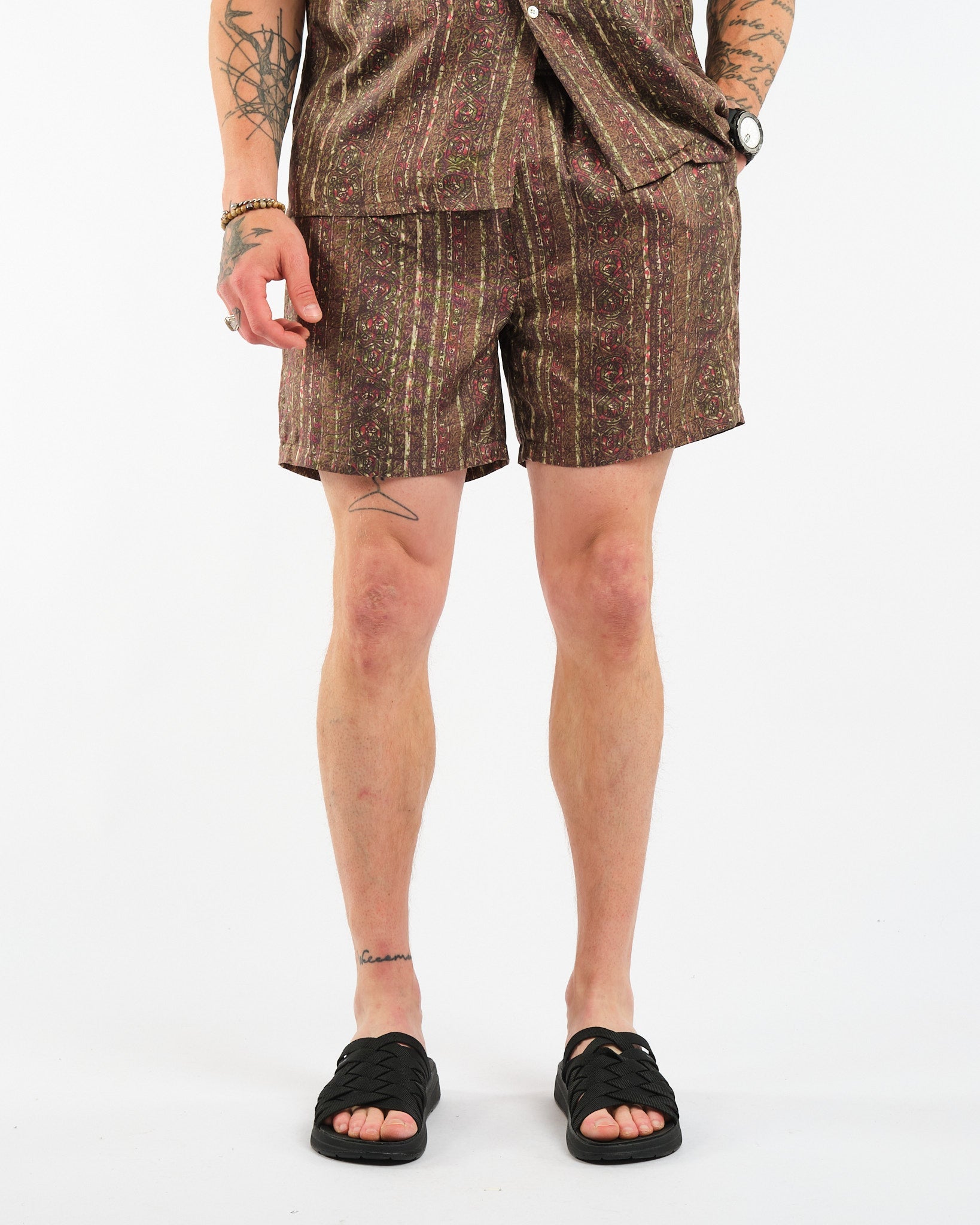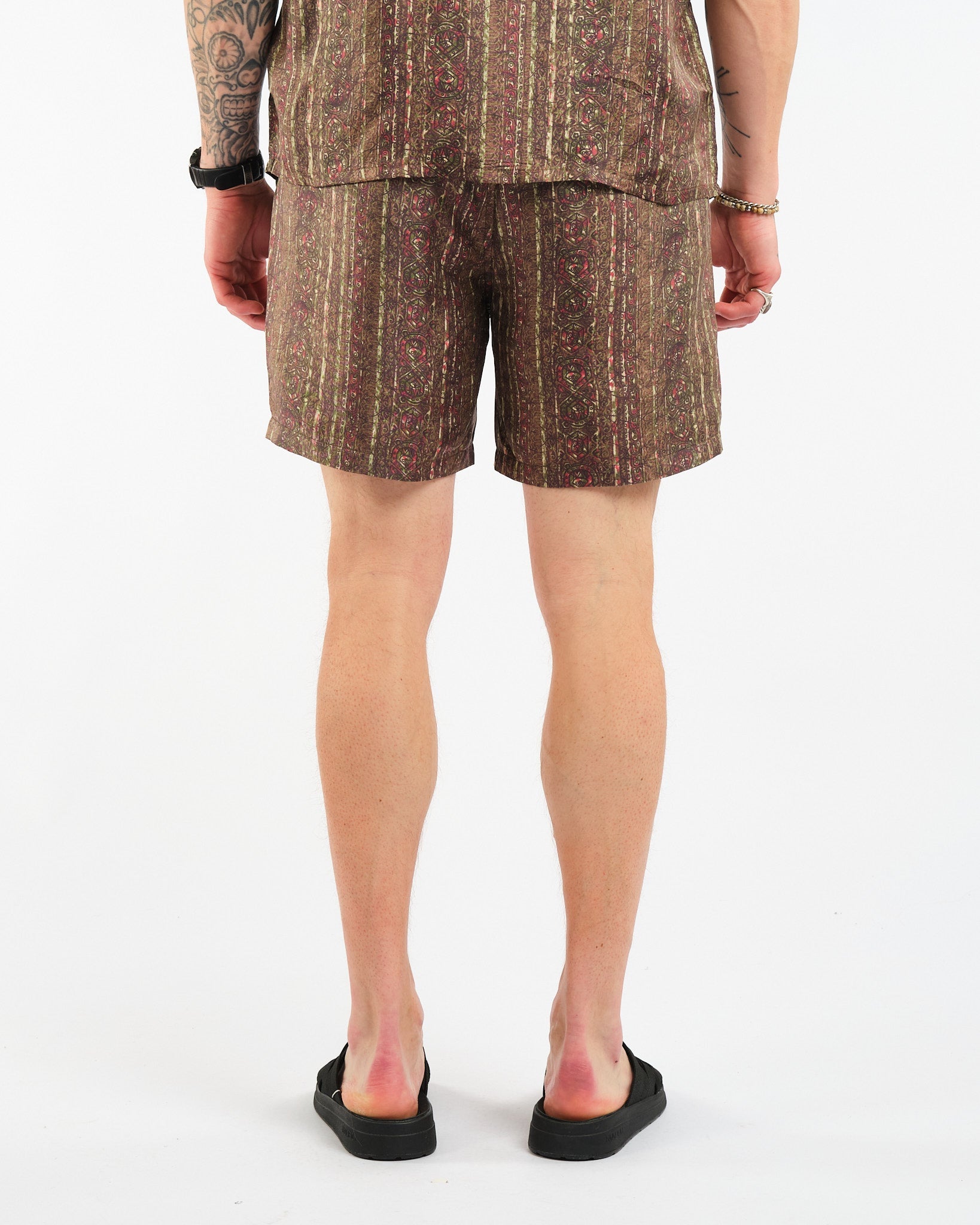 Astu vaivattomaan tyyliin Beams Plus -merkin Beach Shortseilla Silk Batik Print Olive -kuosissa. Vintage-esineistä inspiroituneina nämä shortsit ovat todiste Tokiossa sijaitsevan merkin sitoutumisesta vaatteiden valmistukseen, jotka säilyttävät viileän, rennon vetovoimansa vuosien ajan. Japanissa valmistetut 100% silkkihousut tarjoavat ylellistä mukavuutta ja ainutlaatuisen estetiikan. Niissä on joustava vyötärö mukavaa istuvuutta varten, napillinen kolikkotasku, eteen viistot taskut ja takana napilliset läppä- ja avotaskut käytännöllisyyden vuoksi.