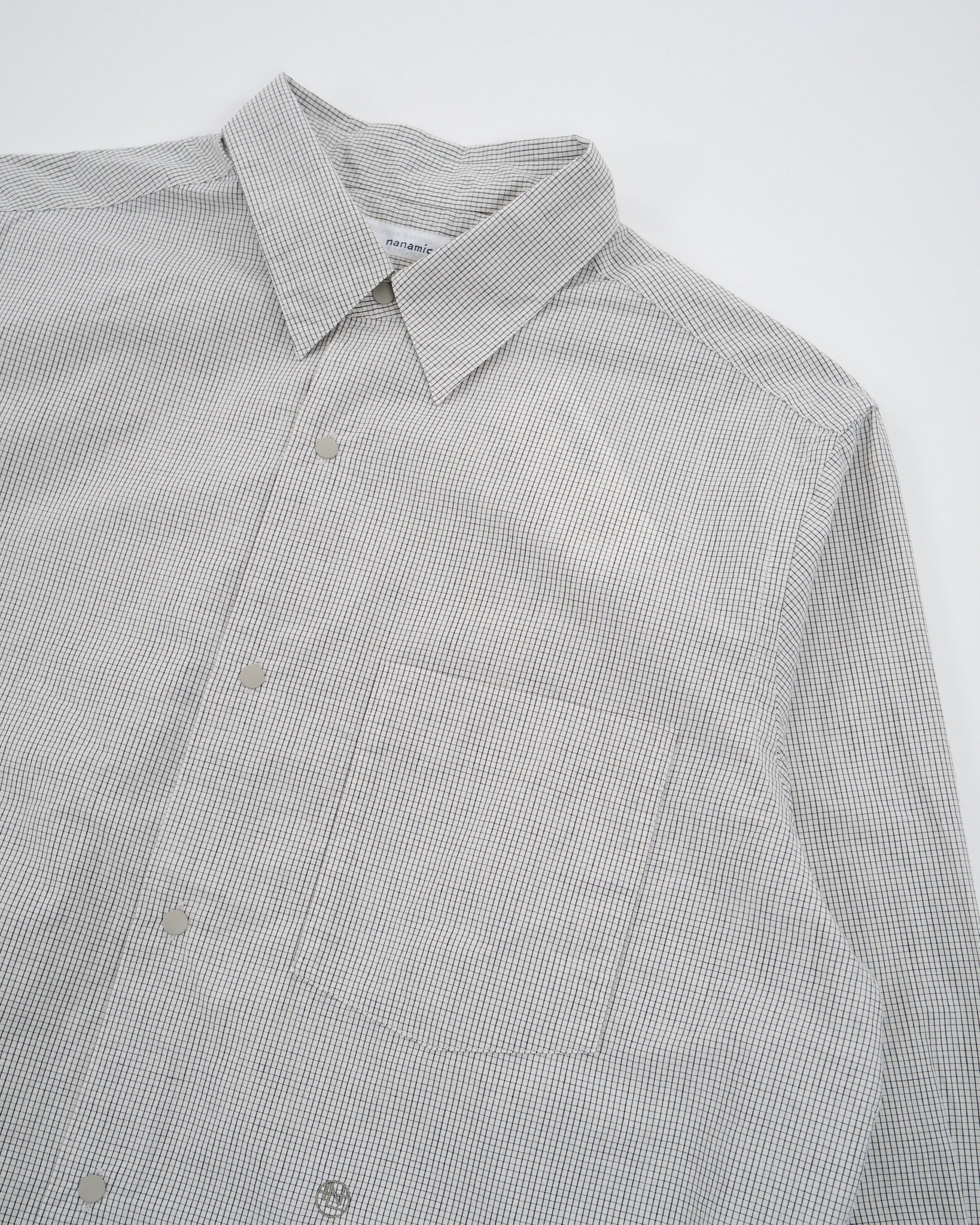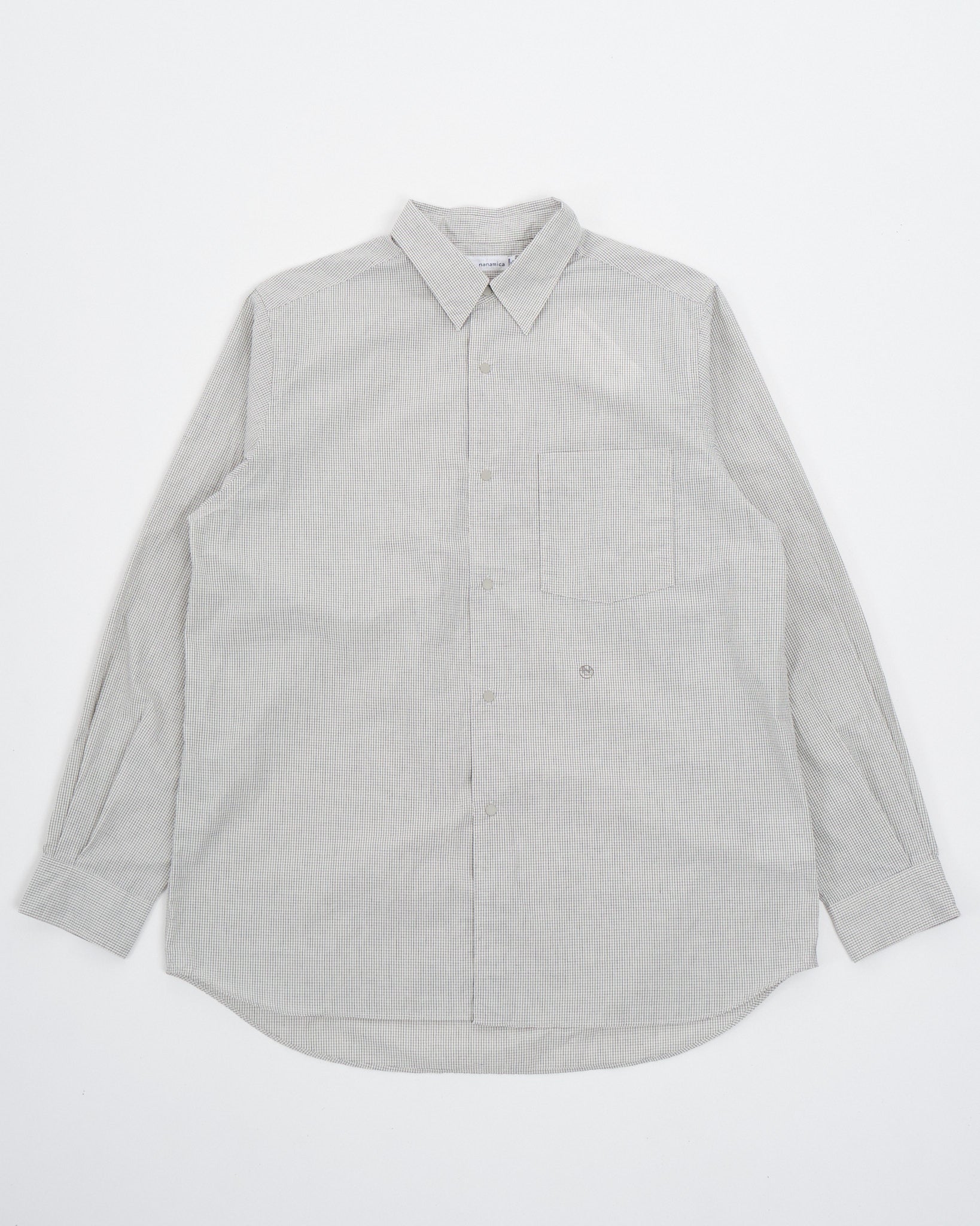 Astu hienostuneeseen tyylikkyyteen Nanamican Regular Collar Wind Shirt -paidalla, joka on rauhallisessa Natural-sävyssä. Paita yhdistää perinteisen viehätyksen nykyaikaiseen eleganssiin. Sen ainutlaatuinen broadcloth-kangas, joka on valmistettu peittävällä ydinsäikeellä, on harkitusti suunniteltu puuvillan ympäröimänä polyesteriytimellä. Verrattuna tavanomaiseen SUGS307-malliin, se tarjoaa kevyemmän kangastekstuurin ja tarjoaa noin yhden koon kapeamman siluetin. Paita koreilee klassisella graafisella ruutukuosilla, joka hienovaraisesti lisää sen esteettistä viehätysvoimaa. Täydentääkseen sen suunnittelua, kaikki napit on tyylitelty pistenapeiksi, joita koristavat koristeelliset nappireiät, tuoden siihen lisää hienostuneisuutta.
