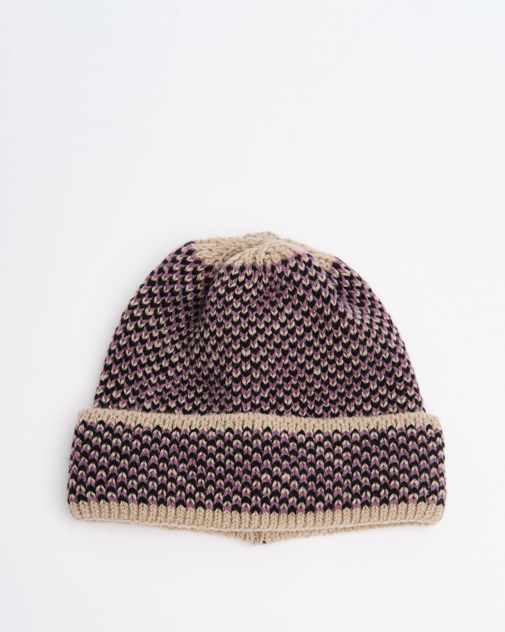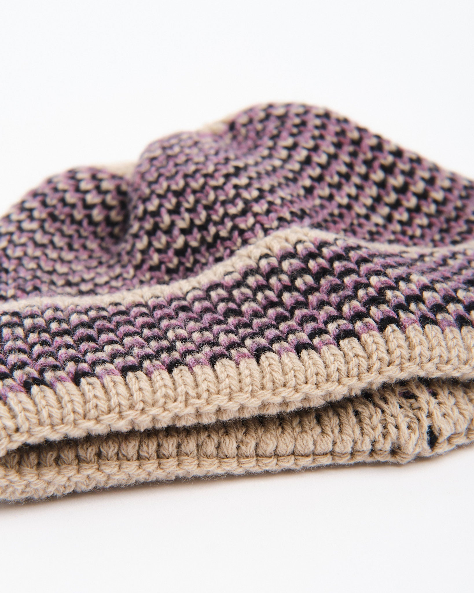 Reverse Geo -pipo Beige sävyssä Found Featherilta yhdistää neutraalit sävyt rohkeaan tekstuurin. Valmistettu Japanissa pestävästä italialaisesta Donegal-villasta, tässä pipossa on käänteinen jacquard-neulekuvio, joka lisää taktiilista kontrastia ja visuaalista rytmiä. Pehmeän joustavan langan, yksipaneelisen rakenteen ja säännöllisen 7 cm leveän reunan ansiosta se on suunniteltu tarjoamaan mukavuutta ja rakennetta samassa määrin. Kudottu merkki ja QR-koodattu hoitolappu viimeistelevät kappaleen, joka on suunniteltu huolellisesti viimeiseen pistoon asti.