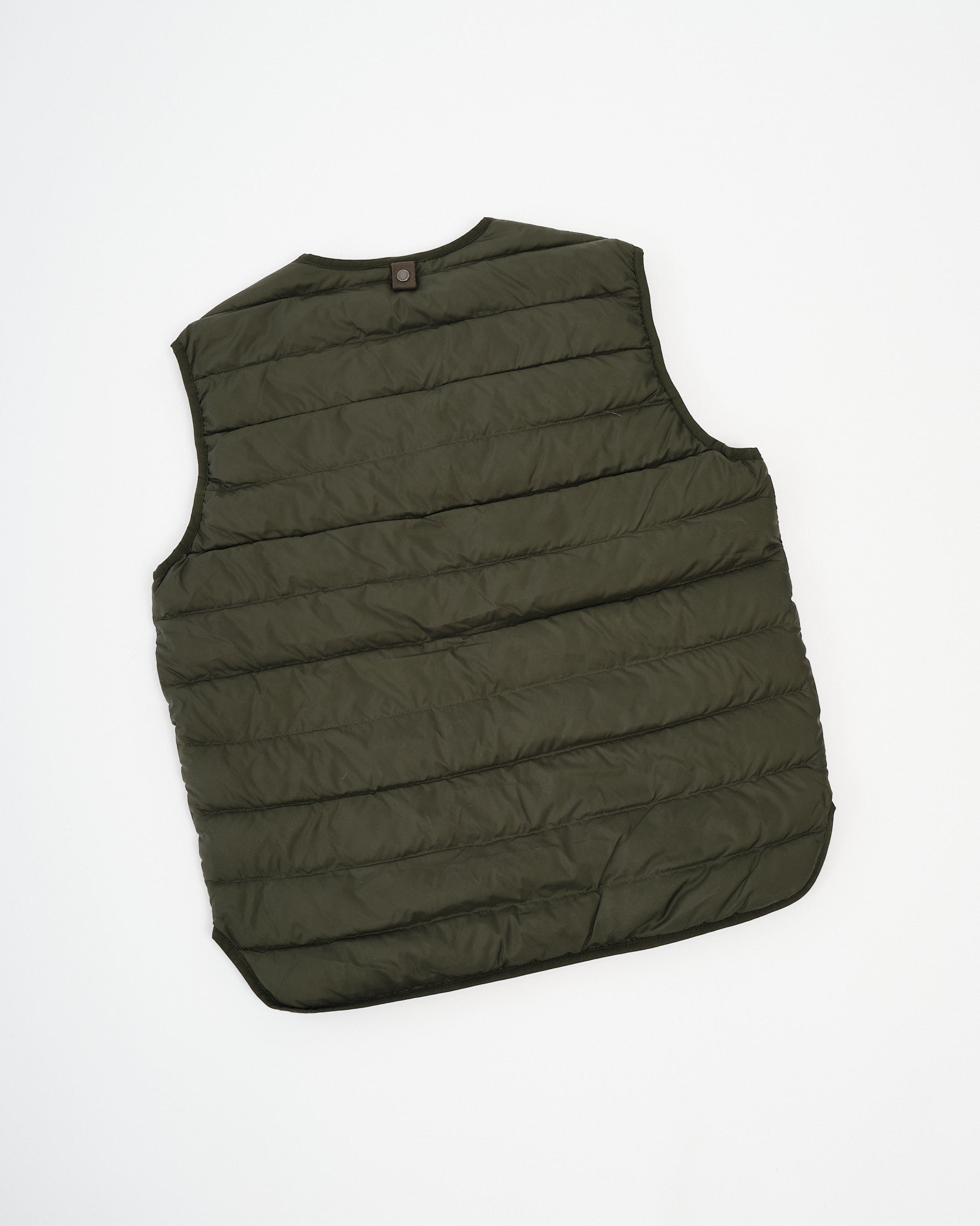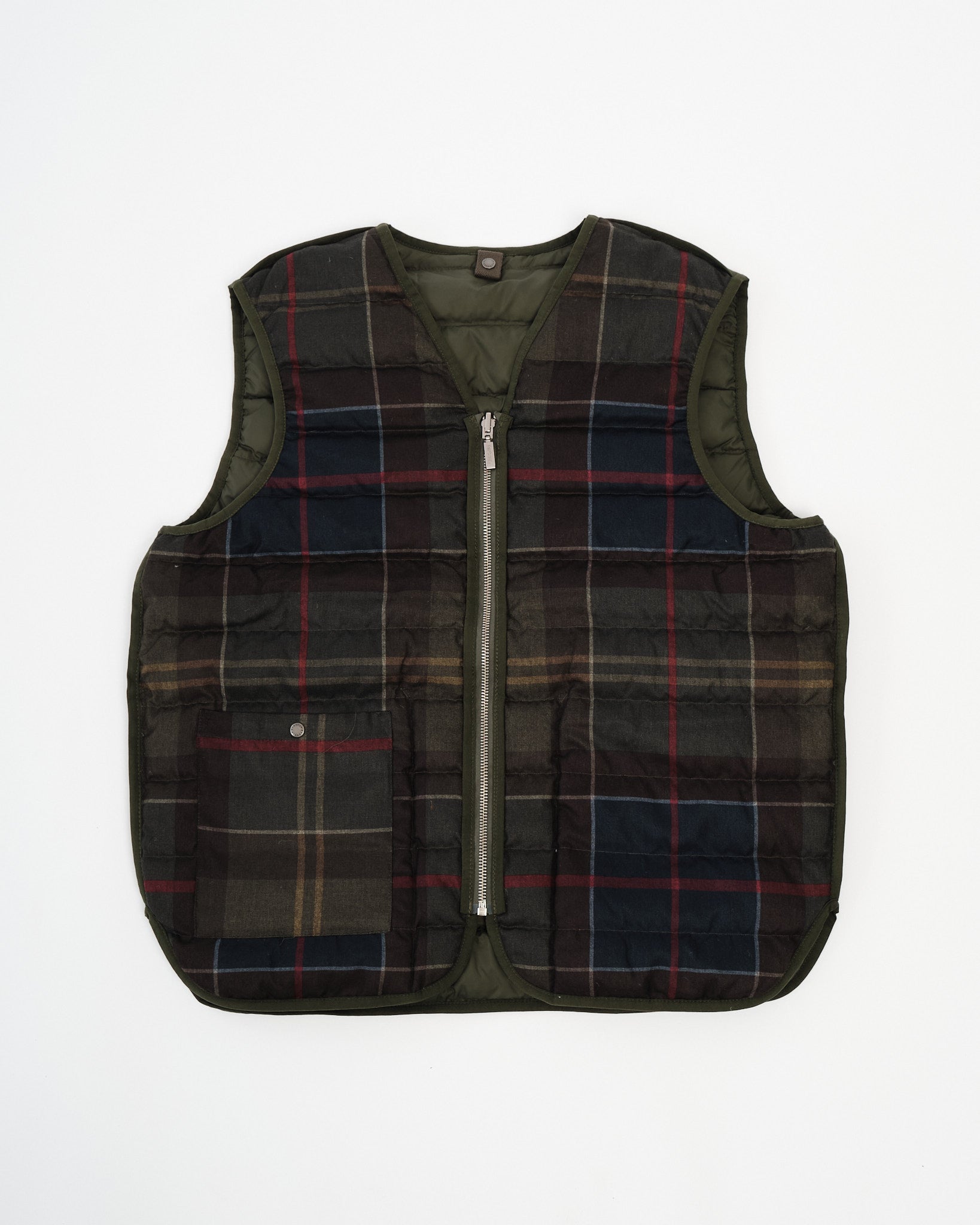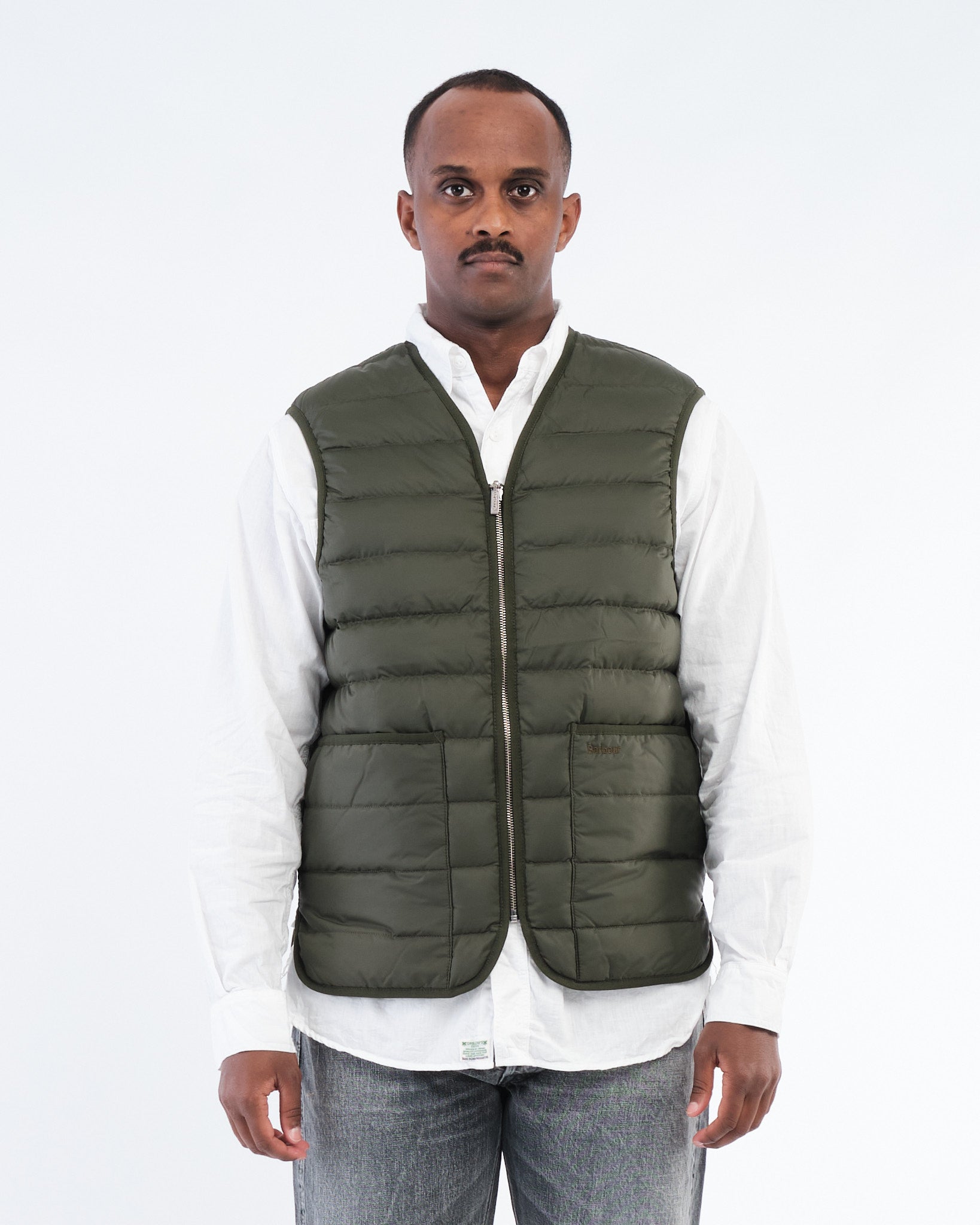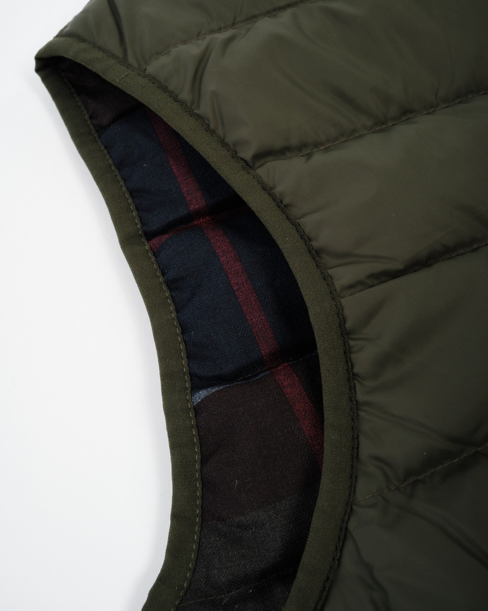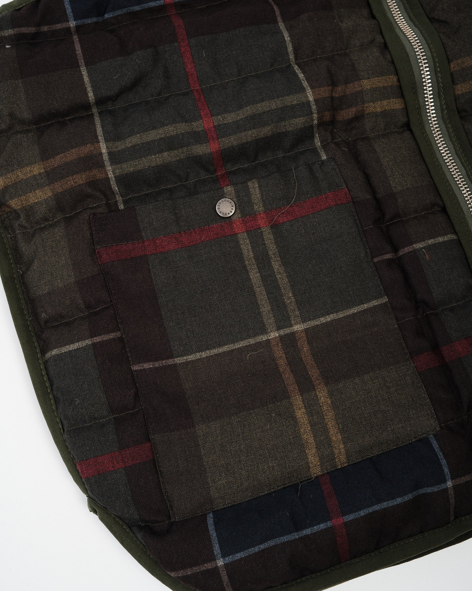 Kaksi ulkonäköä. Yksi olennainen kerros. Barbour Reversible Down Filled Liner värissä Sage on suunniteltu monipuolisuutta, lämpöä ja ajatonta toiminnallisuutta varten. Suunniteltu tikatulla polyesterikuorella, siinä on toinen puoli puhtaassa salvianvihreässä ja toinen klassisessa tartan-sisustuksessa.