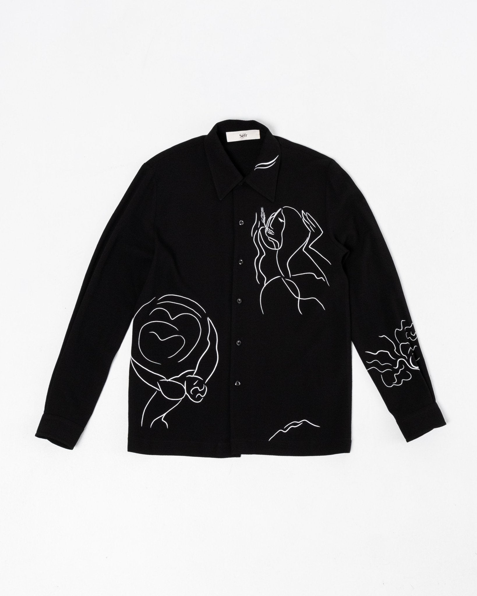 Ripley-paita Hiljainen kuosi Séfriltä. Pitkähihainen paita, jossa on leveä kaulus ja helmiäisnapit. Suora leikkaus hiljaisella kuosilla, 60% viskoosia ja 40% villaa. Valmistettu Latviassa.