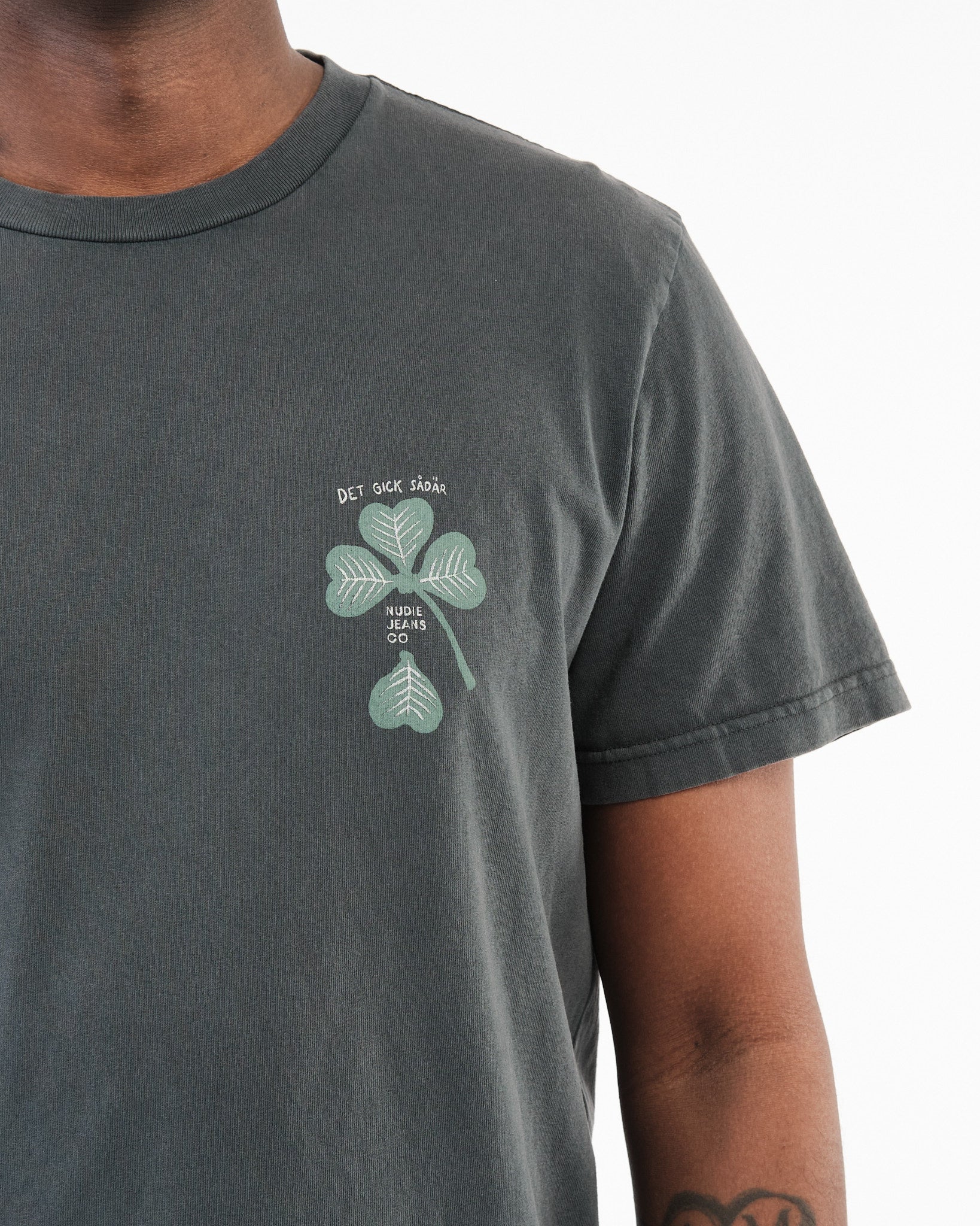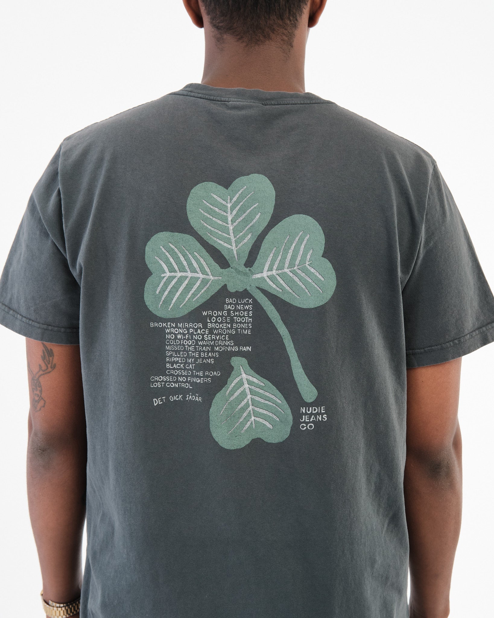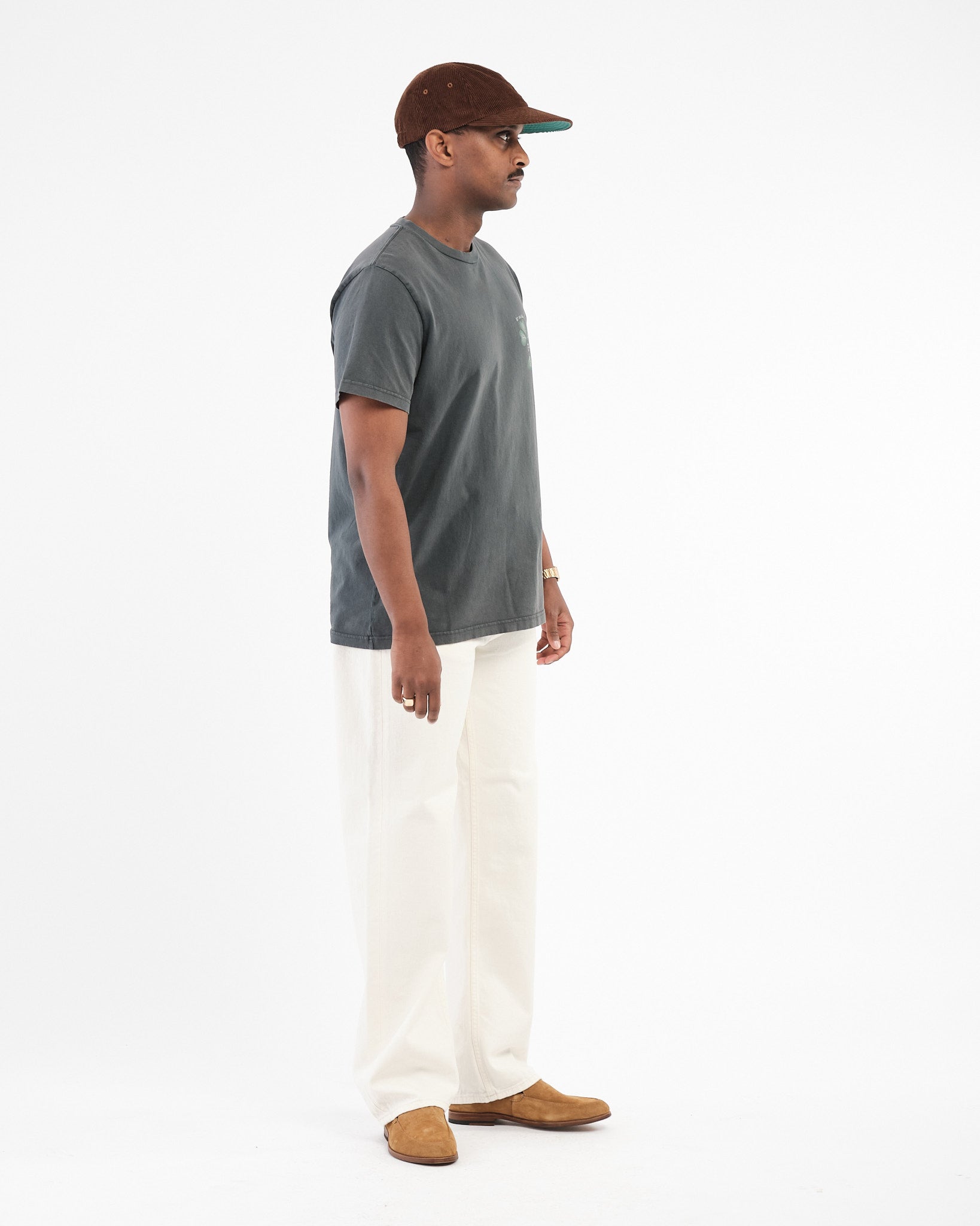 Puhdaslinjainen klassikko juuri oikealla twistillä. Roy Lost Leaf -t-paita on valmistettu rapeasta, luomupuuvillaisesta jerseystä ja kivipesty pehmeän, kuluneen lopputuloksen saavuttamiseksi, joka sopii vaivattomasti farkkujen kanssa. Siinä on regular-mitoitus, tukeva 1x1 ribbineulottu pääntie ja printit sekä rinnassa että selässä - hienovarainen edessä, rohkea takana. Pesty antrasiitin sävy haalistuu ajan myötä, antaen jokaiselle kappaleelle henkilökohtaisen, eletyn luonteen. Jokapäiväinen välttämättömyys? Ehdottomasti.