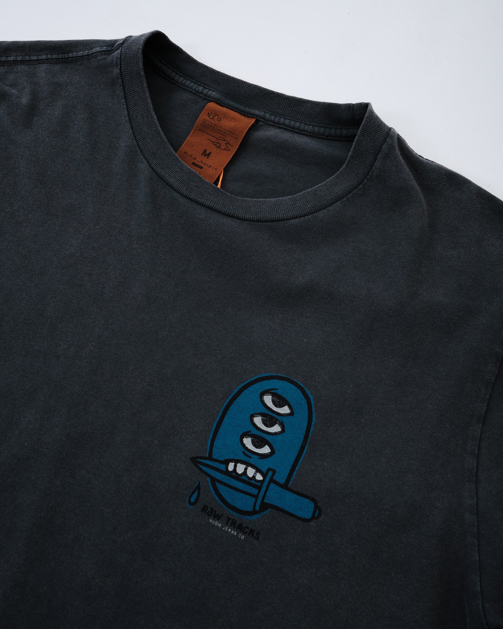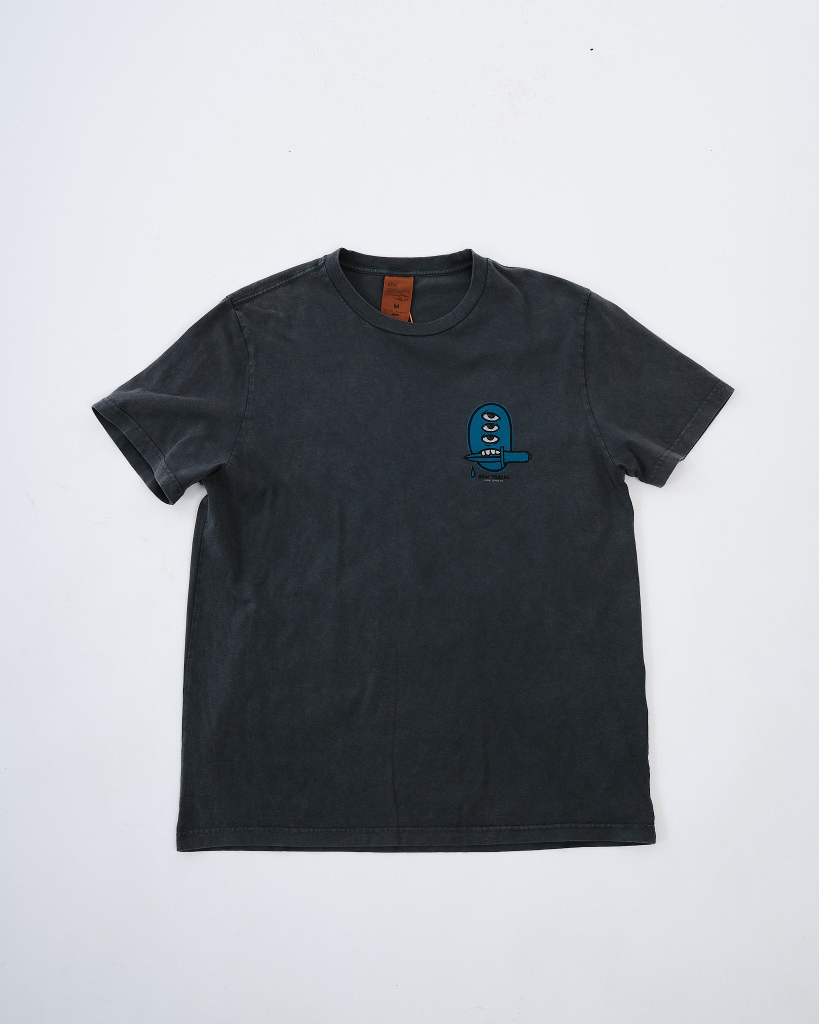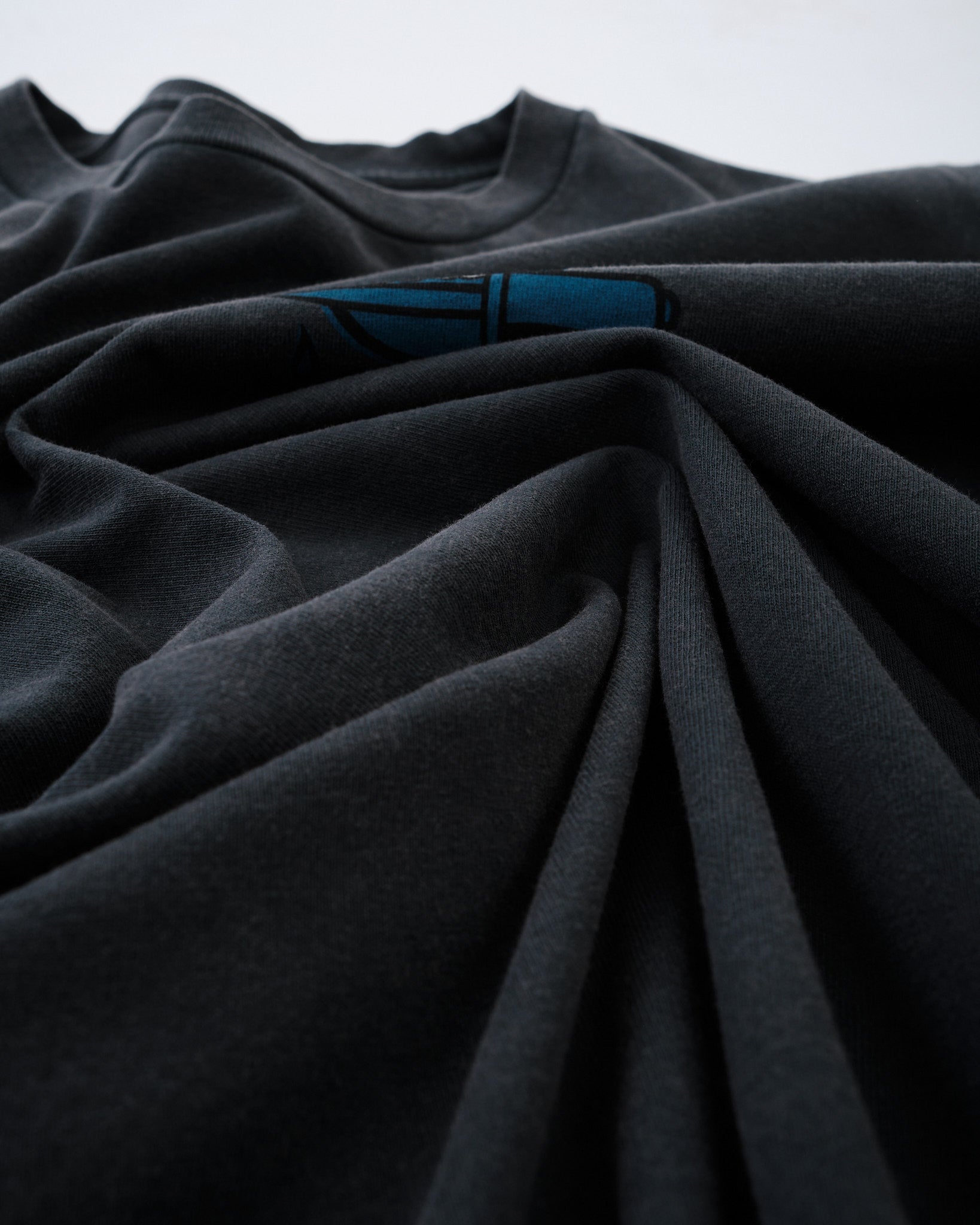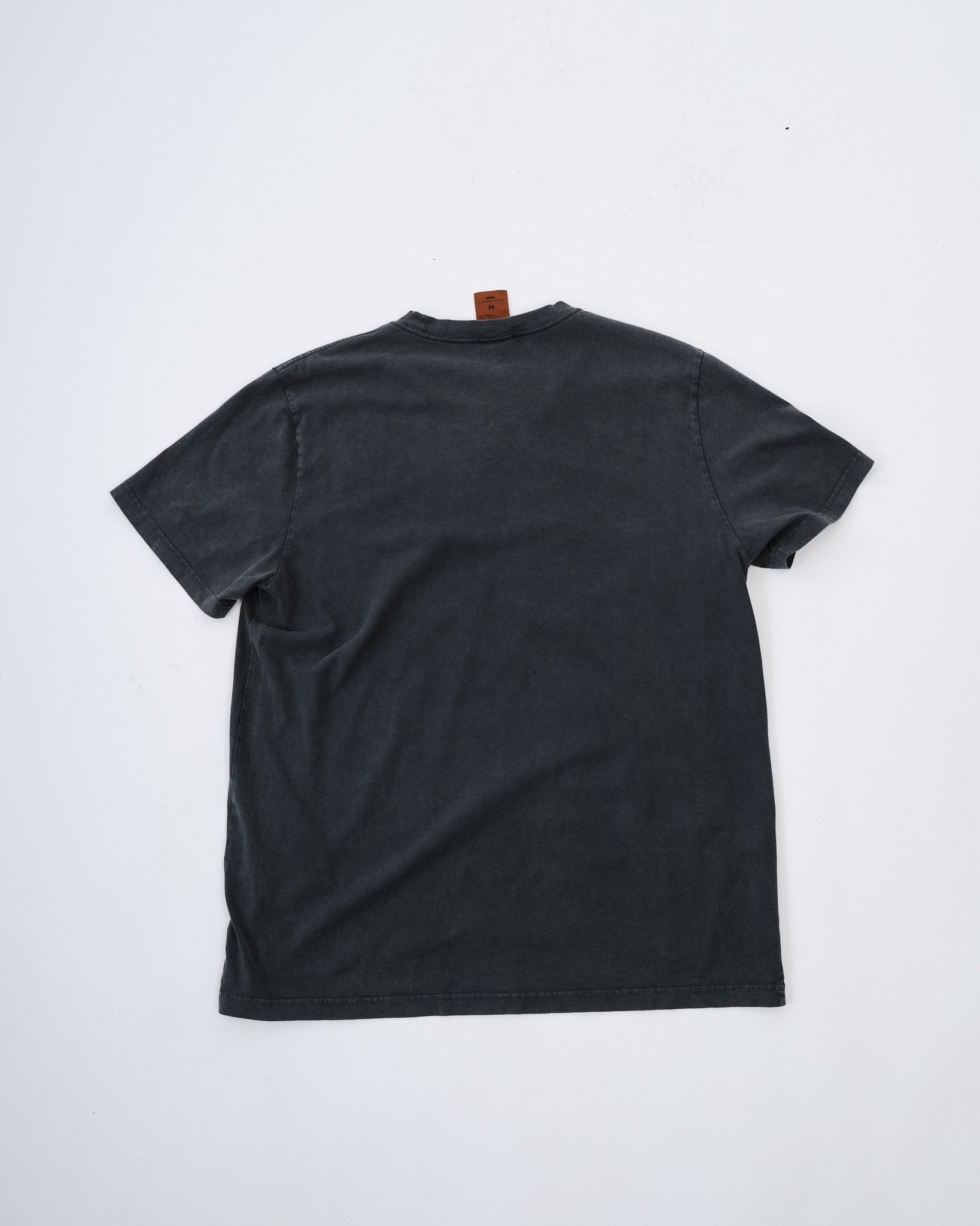 Haalistunut antrasiitin sävy saavutetaan vaatevärjäyksellä ja haalistuvalla pesulla, antaen t-paidalle luonnollisen kuluneen ulkonäön, joka sopii täydellisesti denimiin. Käyttäessäsi ja pestessäsi sitä, väri jatkaa kehittymistään, tehostaen sen vintage-estetiikkaa. Viimeistelty rintapainatuksella, tämä t-paita tarjoaa vaivatonta tyyliä aidolla, kuluneella viehätyksellä.