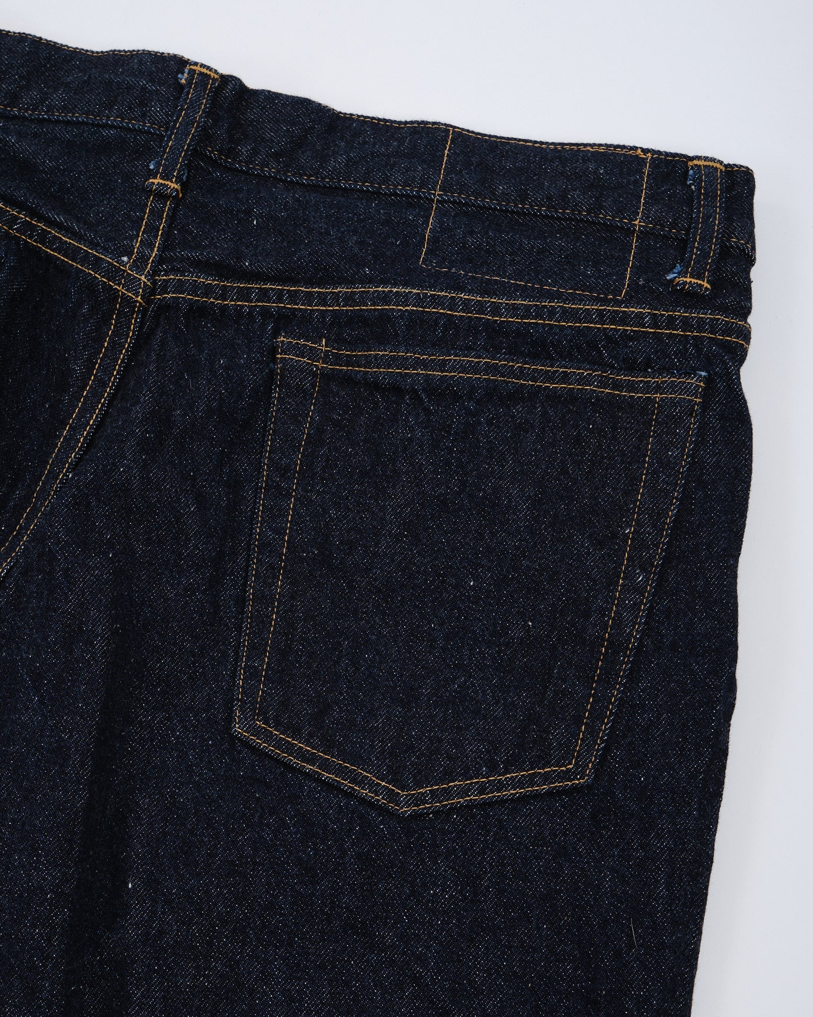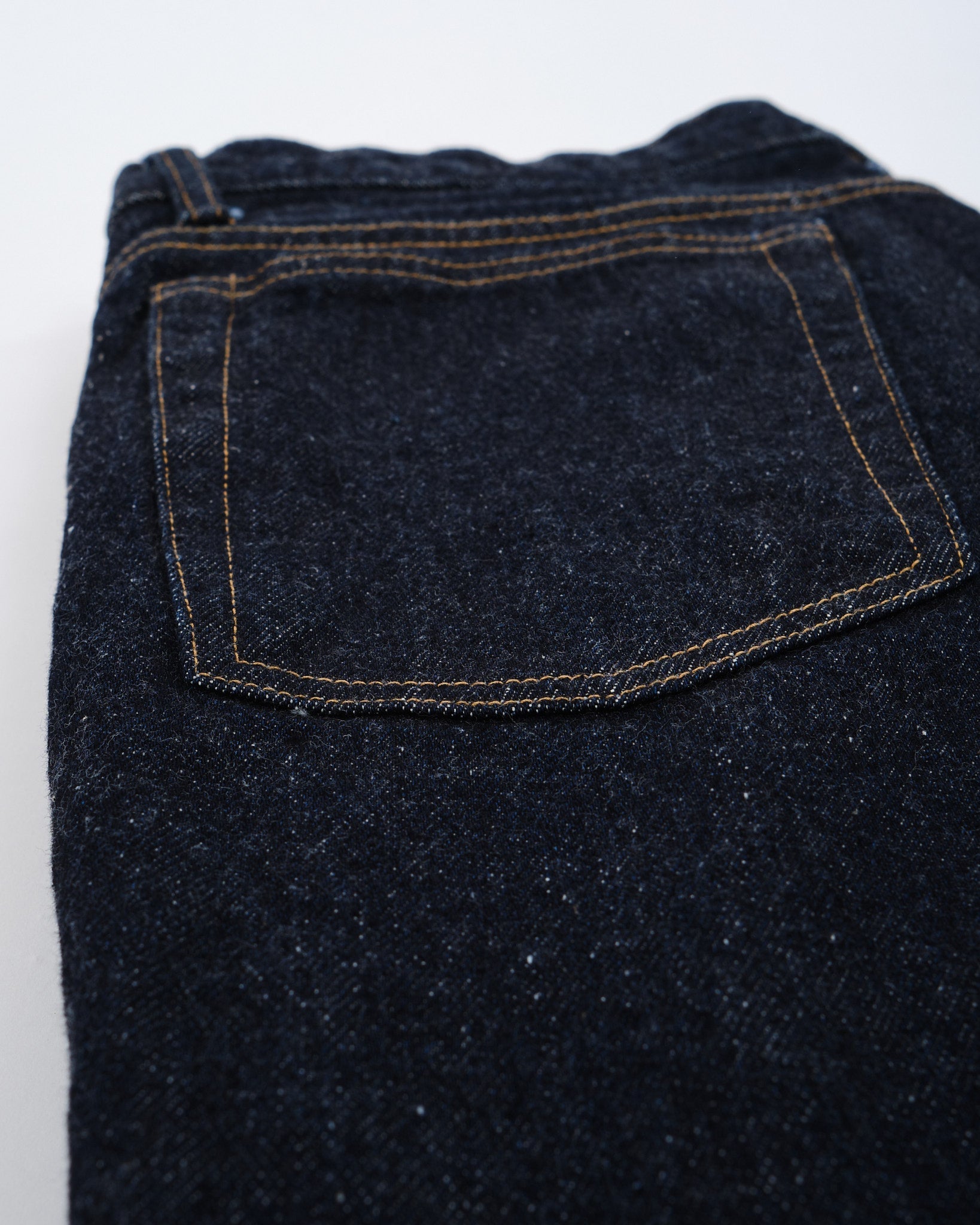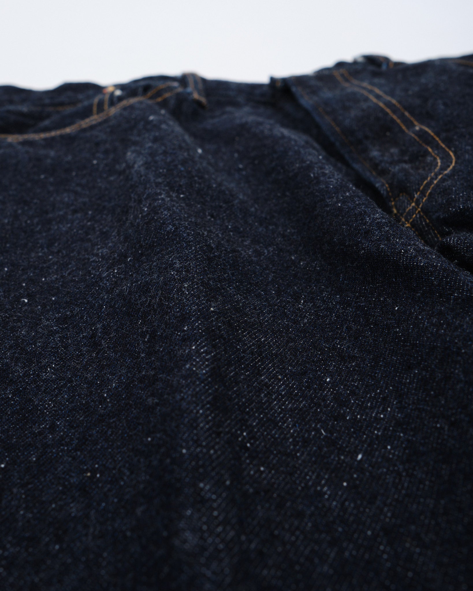 4. Erityinen denim: Teksturoitu japanilainen denim värjätty puhtaalla indigolla ainutlaatuista ulkonäköä varten.