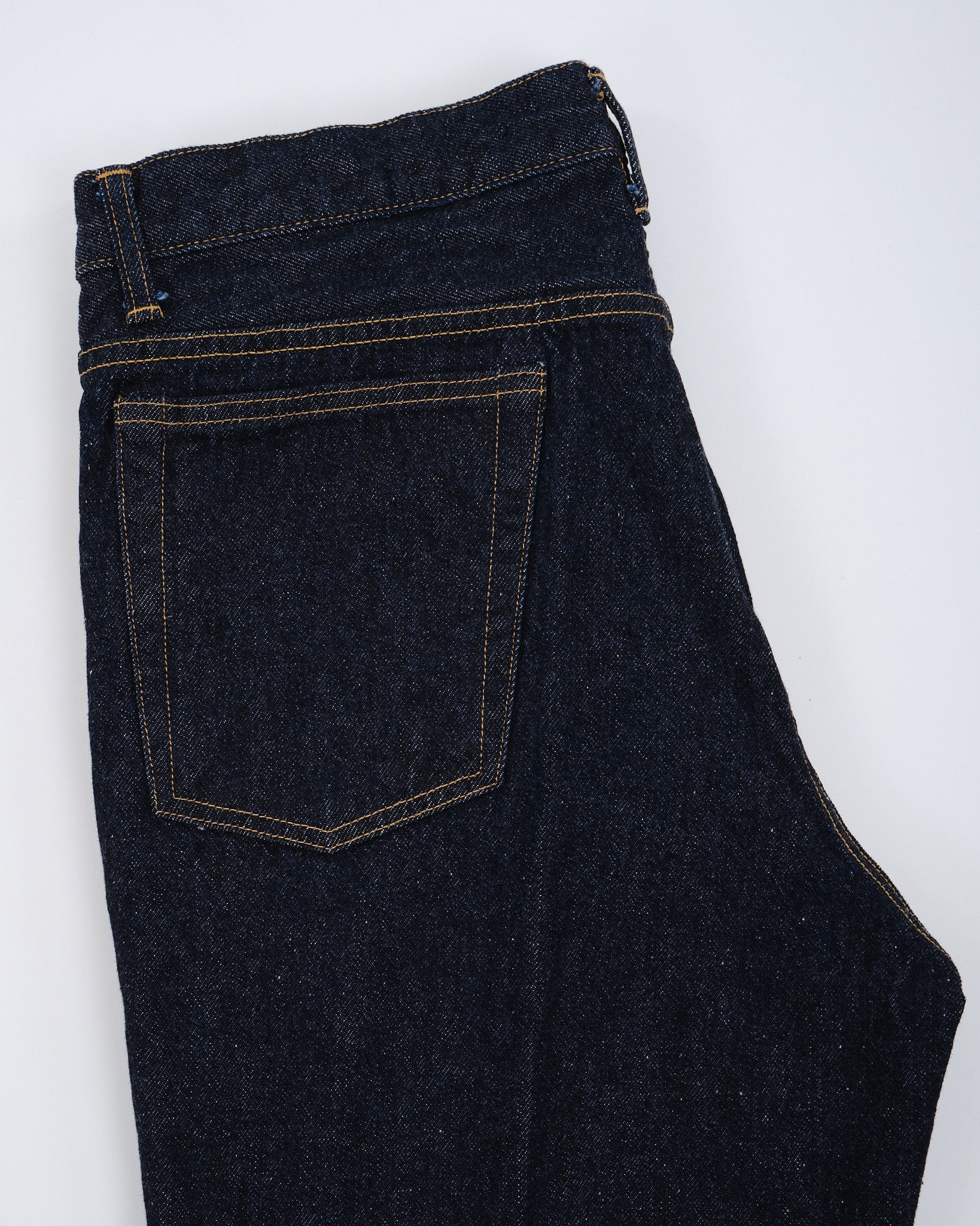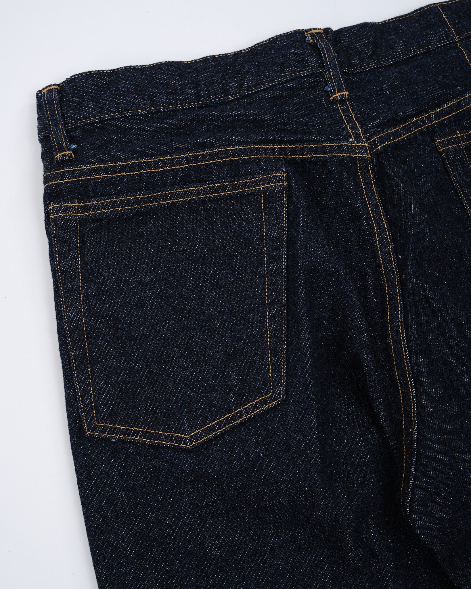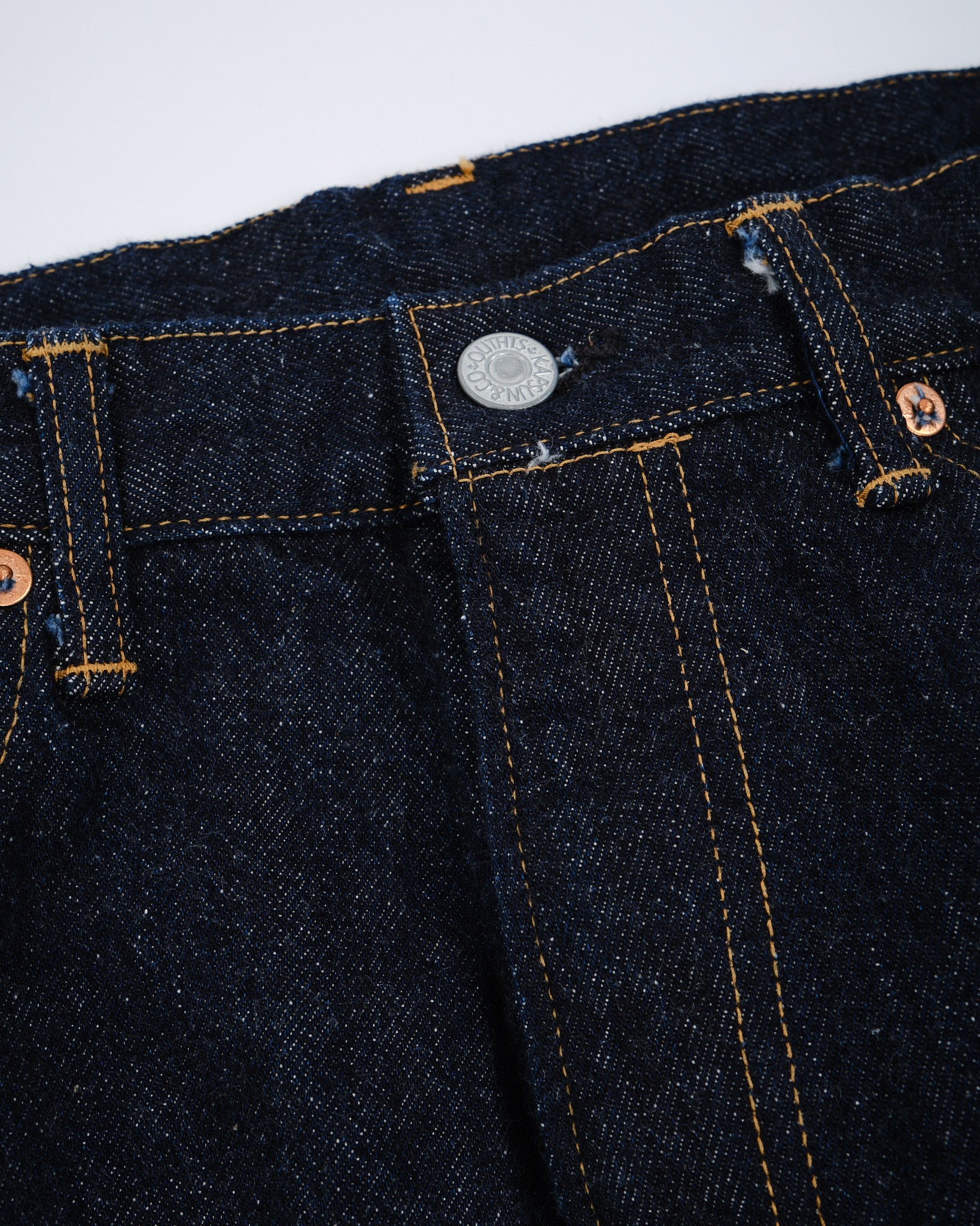 4. Erityinen denim: Teksturoitu japanilainen denim värjätty puhtaalla indigolla ainutlaatuista ulkonäköä varten.