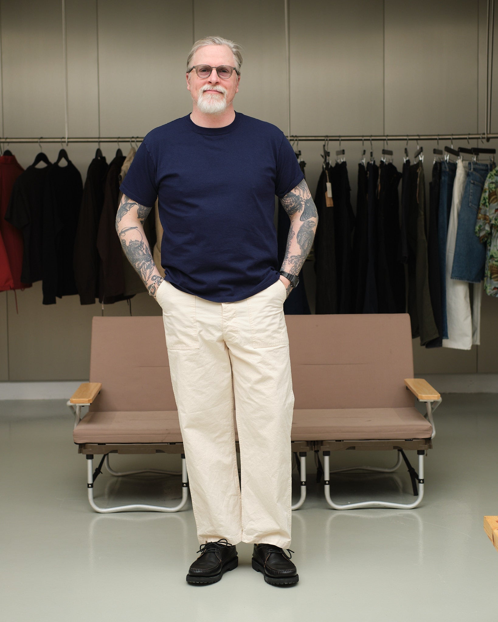 Good On S/S Crew Tee Navyssa todistaa, että perusvaatteet voivat olla poikkeuksellisia. Jokainen paita on valmistettu noin 70 kokonaisesta puuvillapallosta, jotka on kehrätty pehmeäksi mutta kestäväksi amerikkalaiseksi puuvillajerseyksi. 5,5 unssin painollaan se tarjoaa täydellisen tasapainon hengittävän mukavuuden ja pitkäikäisen kestävyyden välillä. Allekirjoituspigmenttivärjäysprosessi antaa syvän mustan sävylle elävän luonteen — se haalistuu ja muuttuu ajan myötä, aivan kuten farkut. Valmistettu Japanissa, tämä t-paita yhdistää Yhdysvaltain puuvillan puhtauden japanilaisen värjäysmestaruuden kanssa, tuloksena on ajaton kappale, joka vanhenee persoonallisuuden kanssa.
