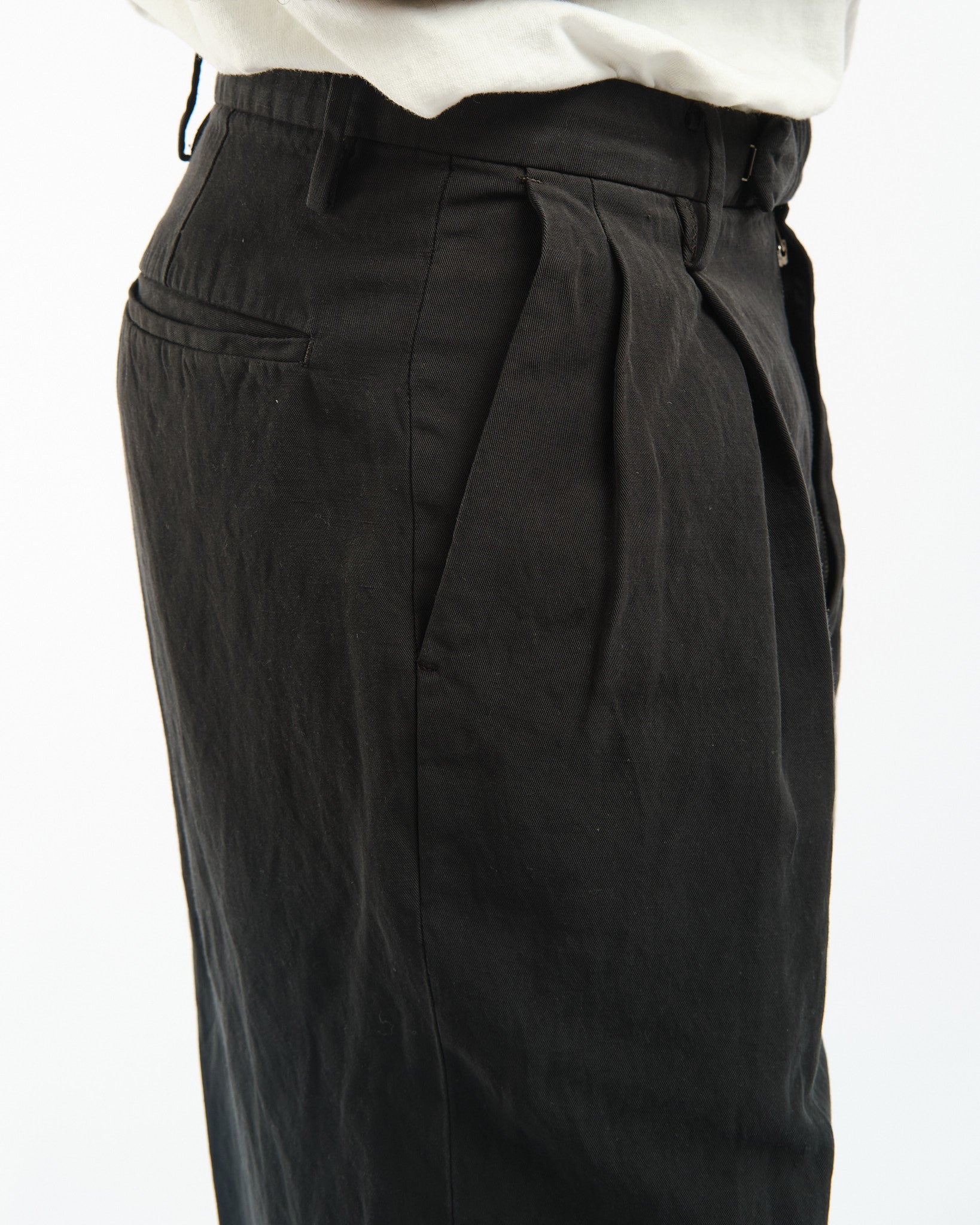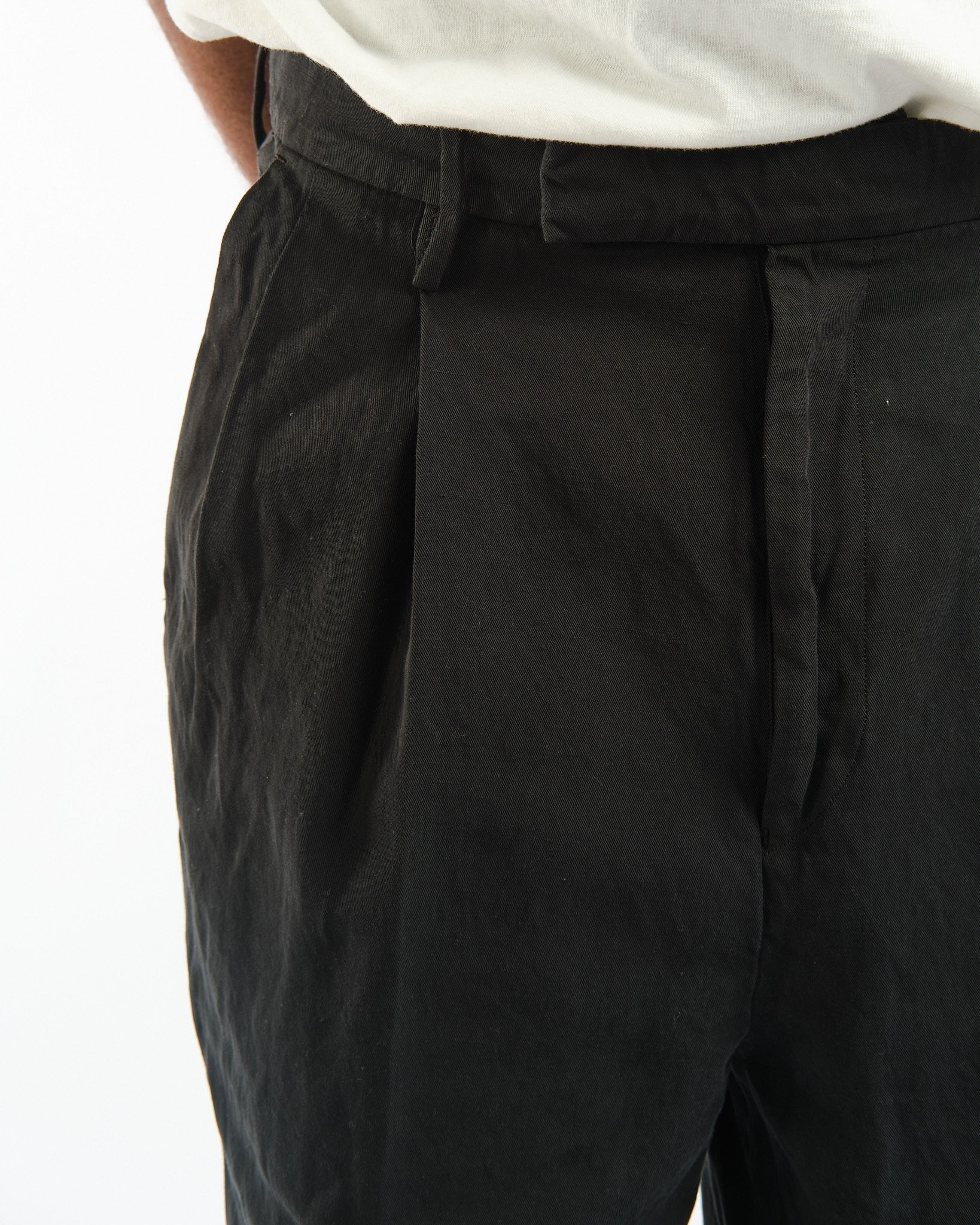 Etsitkö housuparia, joka on sekä viileä että hillitty? Älä etsi enää, sillä japanilaisen Kaptain Sunshine -merkin Shoecut-housut Ink Black -värissä ovat täydellinen valinta. Valmistettu sekoituksesta egyptiläistä erittäin pitkäkuituista puuvillaa FINX ja belgialaista pellavaa, näissä housuissa on ainutlaatuinen kudottu tekstuurin, joka tarjoaa täydellisen tasapainon tyylin ja mukavuuden välillä. Kuiva kosketusviimeistely tarjoaa ylellisen tunteen, kun taas tuotteen värjäys luo rikkaan, syvän värin. 70 % puuvillan ja 30 % pellavan sekoituksella nämä housut ovat sekä hengittävät että kestävät, tehden niistä täydellisen valinnan mihin tahansa tilaisuuteen. Lisää japanilaista käsityötaitoa vaatekaappiisi ja pidä se viileänä näillä hillityillä housuilla!