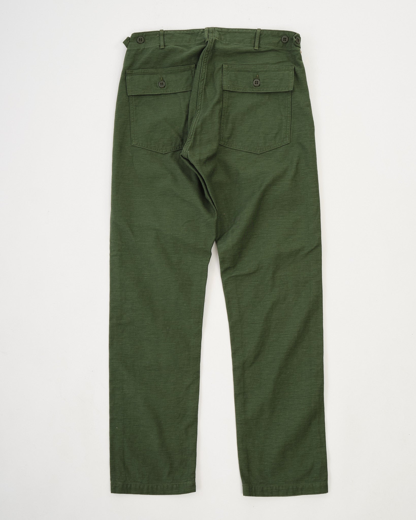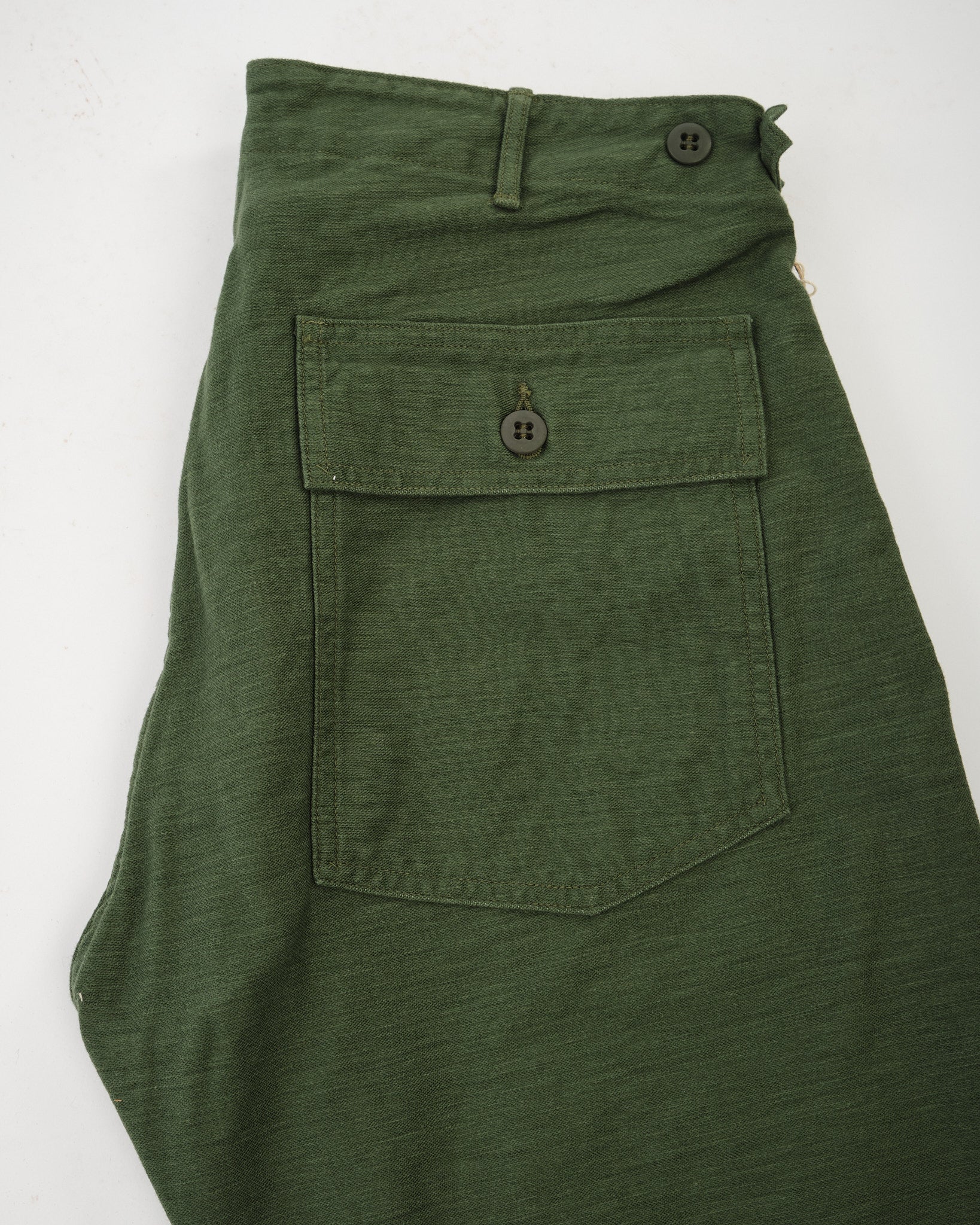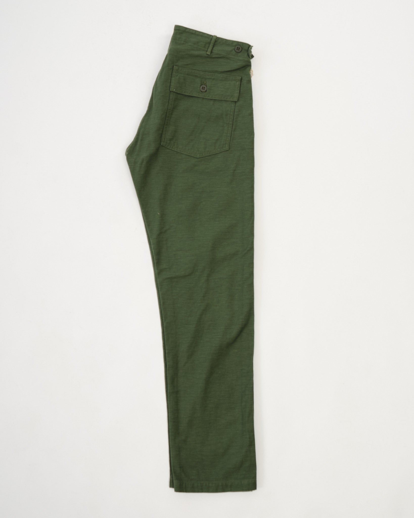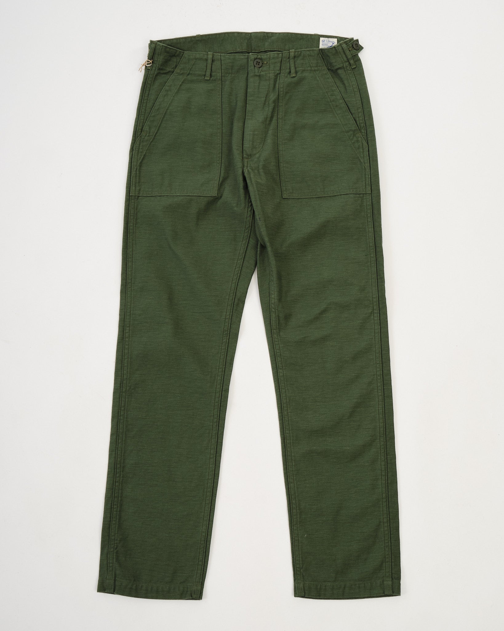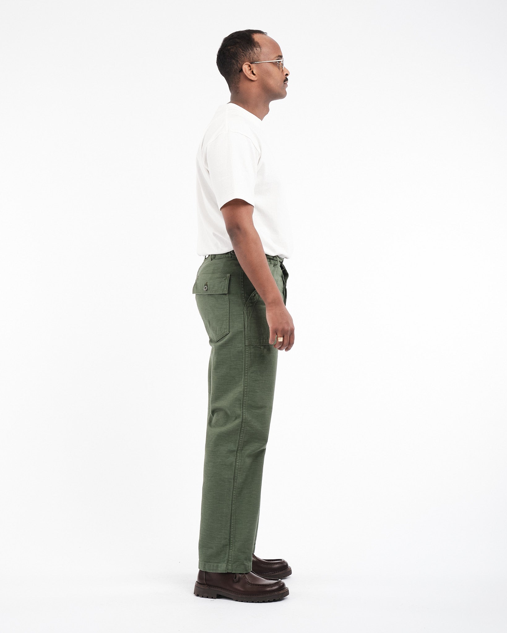 Koe ajattoman viehätyksen uudelleenkeksiminen orSlow Slim Fit Fatigue -housuilla, jotka ovat vihreän sävyiset. Japanissa huolellisesti valmistetut housut kunnioittavat klassista sotilassuunnittelua käänteisestä satiinista valmistettuina. Kestävästä 100% puuvillatvillistä valmistetut housut yhdistävät utilitaristiset elementit moderniin kosketukseen. Odota sivutaskuja, vyötärönauhaa, joka kiristetään välilehdillä, ja kapeaa istuvuutta, joka korostaa nykyaikaista siluettia. Olipa yhdistetty haalistuneeseen farkkutakkiin tai mukavaan villapaitaan, nämä housut huokuvat tyyliä yhdistettynä vertaansa vailla olevaan mukavuuteen.