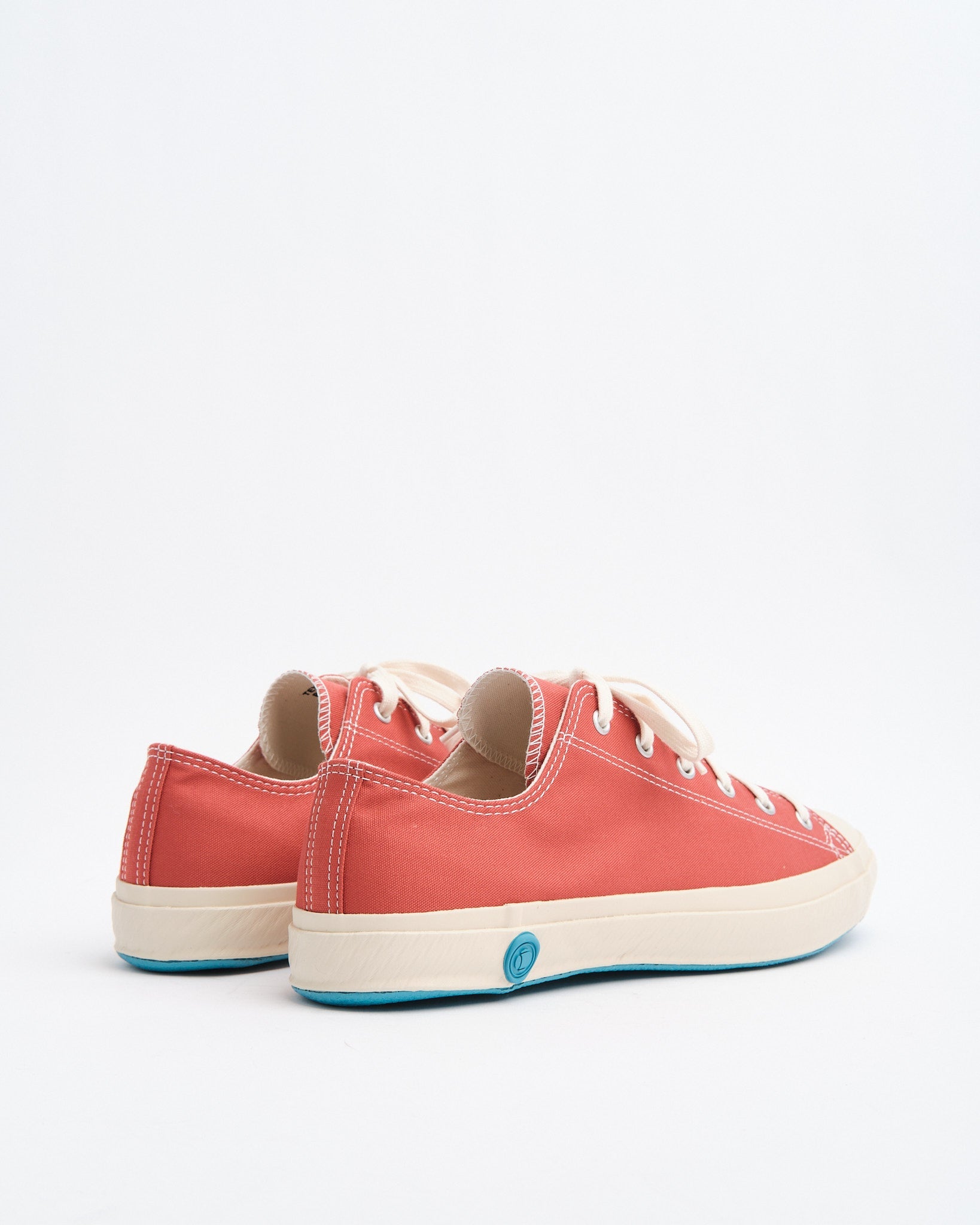 The deep JP Red canvas upper is woven in Japan and paired with a clean white rubber sole for a sharp, heritage-inspired contrast. The result is a timeless low-top silhouette that feels authentic rather than nostalgic. Subtle details like the hand-stamped blue heel logo and reinforced toe cap reflect the brand’s dedication to traditional production methods.