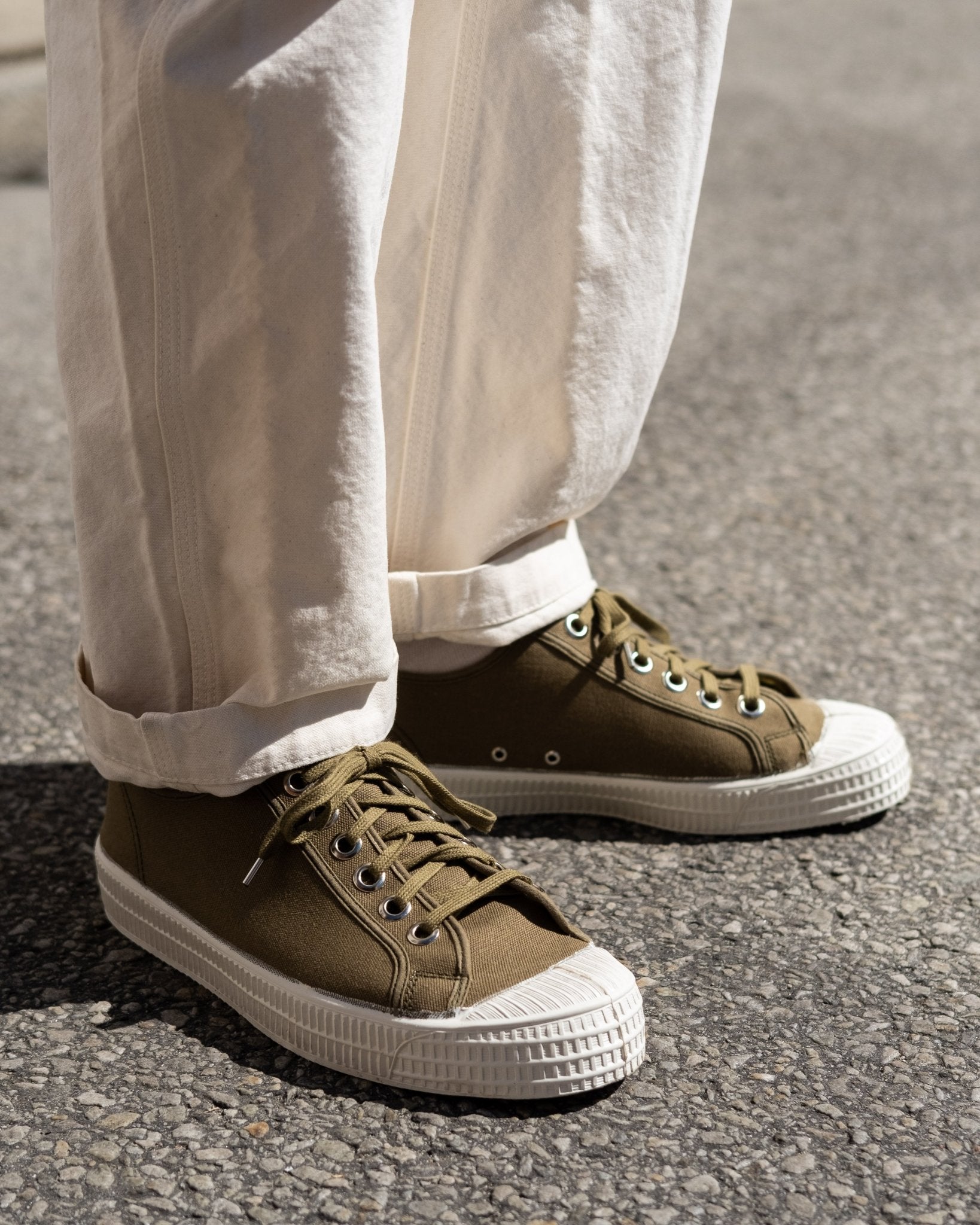 Star Master Military, joka on Slovakialaisen kenkämerkki Novestan valmistama, on tehty vulkanoidulla pohjalla. 100% puuvillainen päällinen ja anatomisesti muotoiltu sisäpohja. Vulkanointi tekee kumipohjasta kestävämmän, joustavamman ja mukavamman. Mukana tulee sekä vihreät että valkoiset nauhat.