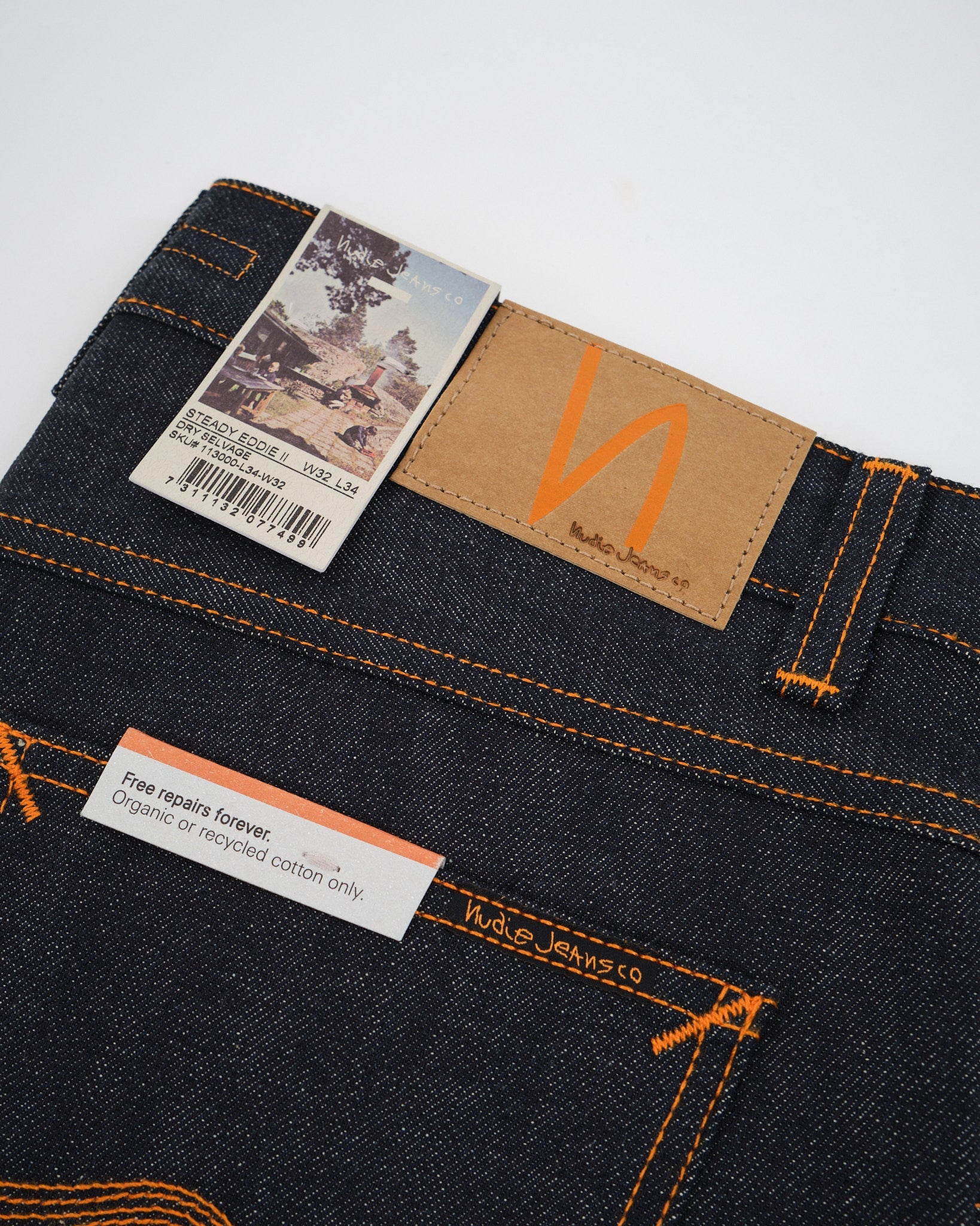 Esittelyssä NUDIE JEANS Steady Eddie II Dry Selvage, missä perinne kohtaa vertaansa vailla olevan laadun. Valmistettu Kaiharan selvage-denimistä, joka tunnetaan uskomattomista ikääntymisominaisuuksistaan, nämä farkut ovat kunnianosoitus Nudien alkuperälle. Valmistettu täysin orgaanisesta puuvillasta, nämä 13,75 unssin kuivat jäykät selvage-farkut tulevat oranssilla tikkauksella, antiikkisilla hopeanvärisillä yksityiskohdilla ja Jacron-merkillä. Regular fit -mitoituksella, keskikorkealla vyötäröllä ja kapenevalla lahkeella ne tarjoavat täydellisen sekoituksen mukavuutta ja kestävyyttä. Tee niistä seuraava go-to-parisi!