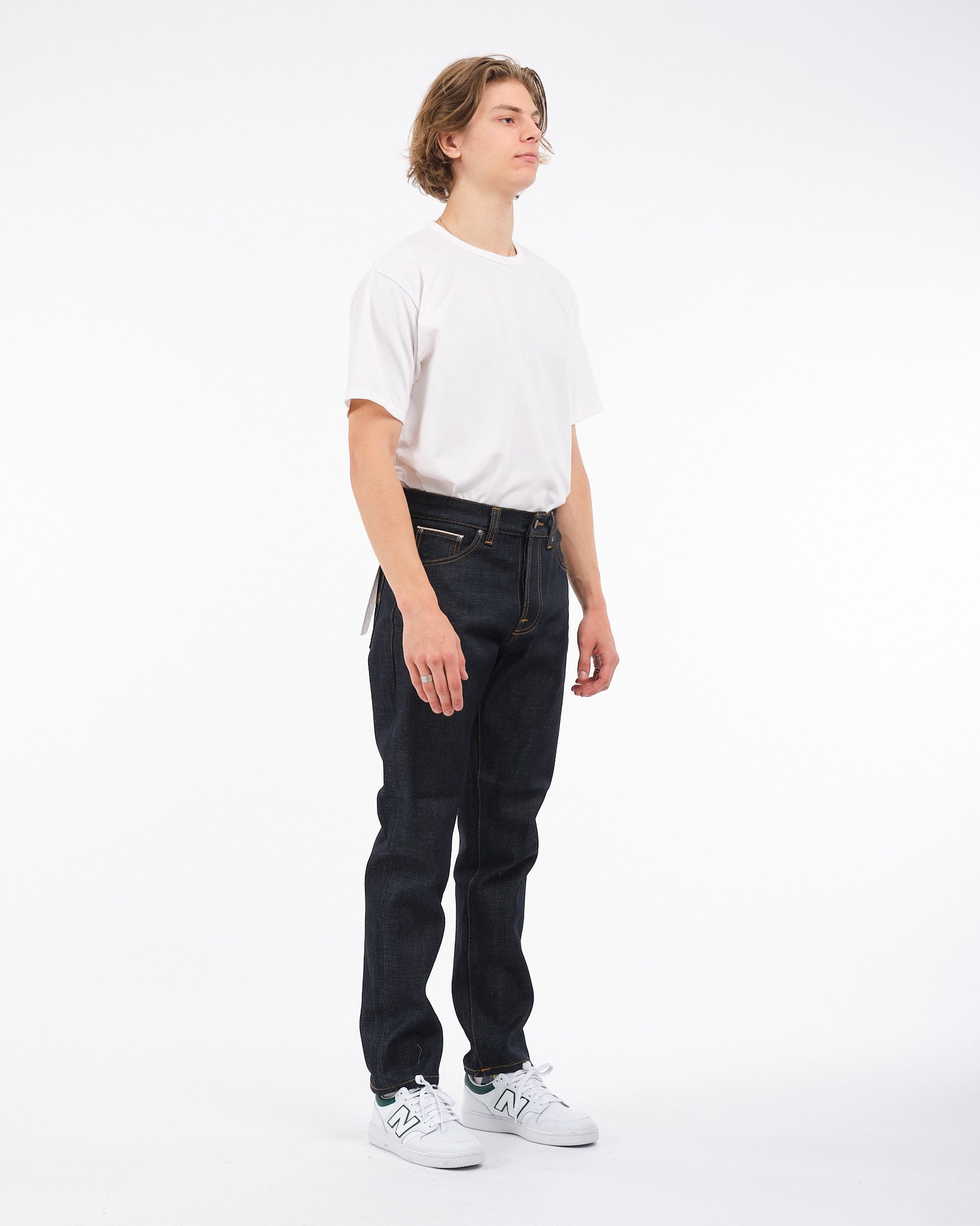 Merkki: Nudie Jeans Tyylikoodi: 114771 Tyylin nimi: Steady Eddie II Gravity Selvage Valmistettu raskaasta 18oz japanilaisesta selvage-denimistä Säännöllinen istuvuus suoralla lahkeella ajattomaan, monipuoliseen ulkonäköön Valmistettu 100% luomupuuvillasta kestävyyden ja mukavuuden takaamiseksi Syvä indigo-kangas kehittää ajan myötä ainutlaatuisen haalistumisen Kestävä selvage-rakenne takaa pitkäaikaisen käytön Täydellinen rennoille, jokapäiväisille asuille ja kestää raskasta käyttöä Suunniteltu denim-entusiasteille, jotka arvostavat huippuluokan käsityötaitoa