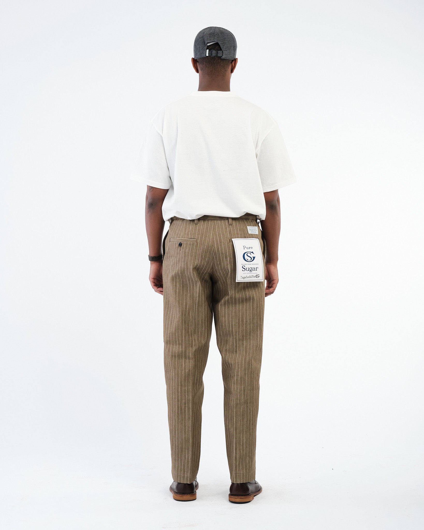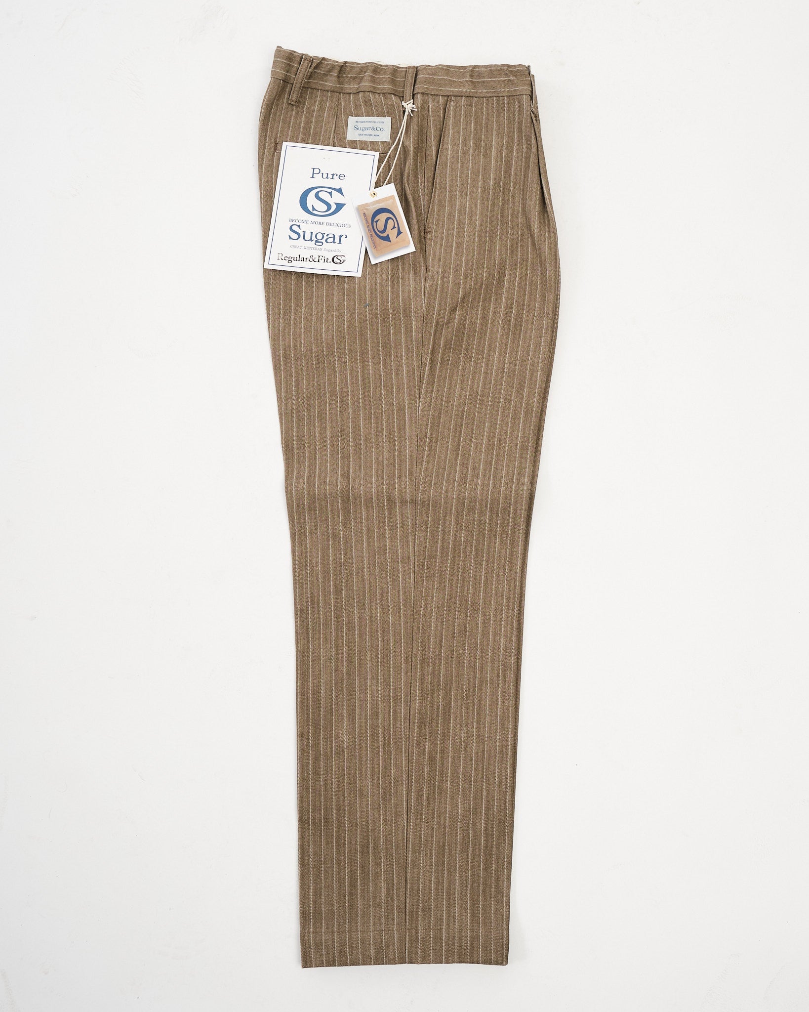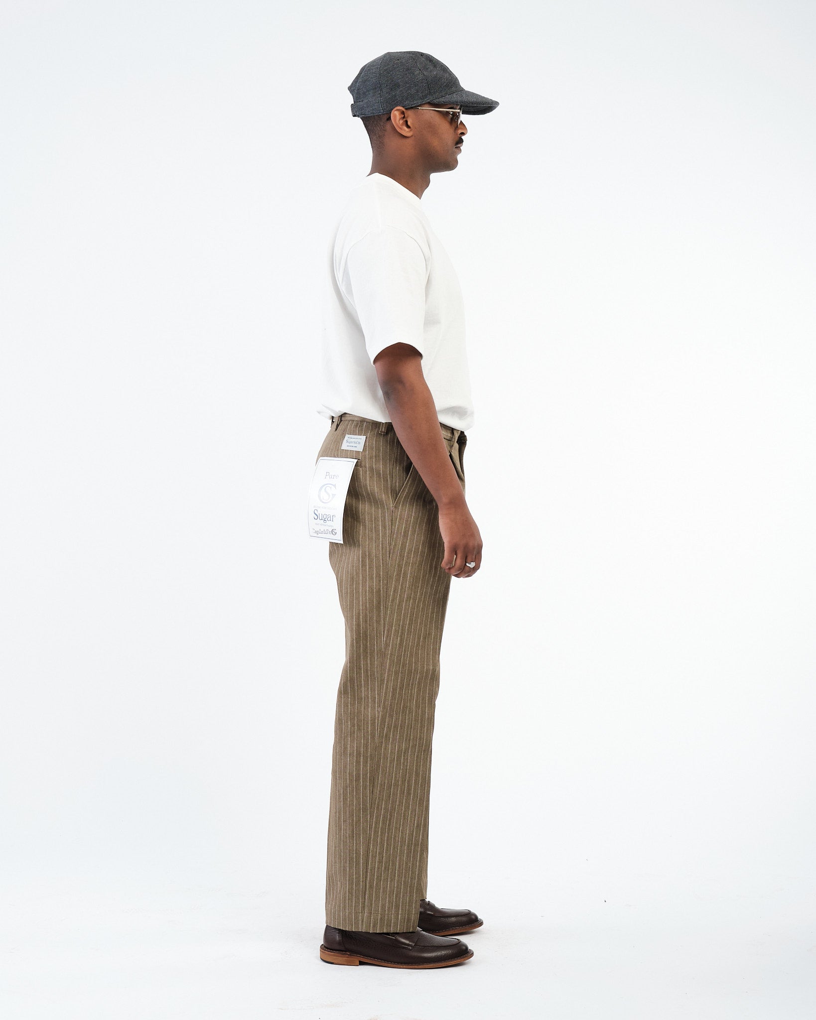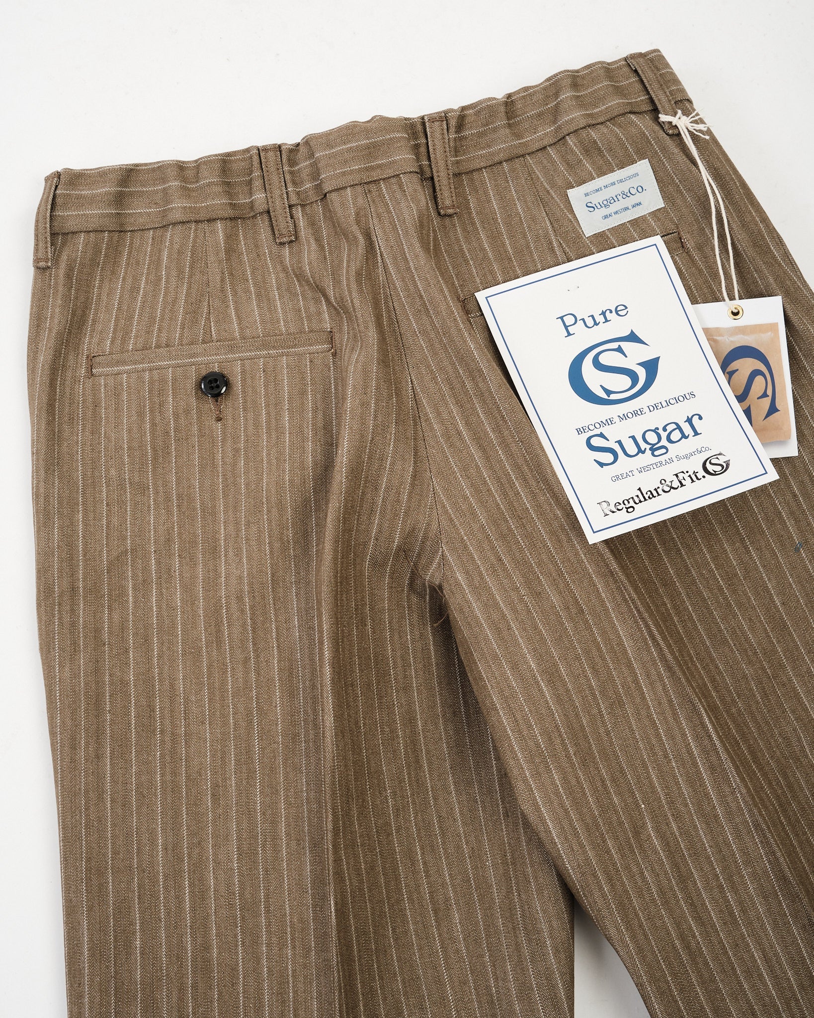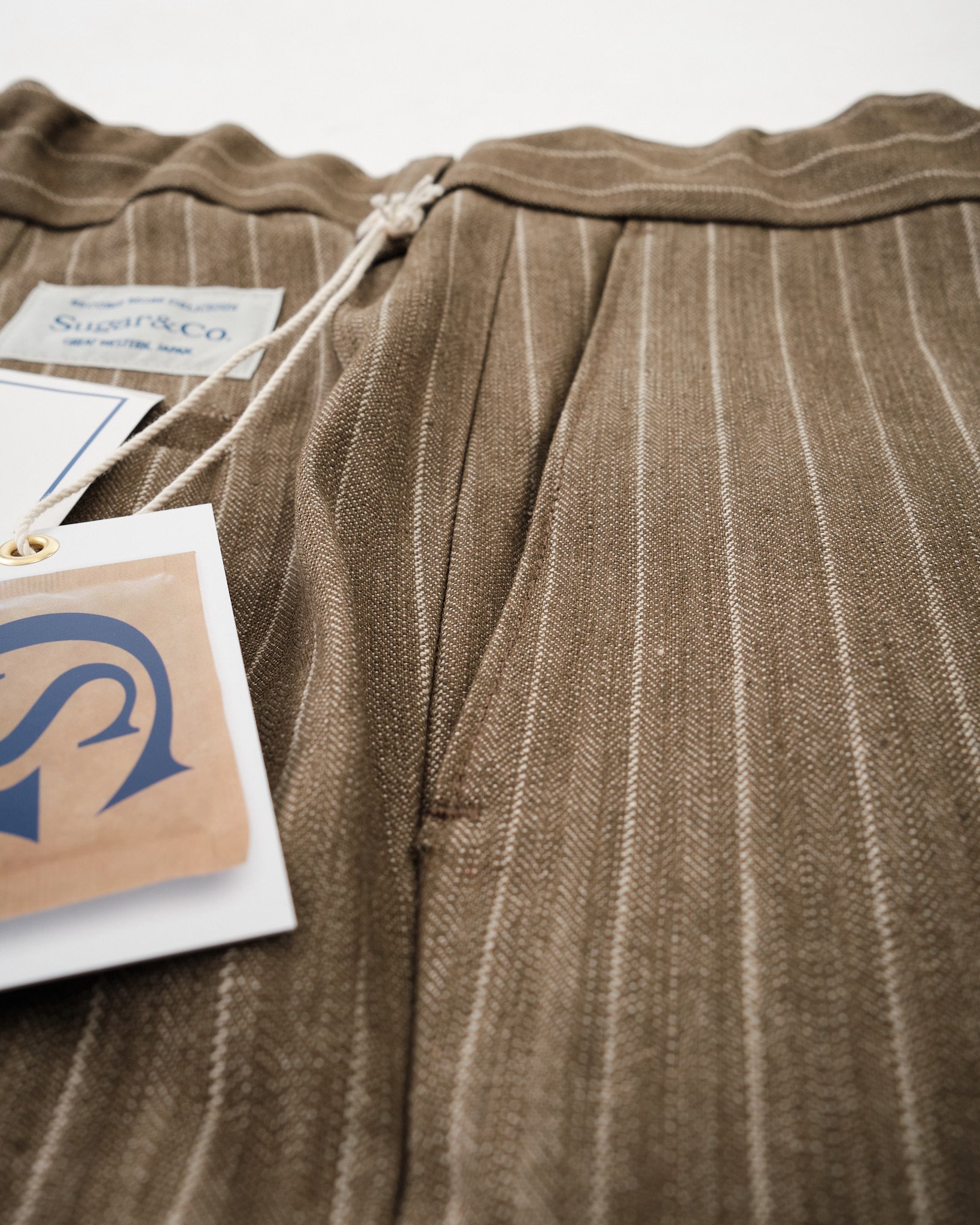 SUGAR & CO. STRIPED DENIM Beige-värisenä on hienostunut otto klassisesta työvaatteesta, yhdistäen karun kestävyyden tyylikkääseen siluettiin. Nämä housut on valmistettu korkealaatuisesta raidallisesta denimkankaasta, tarjoten ainutlaatuisen tekstuuri ja premium-tuntuman. Suunniteltu kaunistumaan kauniisti ajan myötä, kangas kehittää luonnetta samalla säilyttäen sen lujuuden ja rakenteen.