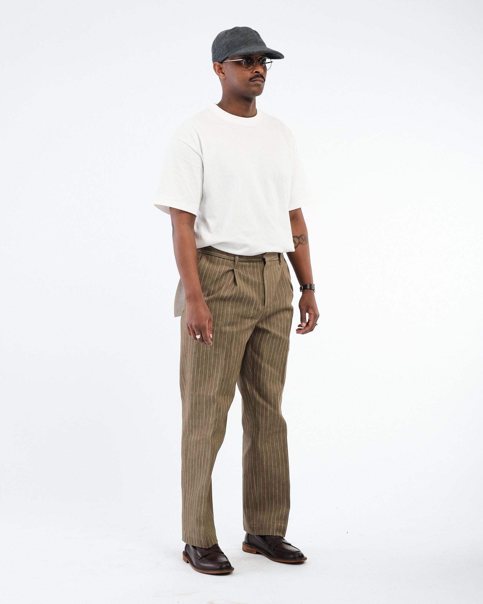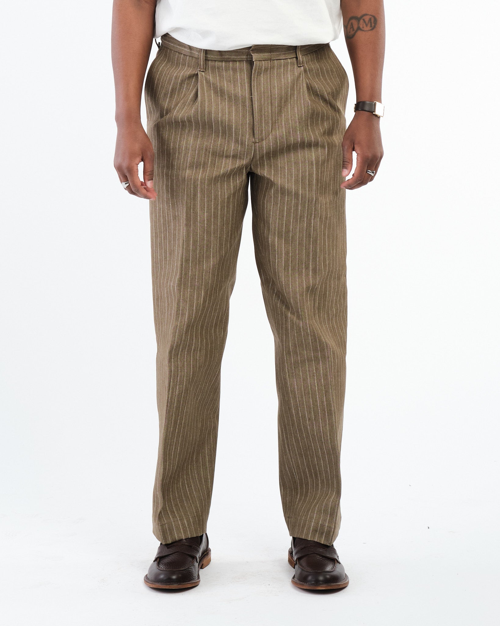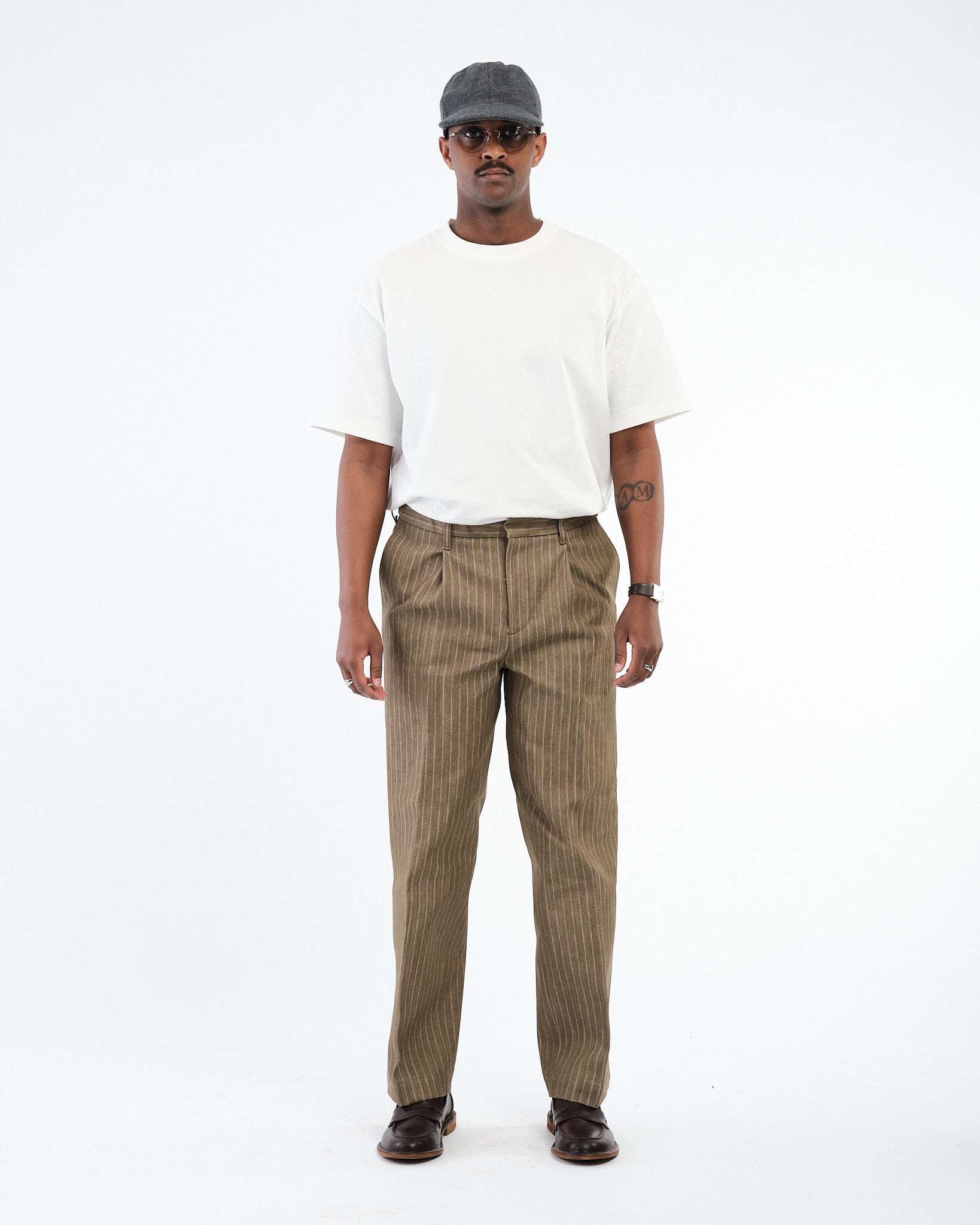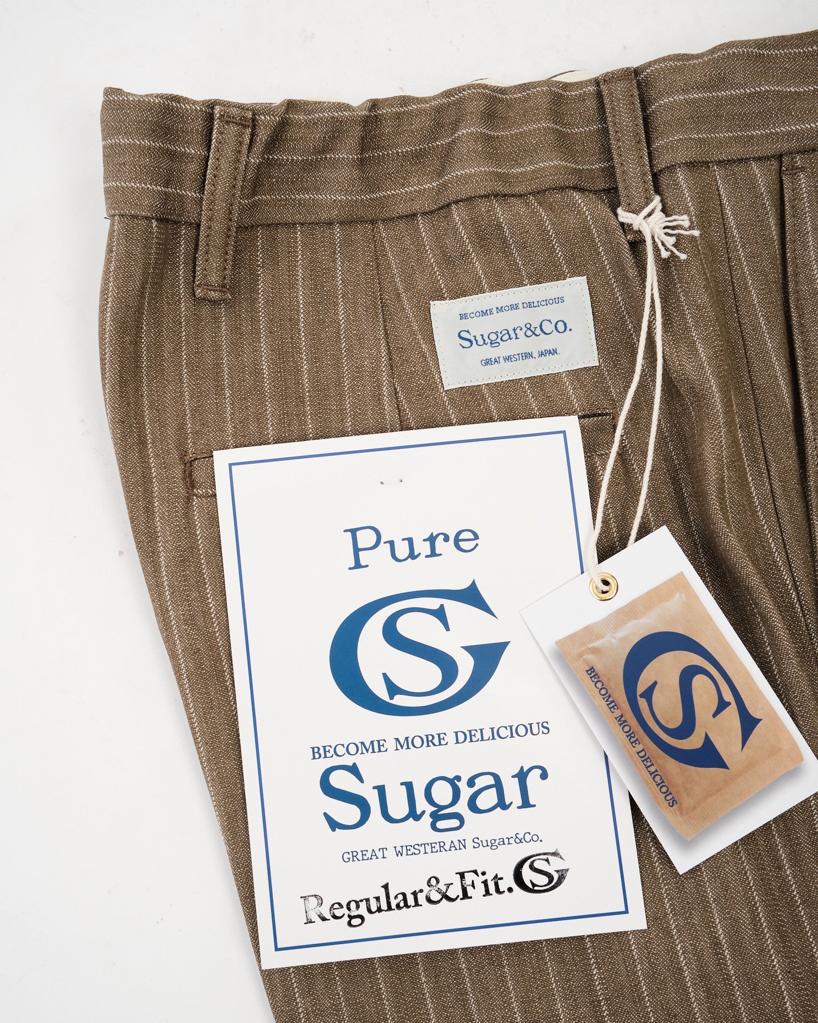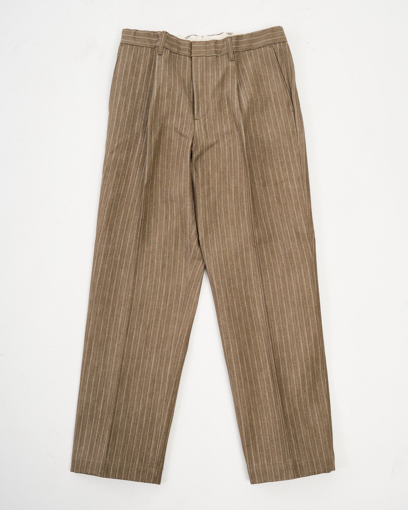 SUGAR & CO. STRIPED DENIM Beige-värisenä on hienostunut otto klassisesta työvaatteesta, yhdistäen karun kestävyyden tyylikkääseen siluettiin. Nämä housut on valmistettu korkealaatuisesta raidallisesta denimkankaasta, tarjoten ainutlaatuisen tekstuuri ja premium-tuntuman. Suunniteltu kaunistumaan kauniisti ajan myötä, kangas kehittää luonnetta samalla säilyttäen sen lujuuden ja rakenteen.