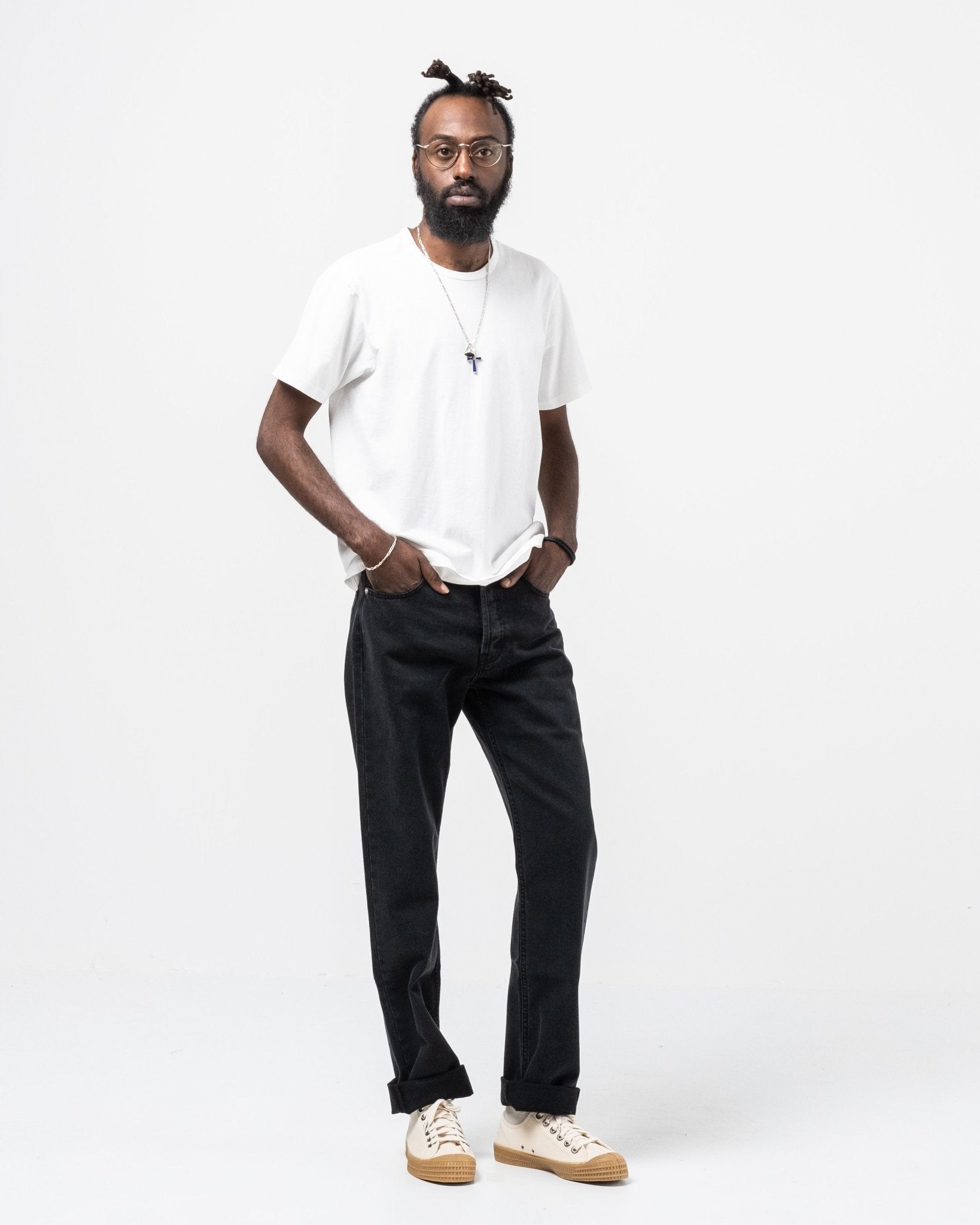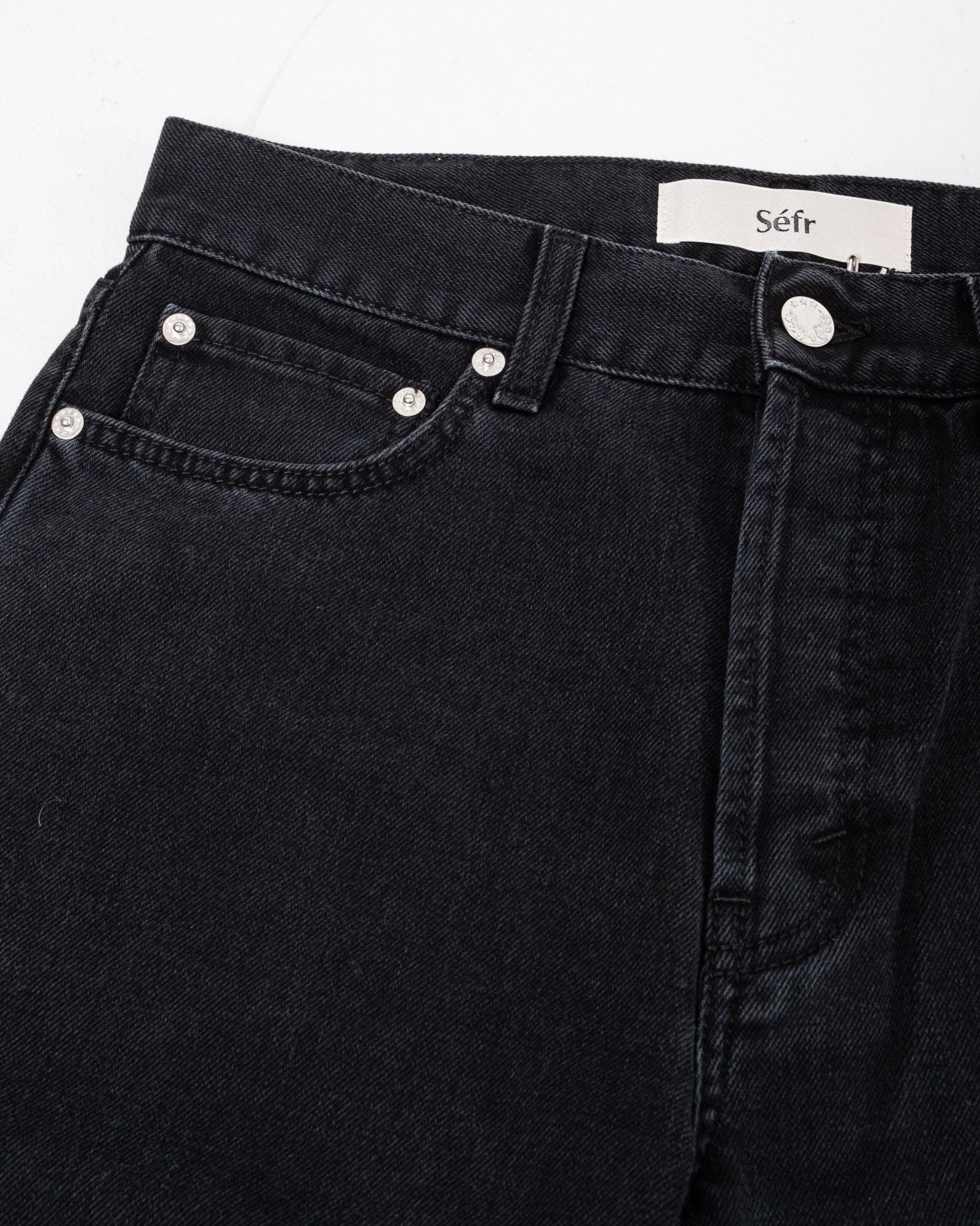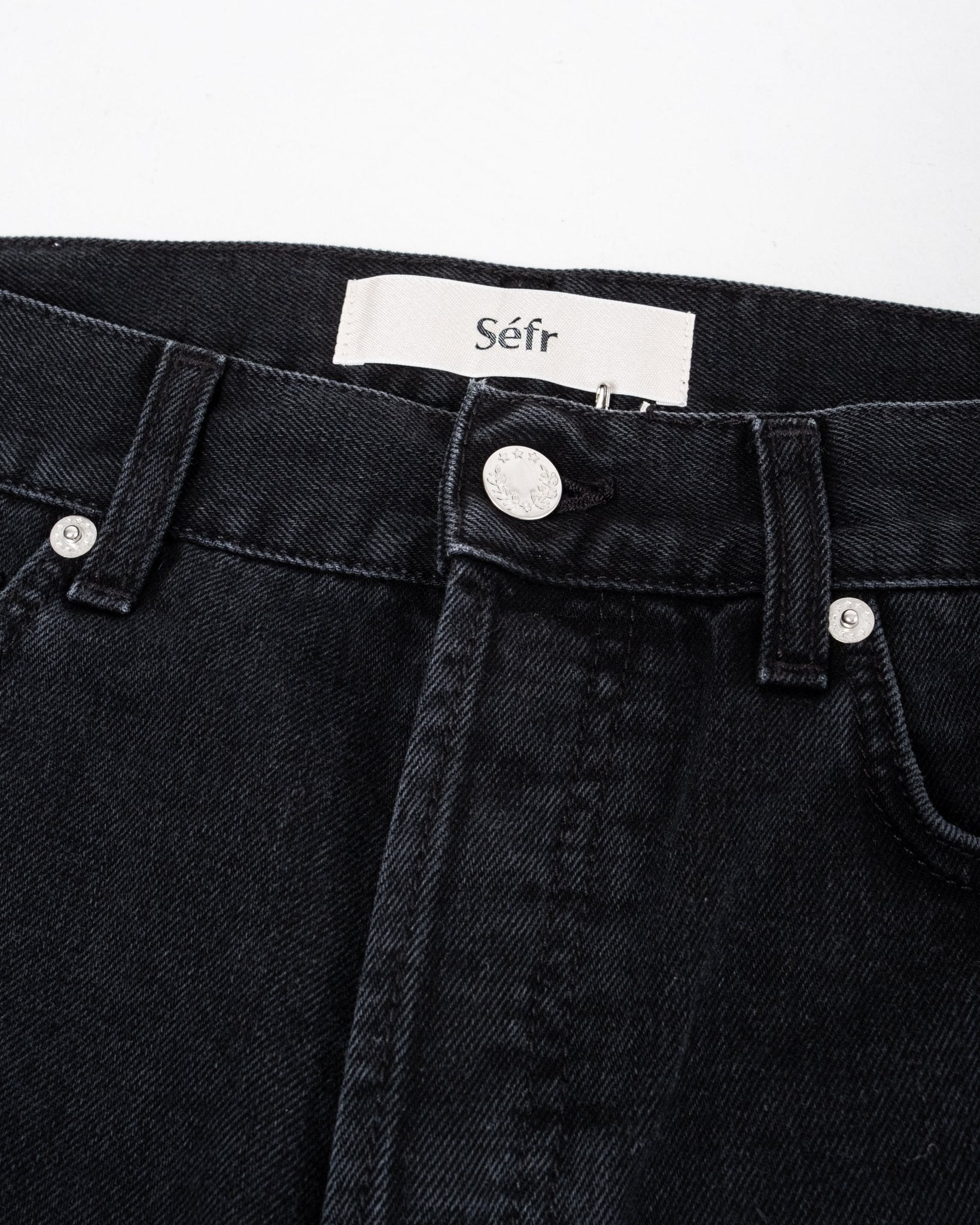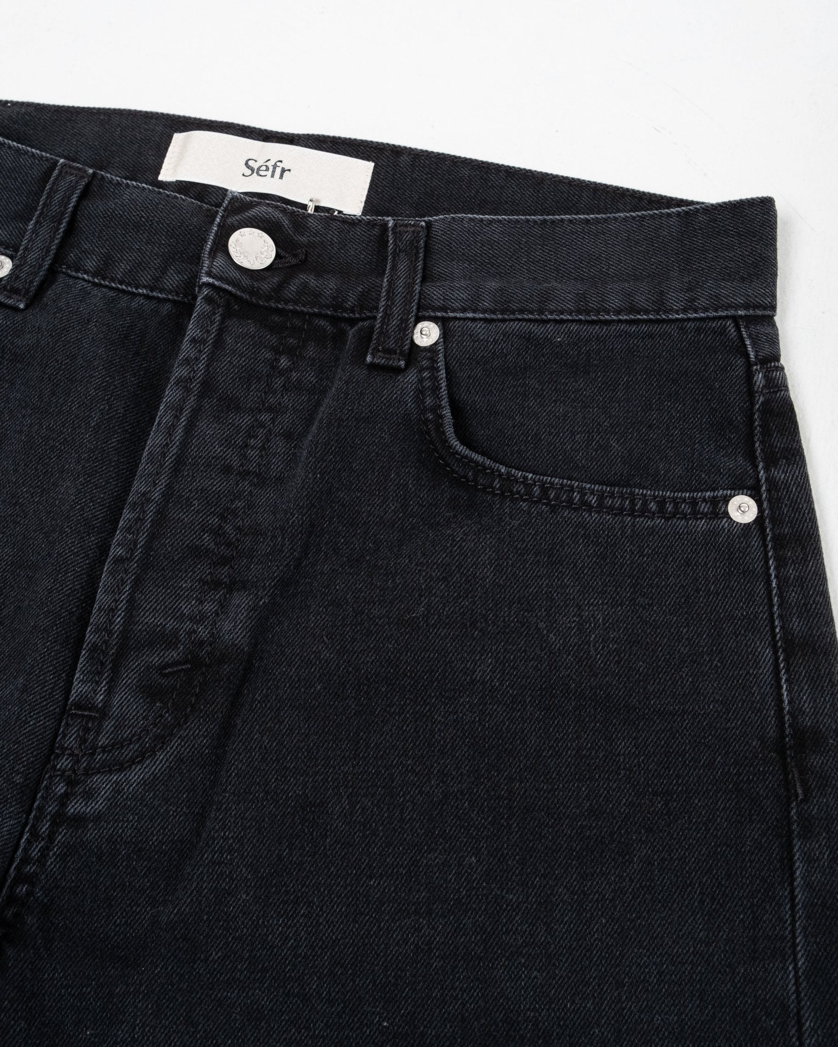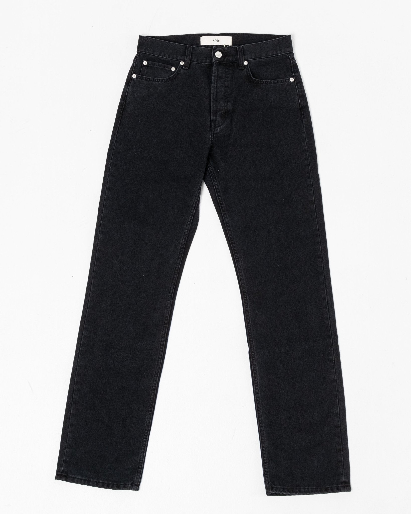 Straight Cut Jeans Rinsed Black merkiltä Séfr. Klassinen viiden taskun farkku, valmistettu 13 oz italialaisesta puuvillasta. Etunapitus, suora leikkaus ja kertaalleen huuhdeltu pehmeän ja mukavan istuvuuden takaamiseksi heti alusta alkaen. Valmistettu Latviassa.