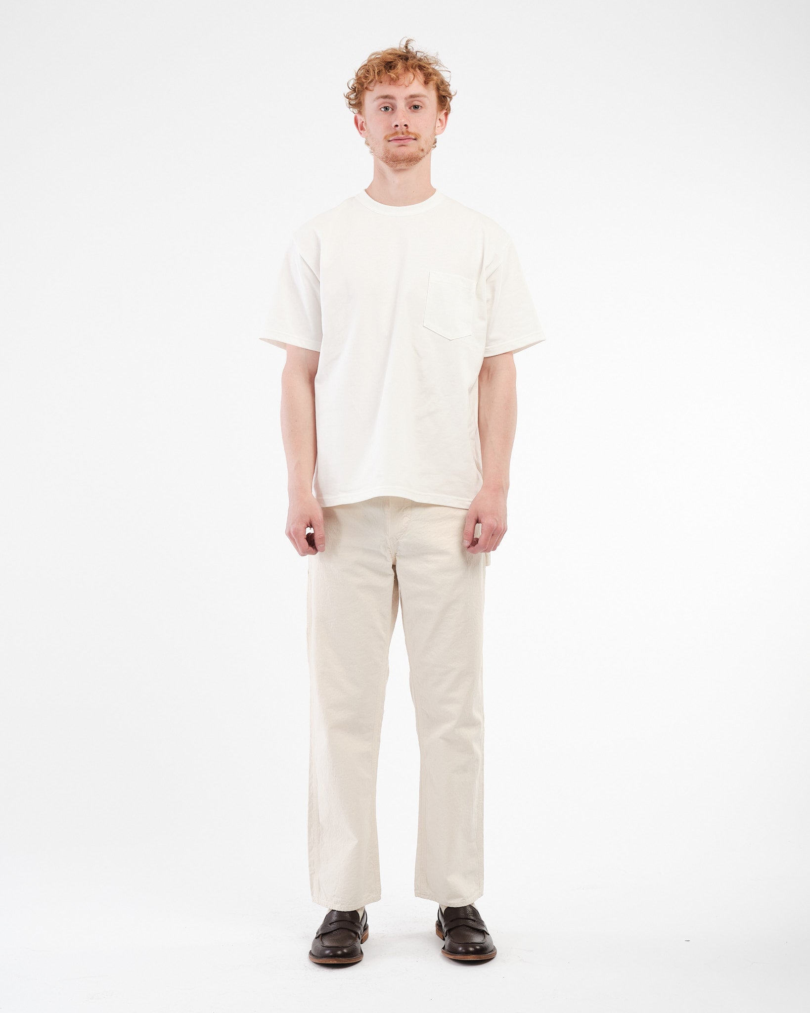 Juhli moitteetonta tyyliä ja mukavuutta orSlow T-PAITA TASKULLA VALKOISENA. Tunnettu taidokkaasti valmistetuista housuistaan, paidoistaan ja collegeistaan, orSlow tuo saman täydellisyyden tason myös t-paitoihinsa. Tämä T-paita on väljä, laatikkomaisesti istuva, mikä ylittää odotukset mukavuudessa ja tyylissä. Sen erottaa tyypillisistä tee-paidoista viehättävä pieni Japanin saarten kirjailu olkapäässä, lisäten ainutlaatuisen kosketuksen, joka erottaa sen tavallisista tee-paidoista. Jersey-kangas on tukevaa, muttei liian raskasta, tarjoten juuri tarpeeksi painoa laadun tuntumiseen ilman, että siitä tulee hankala. Sen väljempi leikkaus parantaa hengittävyyttä, tehden siitä täydellisen mihin tahansa vuodenaikaan. Valmistettu Osakassa, Japanissa, 100% puuvillajerseystä ja omilla merkeillä, tämä taskullinen tee ei ole vain vaatekappale—se on pakko saada jokaiselle orSlow-fanille tai kenelle tahansa, joka arvostaa harkittua, korkealaatuista suunnittelua.