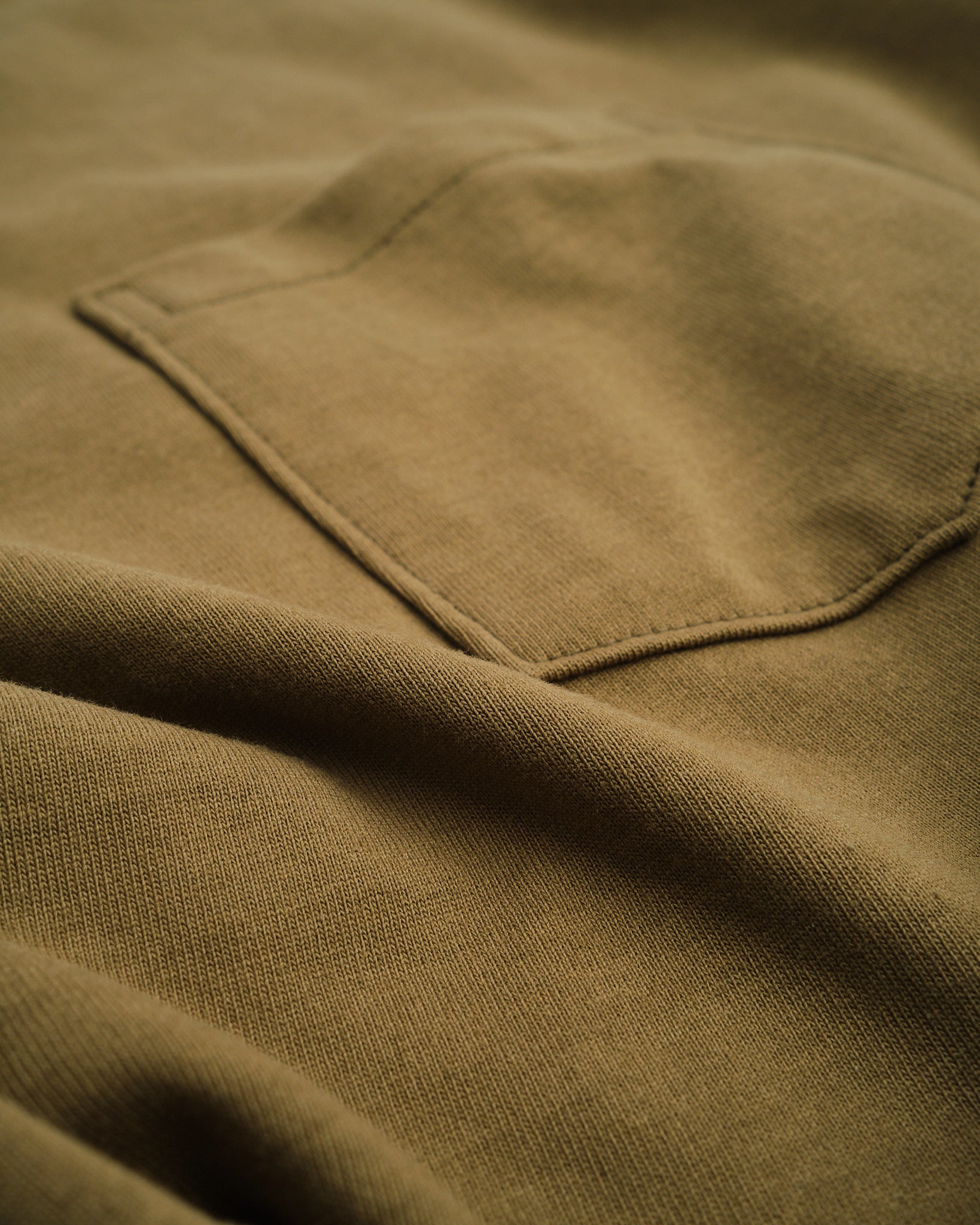 Klassisen miehistön kauluksen ja kätevän rintataskun ansiosta tämä t-paita yhdistää toiminnallisuuden minimalistiseen tyyliin. Rikas armeijan vihreä sävy lisää ripauksen karua eleganssia, sopien sekä rennoille että puolivirallisille tilaisuuksille.