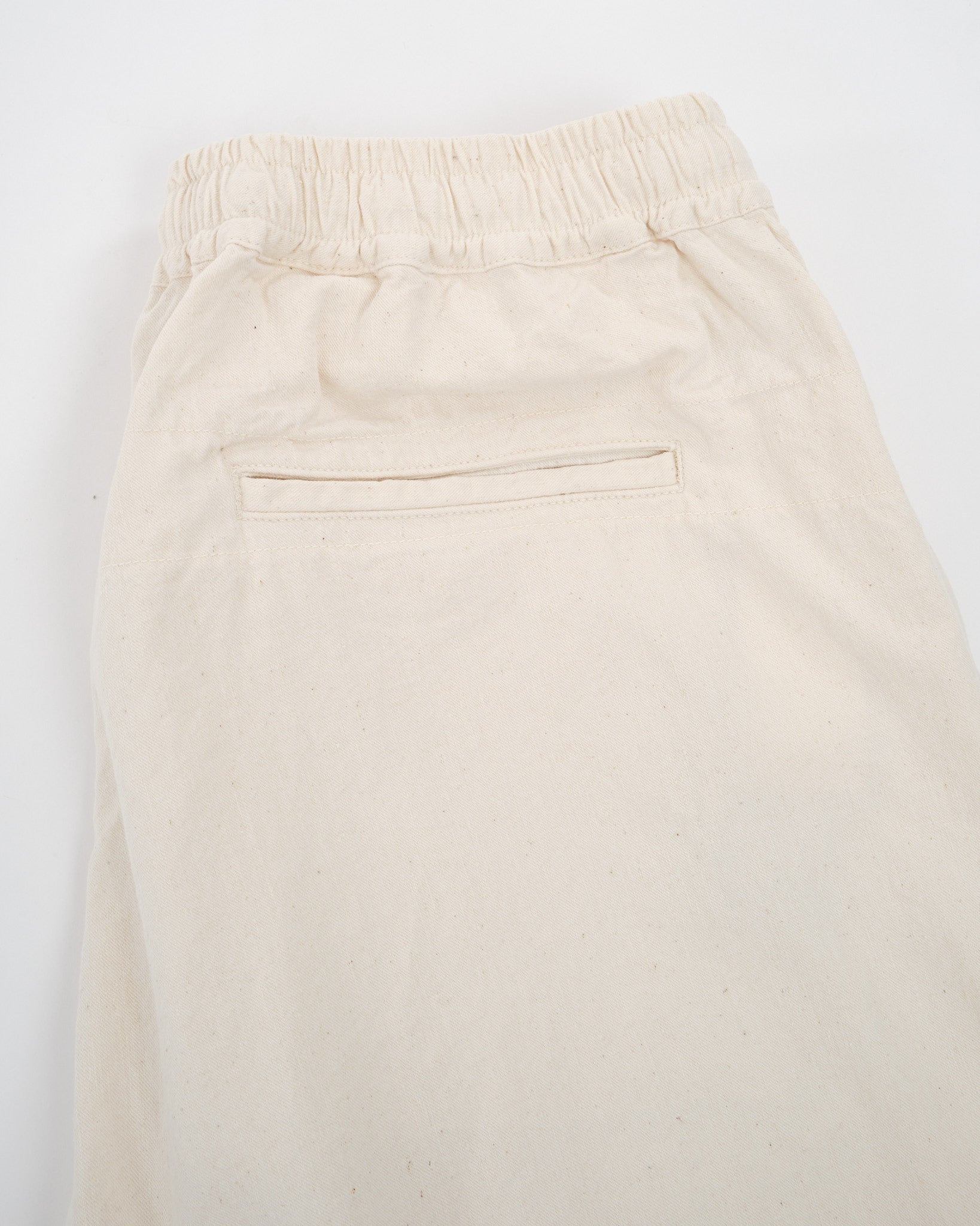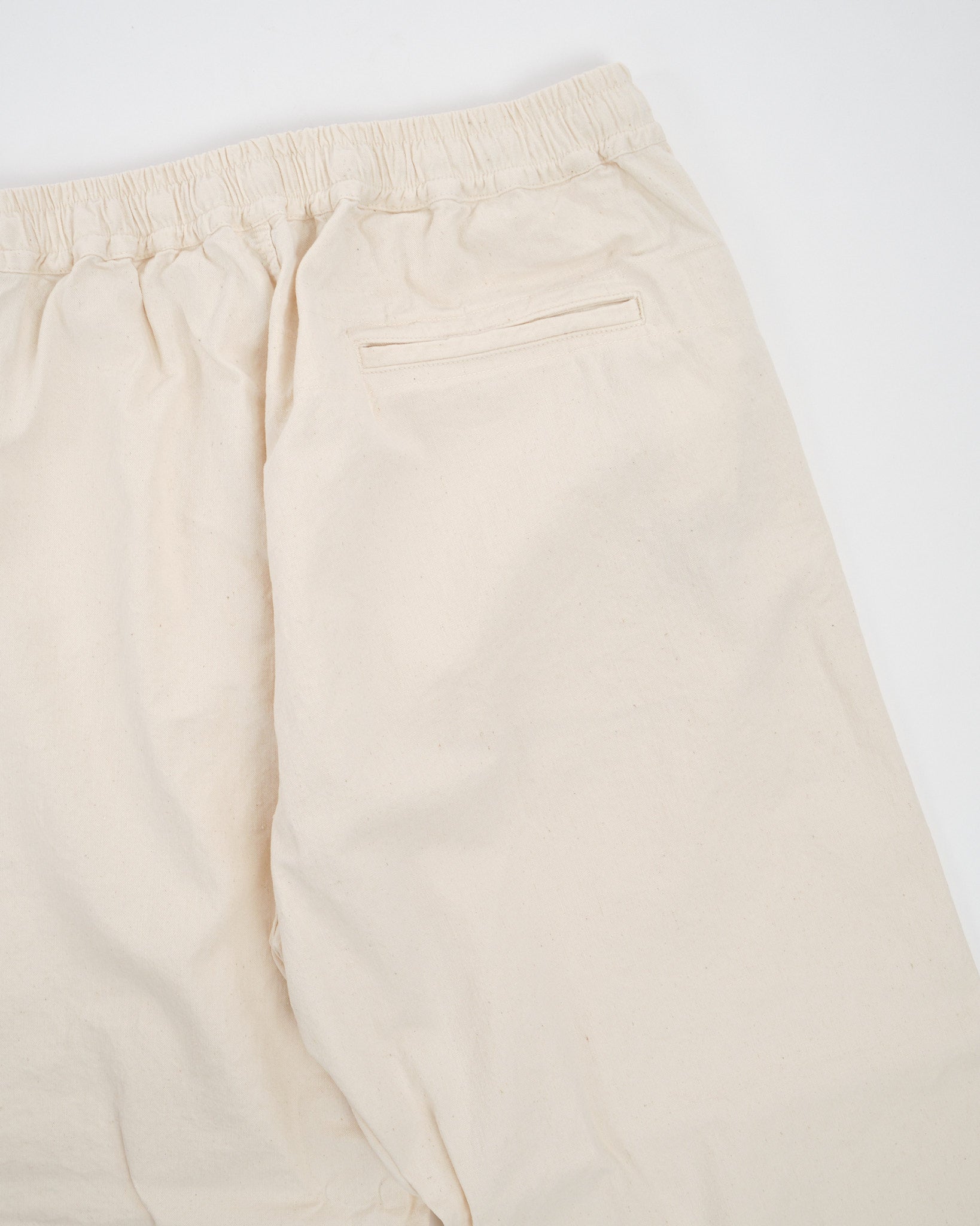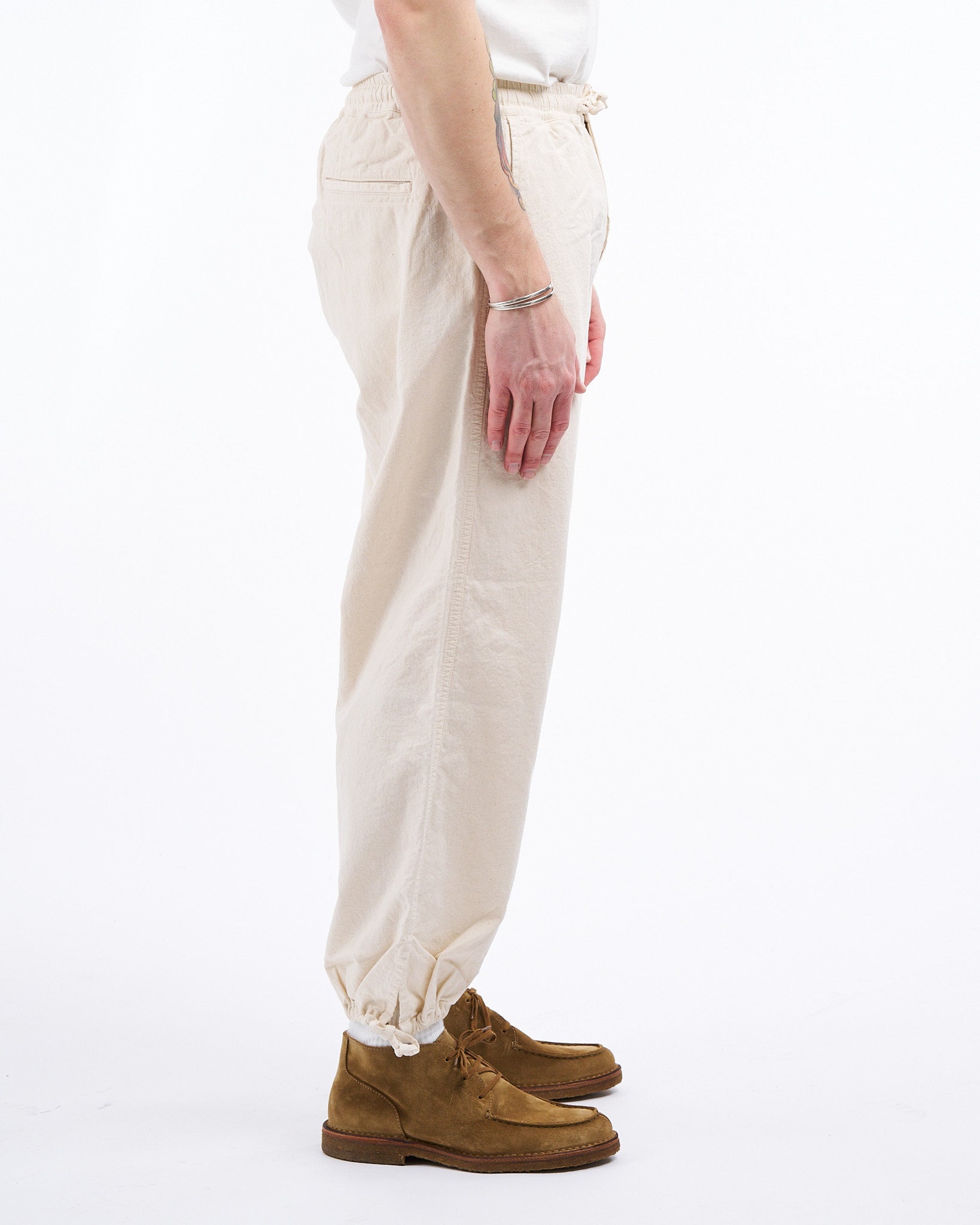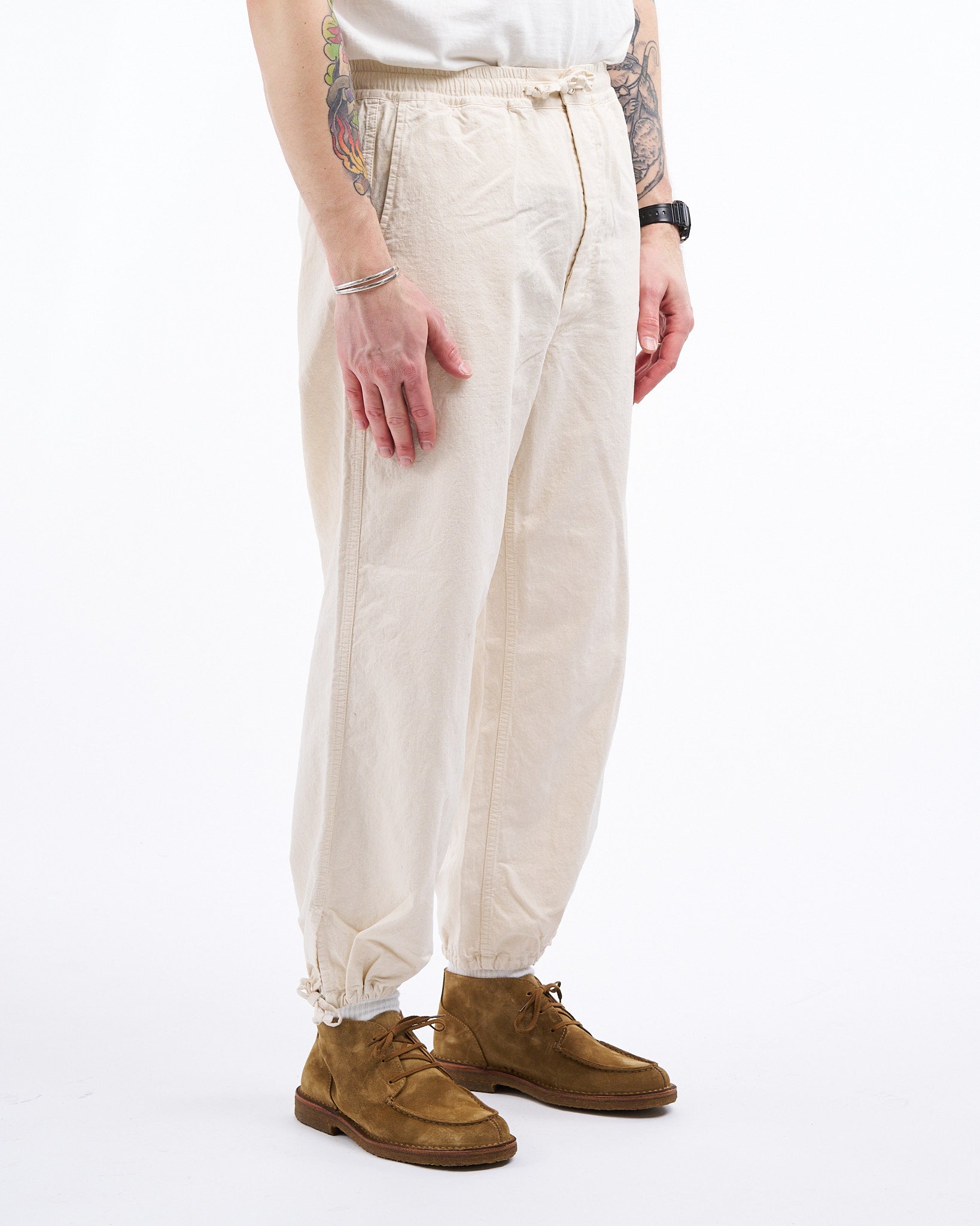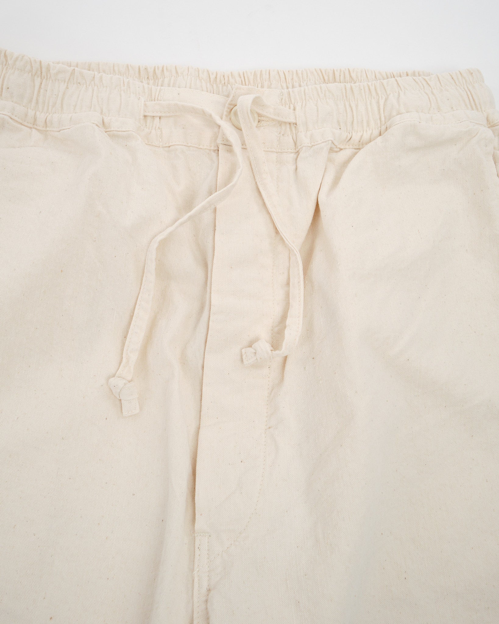 ORSLOW TAKUMI -HOUSUT värissä Ecru yhdistävät saumattomasti japanilaisen suunnittelun ikoniseen amerikkalaiseen työvaatteeseen, esitellen japanilaisen käsityötaidon asiantuntemusta. Ne on huolellisesti valmistettu Japanissa käyttäen kevyttä pesttyä denimiä, ja ne ilmentävät taiteellisuuden olemusta. Nukkainen tekstuuria lisää kosketuselementin, parantaen kokonaiskokemusta. Ottaen inspiraatiota asusteista, nämä housut sisältävät moderneja elementtejä, kuten viistot taskut vyötäröllä, joustavan vyötärönauhan, jossa on pidennetty nyöri ja hartsinappilistan. Todella ajaton pari, jossa on lyhennetty istuvuus ja säädettävät lahkeensuut, tehden siitä houkuttelevan ja monipuolisen vaatekappaleen.