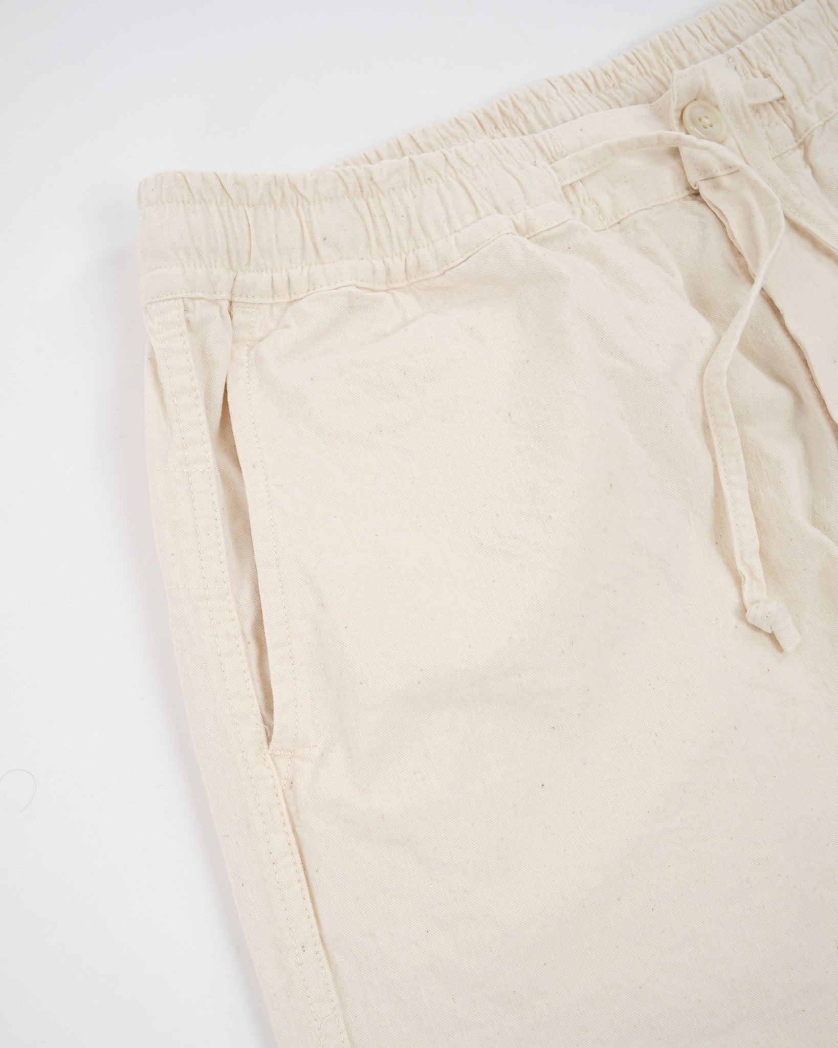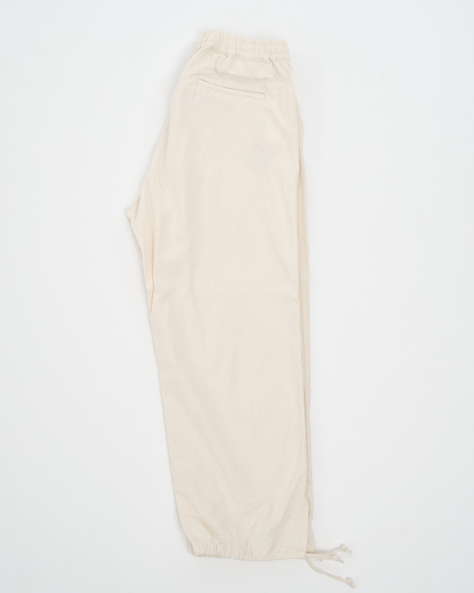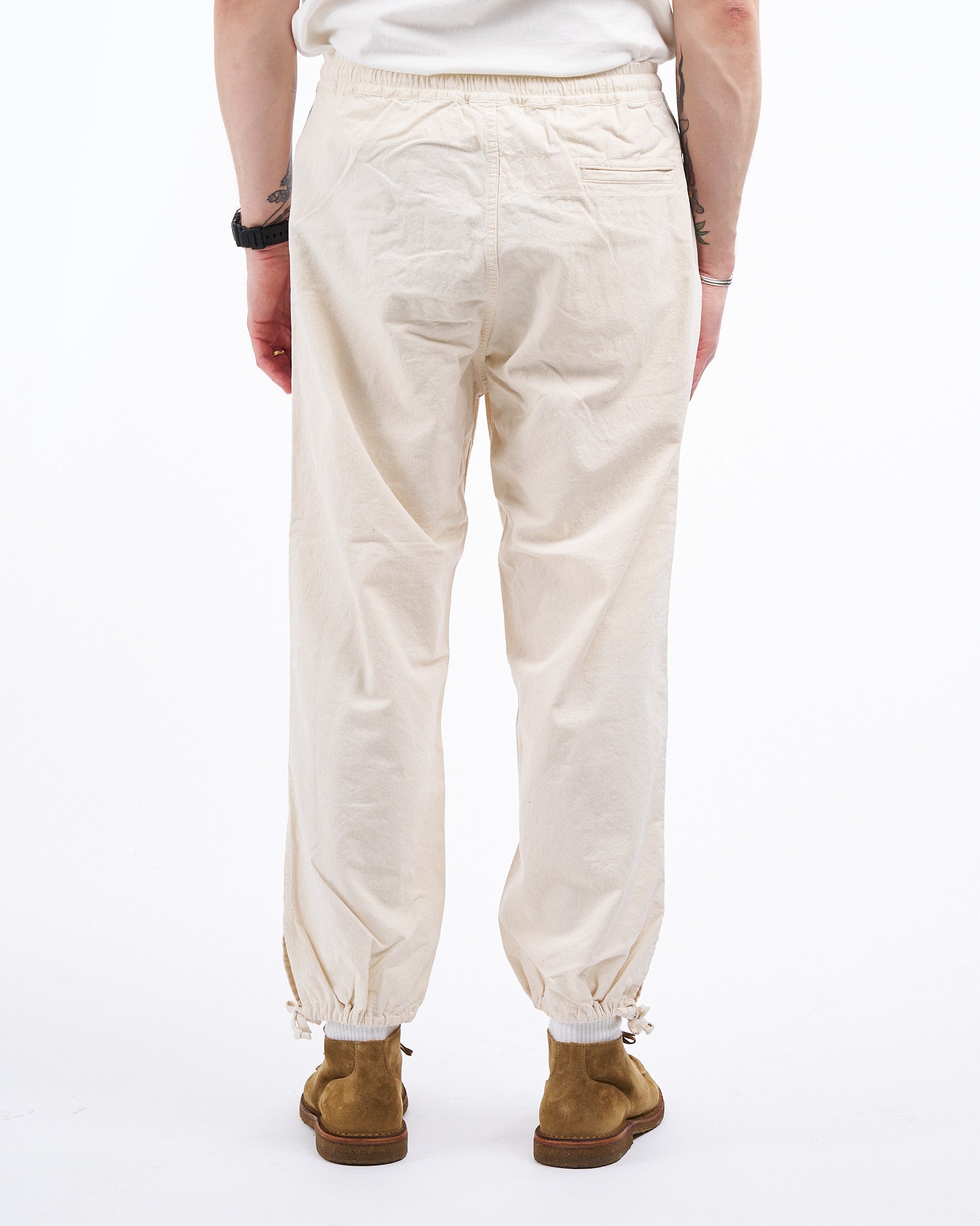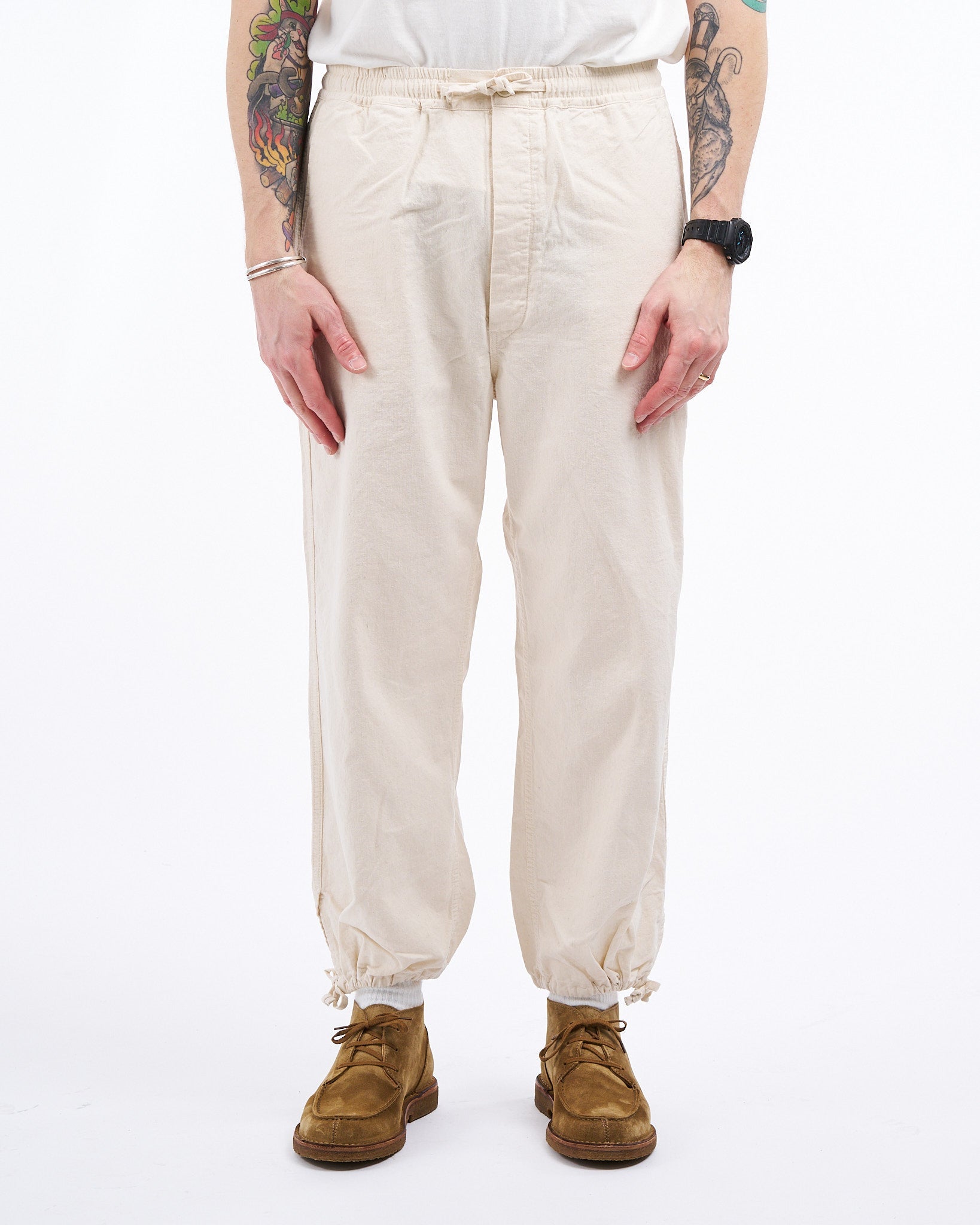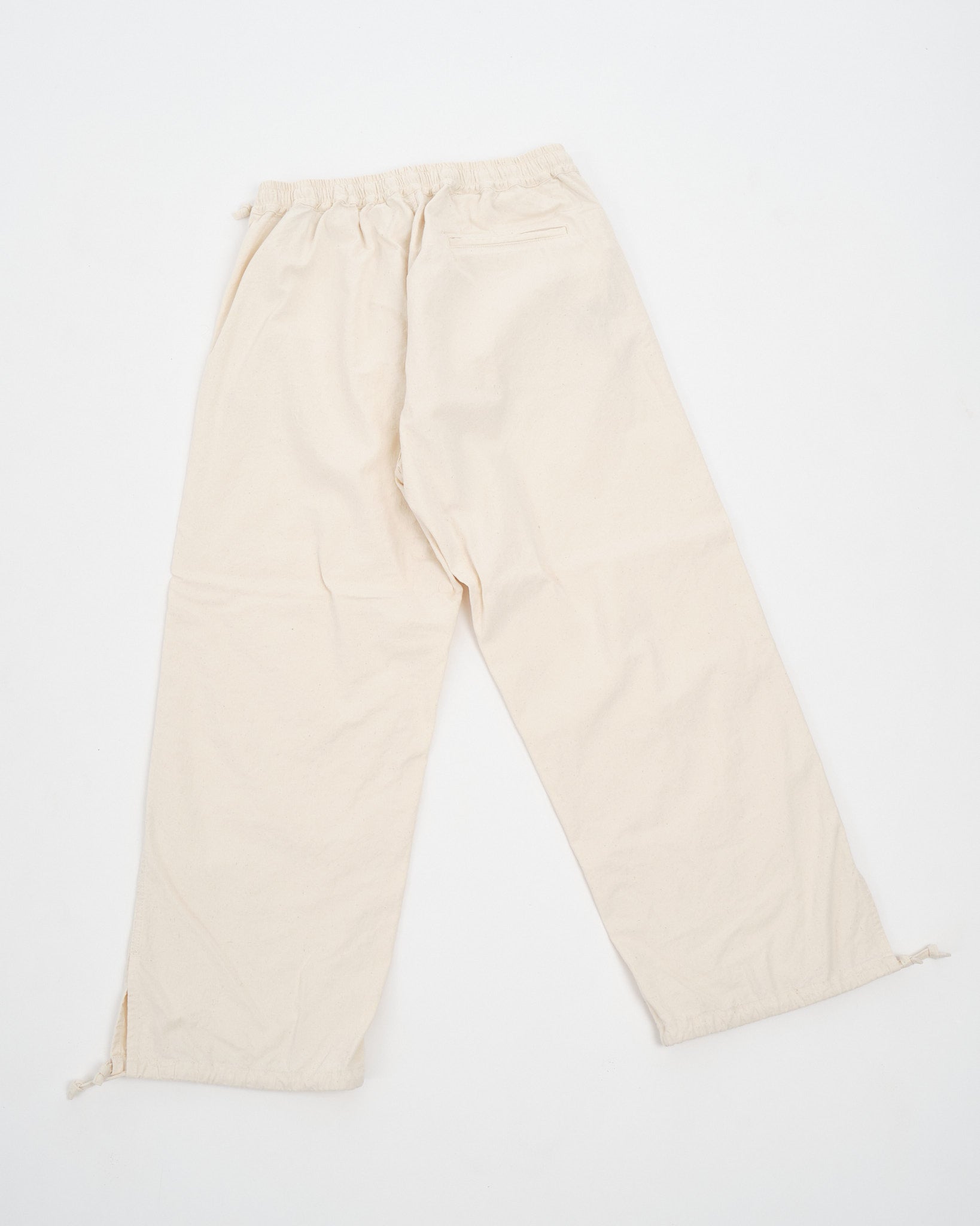 ORSLOW TAKUMI -HOUSUT värissä Ecru yhdistävät saumattomasti japanilaisen suunnittelun ikoniseen amerikkalaiseen työvaatteeseen, esitellen japanilaisen käsityötaidon asiantuntemusta. Ne on huolellisesti valmistettu Japanissa käyttäen kevyttä pesttyä denimiä, ja ne ilmentävät taiteellisuuden olemusta. Nukkainen tekstuuria lisää kosketuselementin, parantaen kokonaiskokemusta. Ottaen inspiraatiota asusteista, nämä housut sisältävät moderneja elementtejä, kuten viistot taskut vyötäröllä, joustavan vyötärönauhan, jossa on pidennetty nyöri ja hartsinappilistan. Todella ajaton pari, jossa on lyhennetty istuvuus ja säädettävät lahkeensuut, tehden siitä houkuttelevan ja monipuolisen vaatekappaleen.