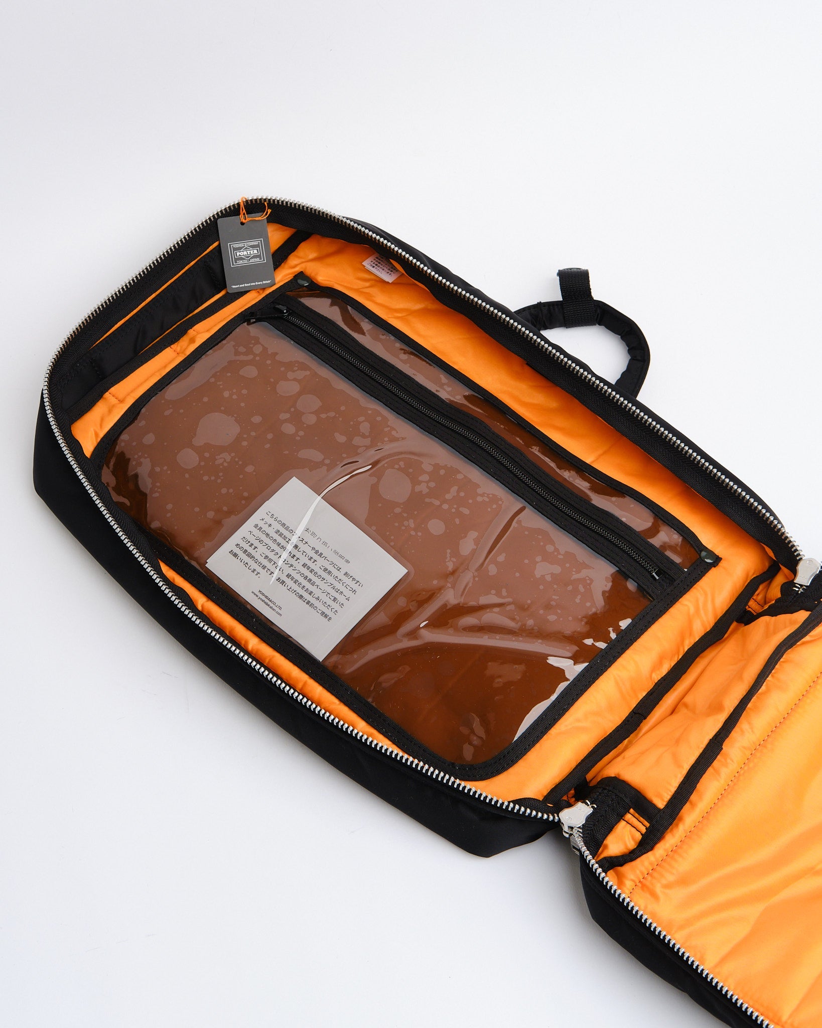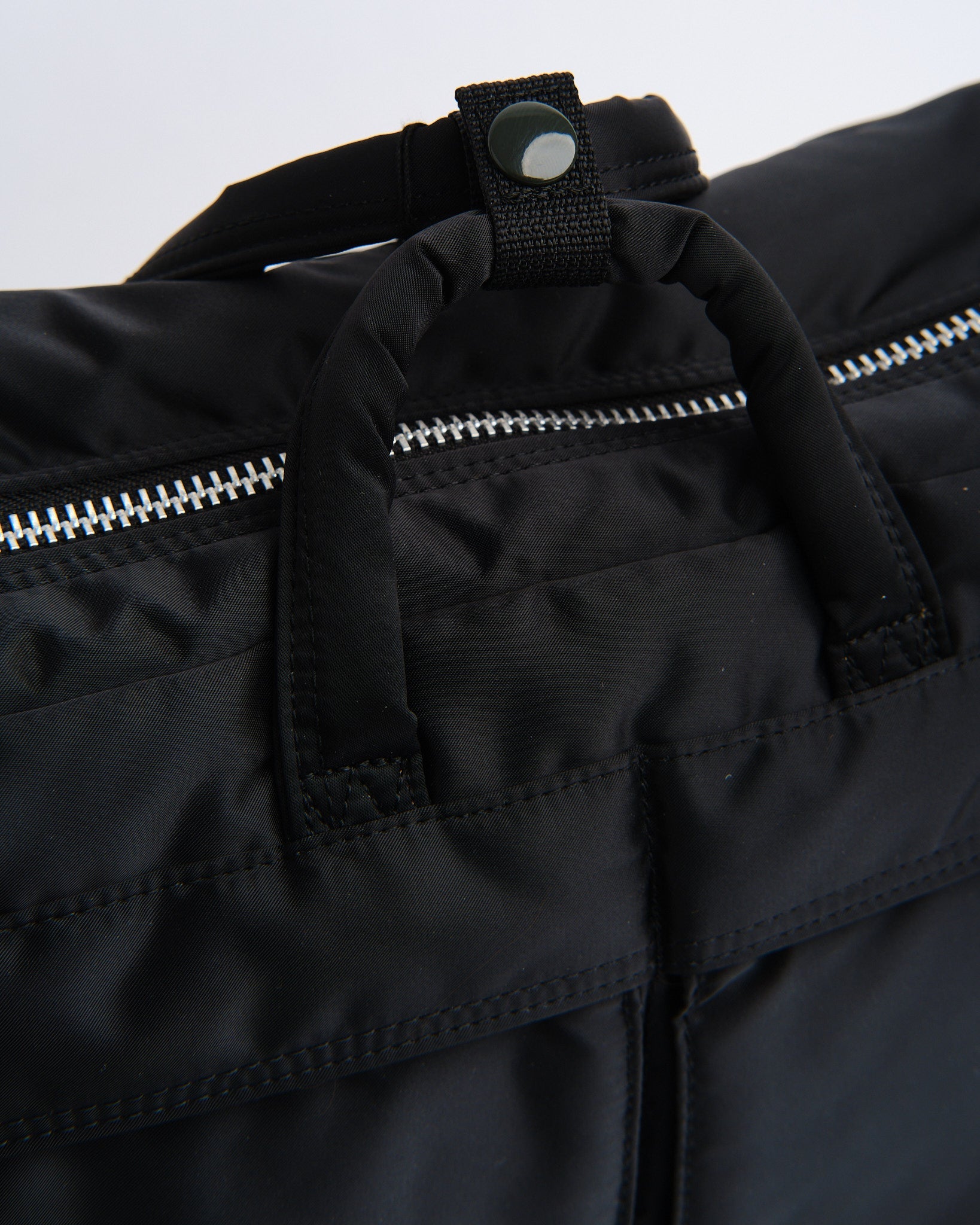 Esittelyssä PORTER YOSHIDA TANKER 3WAY BRIEFCASE mustana, monipuolinen mestariteos ikonisesta TANKER-sarjasta, joka sai alkunsa vuonna 1983. Huolellisesti valmistettu kolmikerroksisesta kankaasta, joka on saanut inspiraationsa Yhdysvaltain ilmavoimien MA 1 -lentotakista, tämä salkku yhdistää nailonkudoksen, polyesteripuuvillan ja nailontafetan luoden kestävän, mutta silti kestävän lisävarusteen. Pelastusoranssilla vuorauksellaan se esittelee Yoshida&Co:n käsityöläisten poikkeuksellisen huomion yksityiskohtiin. Tämä A4-kokoinen salkku tarjoaa kolme kantovaihtoehtoa; olalla, selässä ja kädessä; lisäksi se sisältää sisäisen läpinäkyvän taskun pienille esineille. Pääosastossa on U-muotoinen vetoketju, joka helpottaa käyttöä erityisesti selässä kantaessa. Ylpeänä valmistettu Japanissa, se menee toiminnallisuuden yli ja edustaa tyylin ja mestarillisen käsityötaiton evoluutiota.