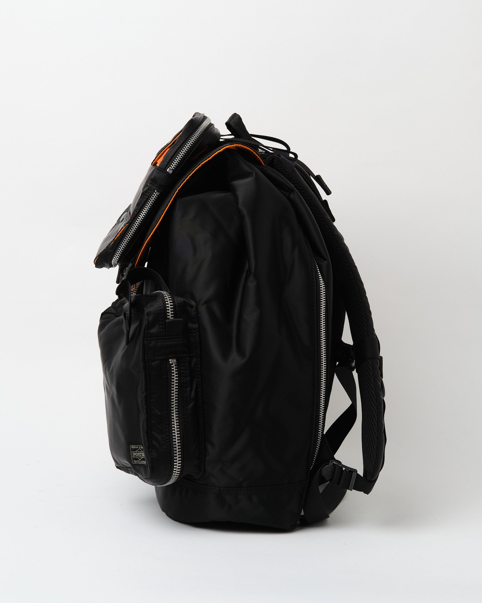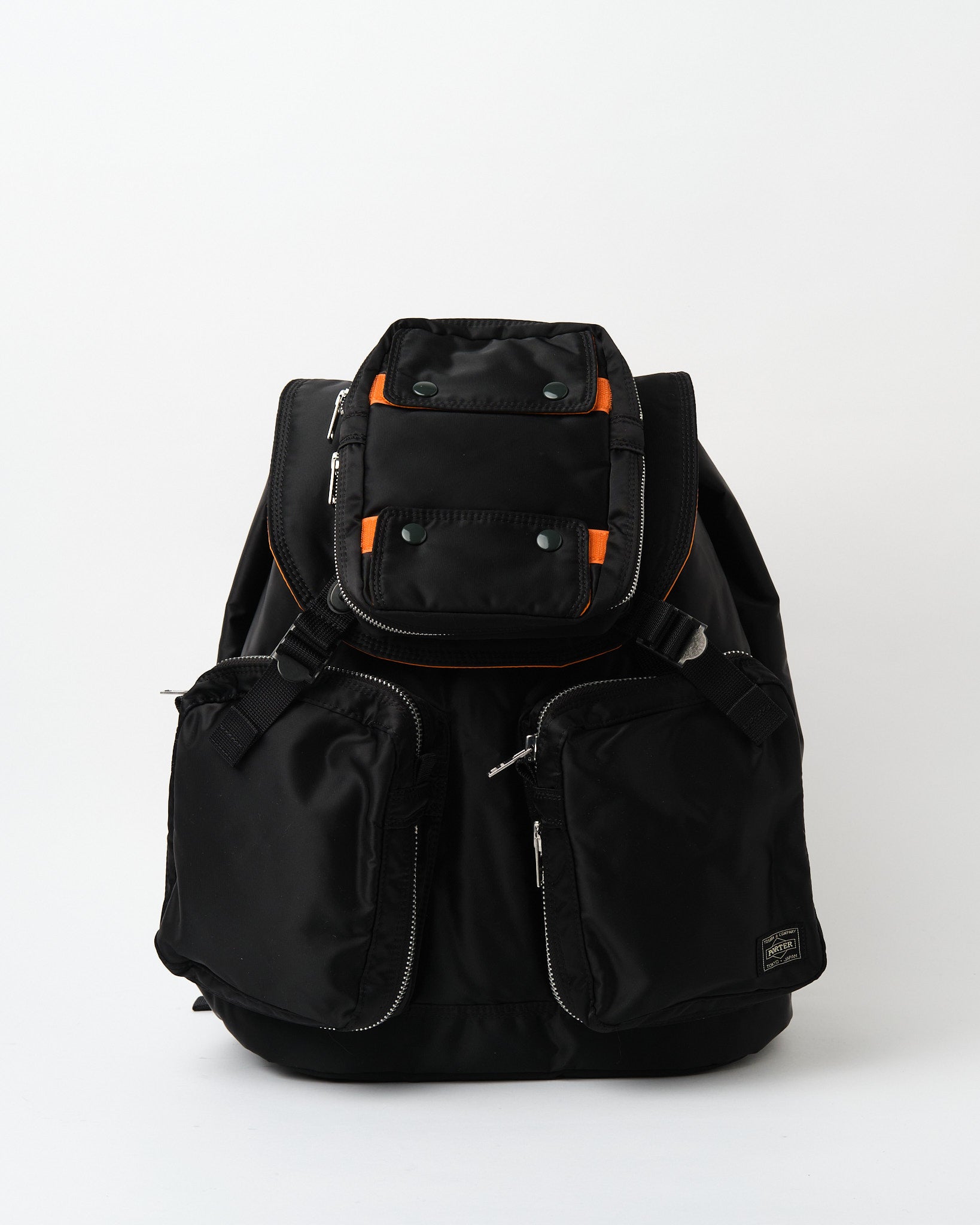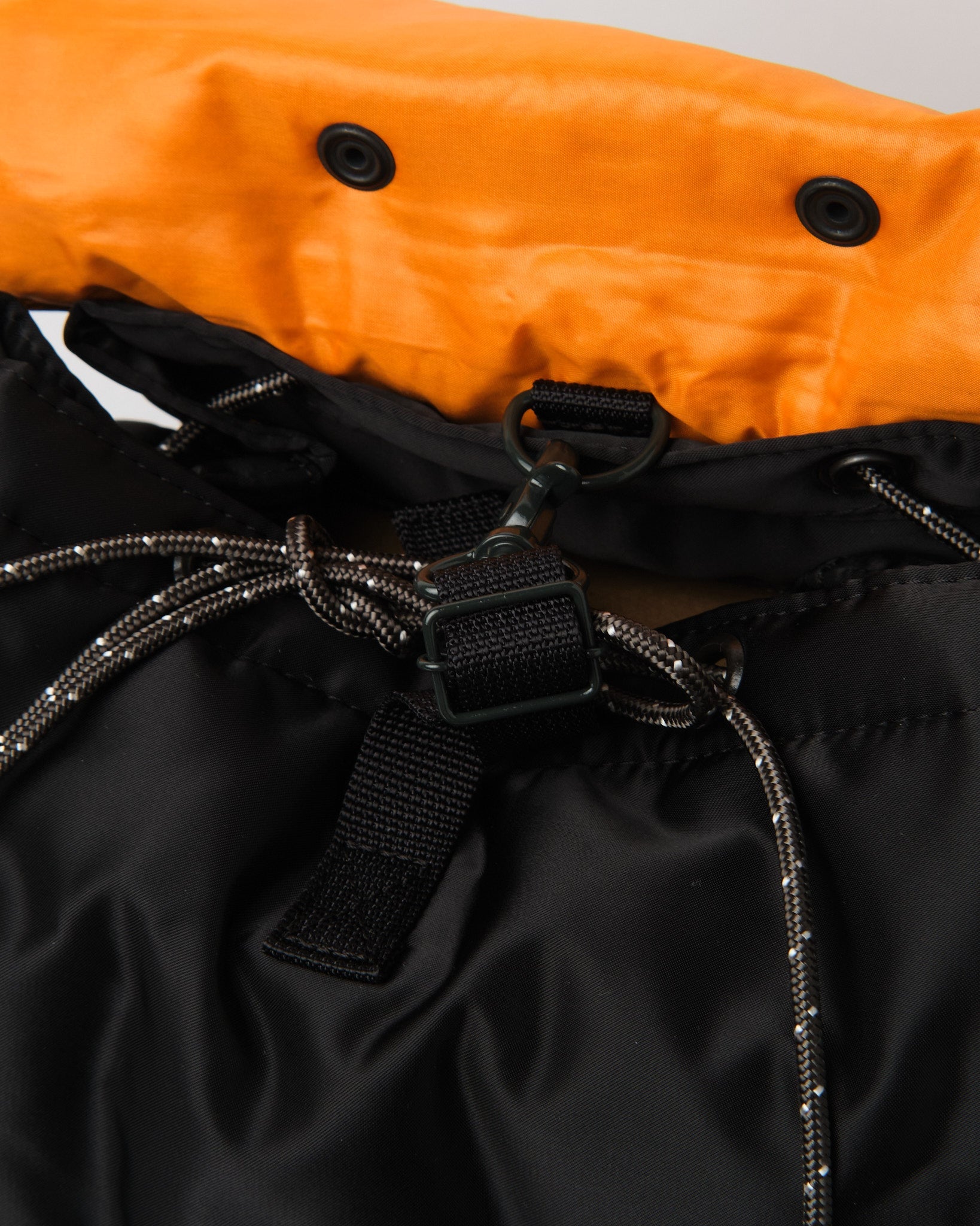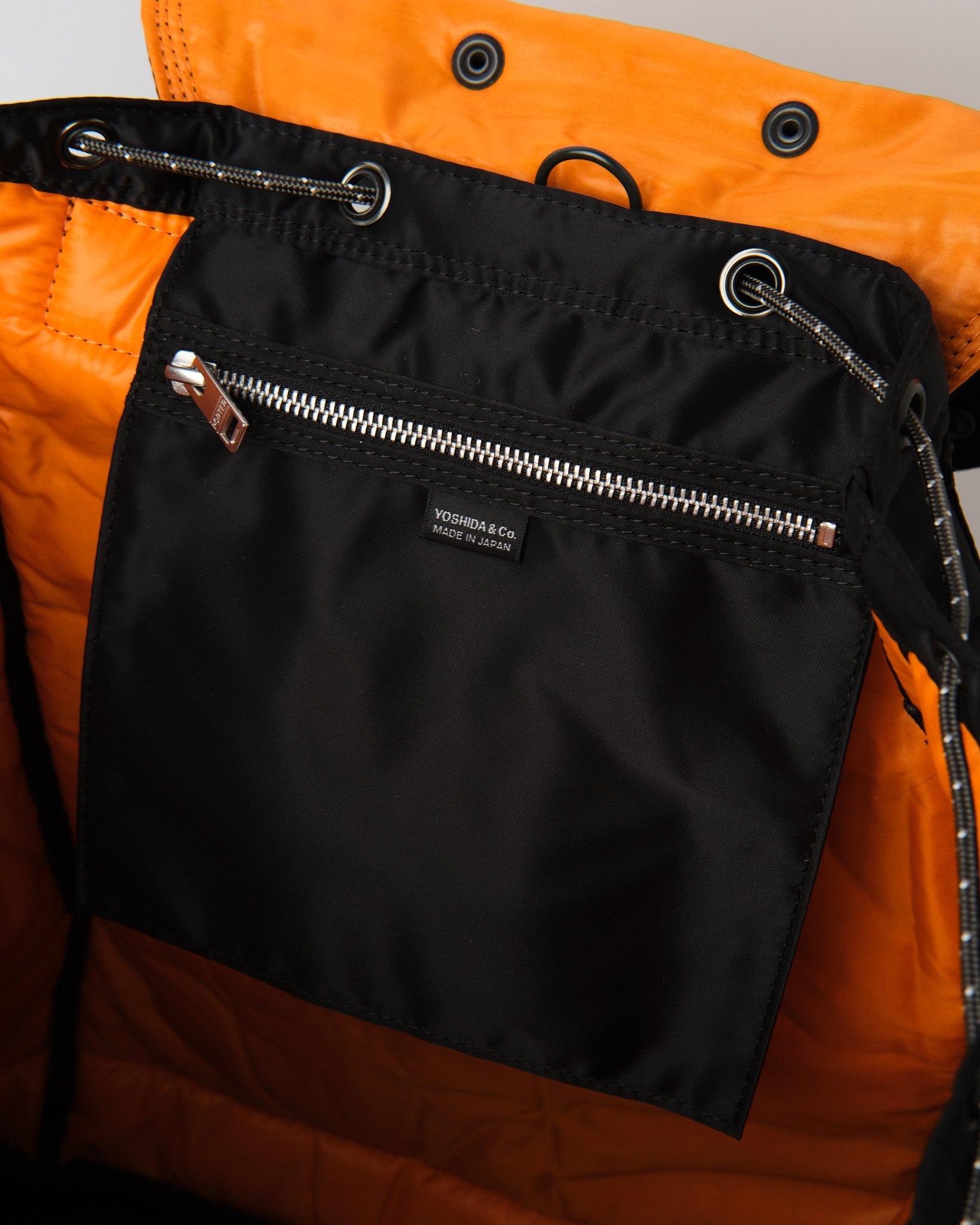 Porter By Yoshida Tanker Ruck Sack mustana on välttämätön asuste jokaiselle, joka arvostaa tyyliä, toiminnallisuutta ja laatua. Japanissa valmistettu osana ikonista "TANKER"-sarjaa, tämä rinkka on saanut inspiraationsa Yhdysvaltain ilmavoimien lentotakista "MA-1".