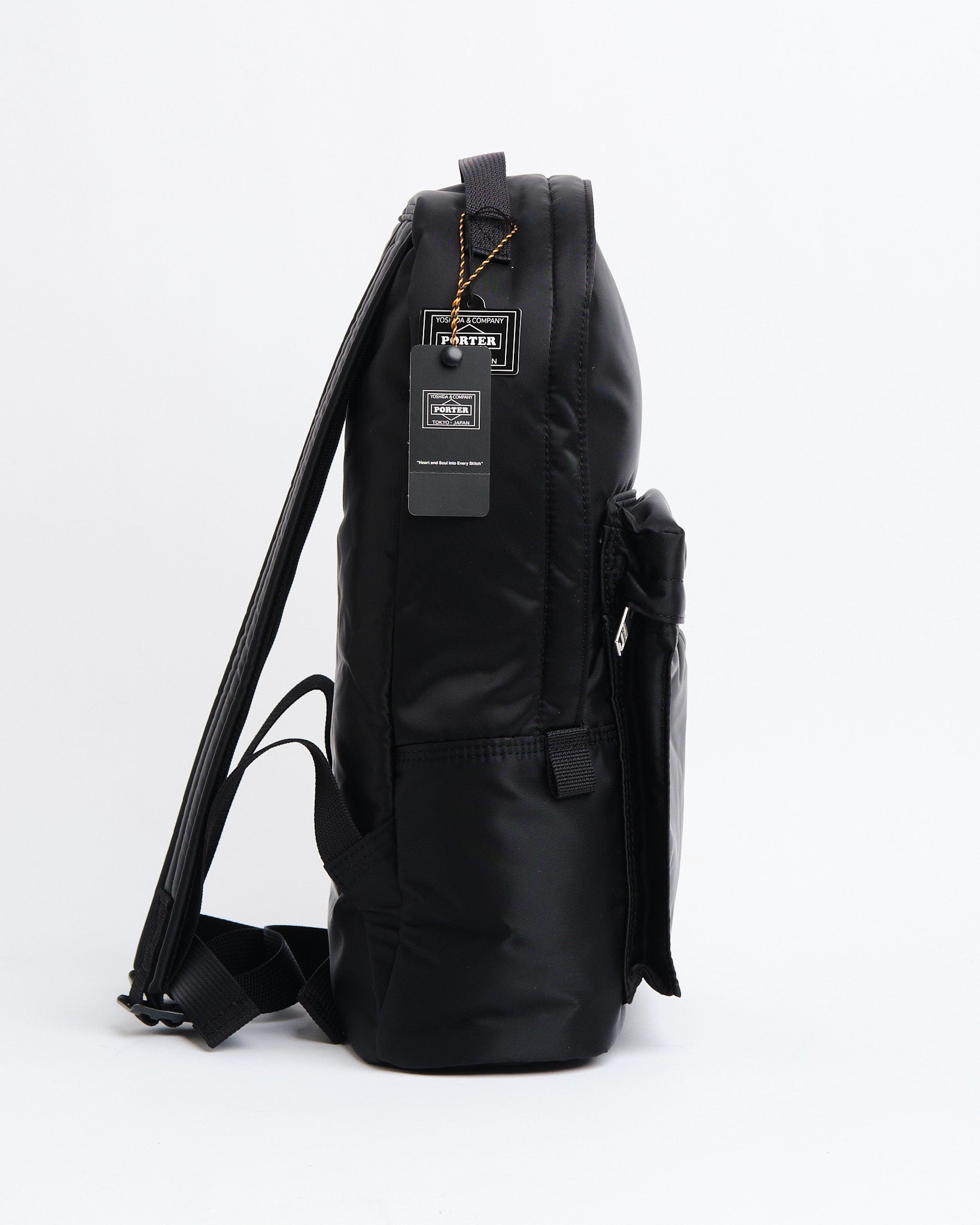 Koe tyylin ja käytännöllisyyden yhdistelmä PORTER YOSHIDA TANKER -REPPUSSA klassisessa mustassa. Saaden inspiraationsa Yhdysvaltain ilmavoimien MA 1 -lentotakista, tämä reppu esittelee ainutlaatuisen kolmikerroksisen kankaan yhdistelmän, joka koostuu nailonkudoksesta, polyesteripuuvillasta ja nailontafetasta. Käsintehty Japanissa Yoshida Kabanin artesaanien toimesta, se tarjoaa kevyen ja kestävän suunnittelun. Tankerin kompakti koko on varustettu taskuilla, mikä tekee siitä ihanteellisen jokapäiväiseen käyttöön tai kätevänä matkakumppanina. Sen huomiota herättävän pelastusoranssin sisustan ansiosta se lisää hienostuneisuutta sen viehätykseen.